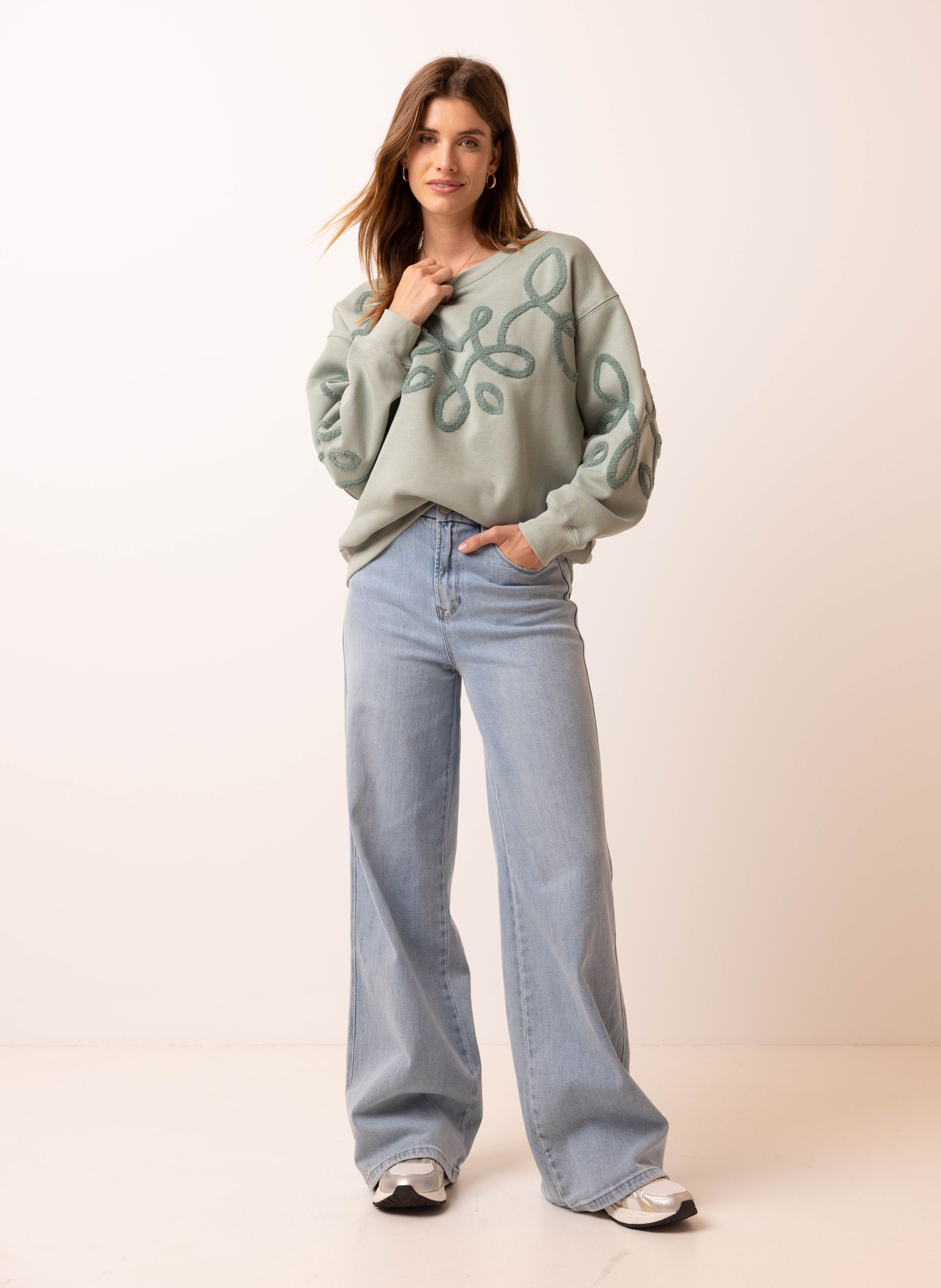 Deze sweater met ronde hals en lange mouwen is een comfortabele toevoeging aan je kledingkast.