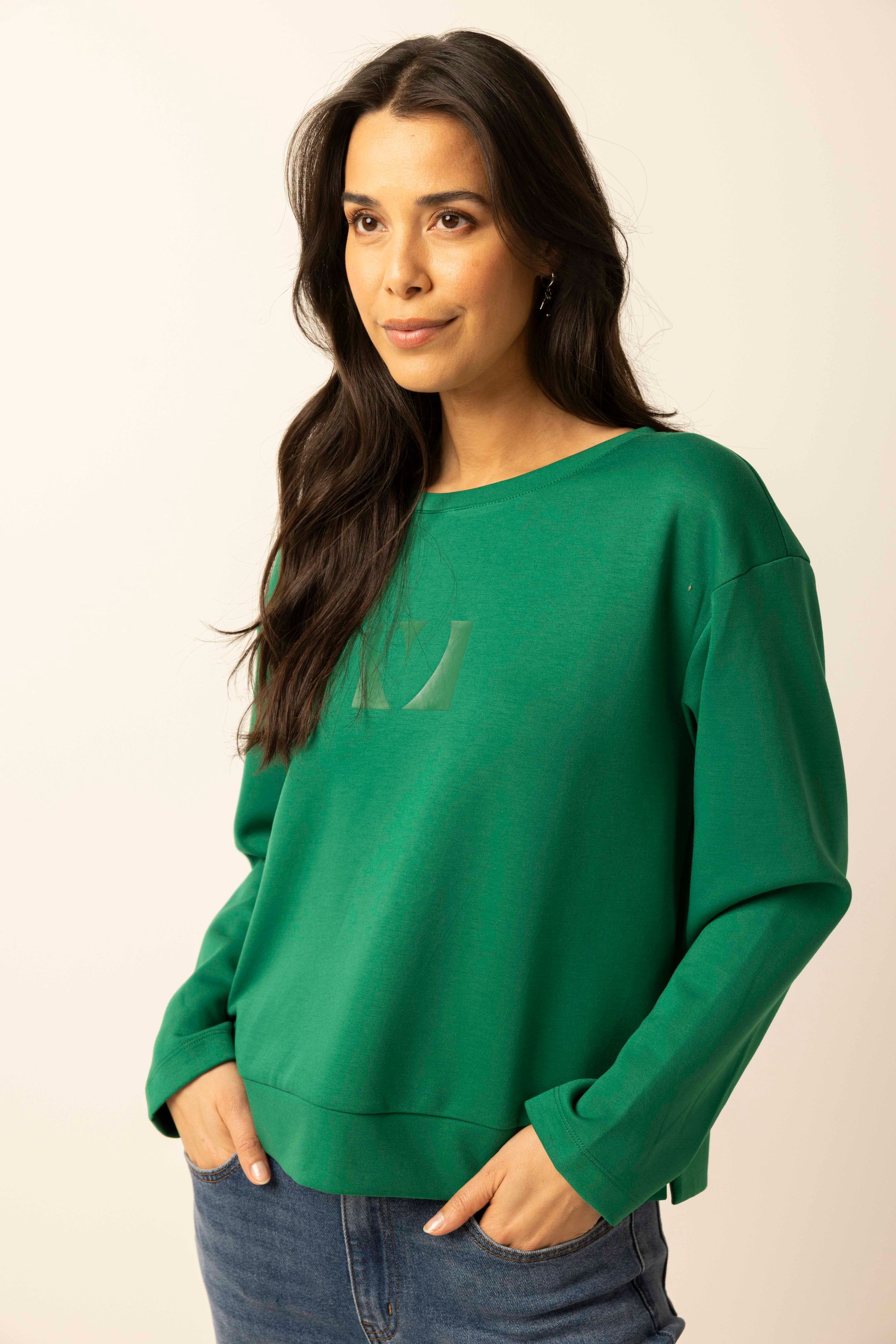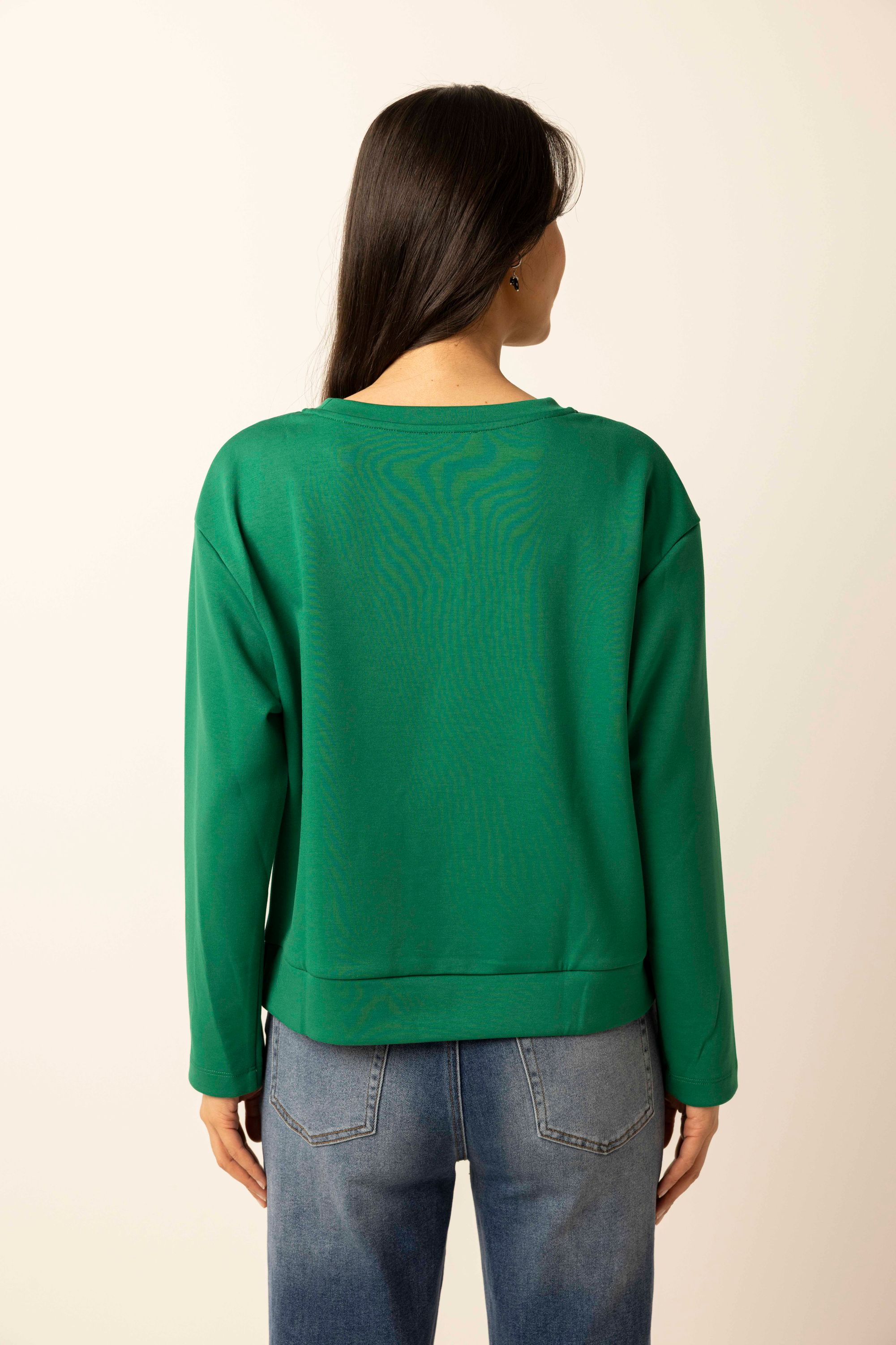 Deze sweater met ronde hals en lange mouwen is afgewerkt met een kleine split aan beide zijden.