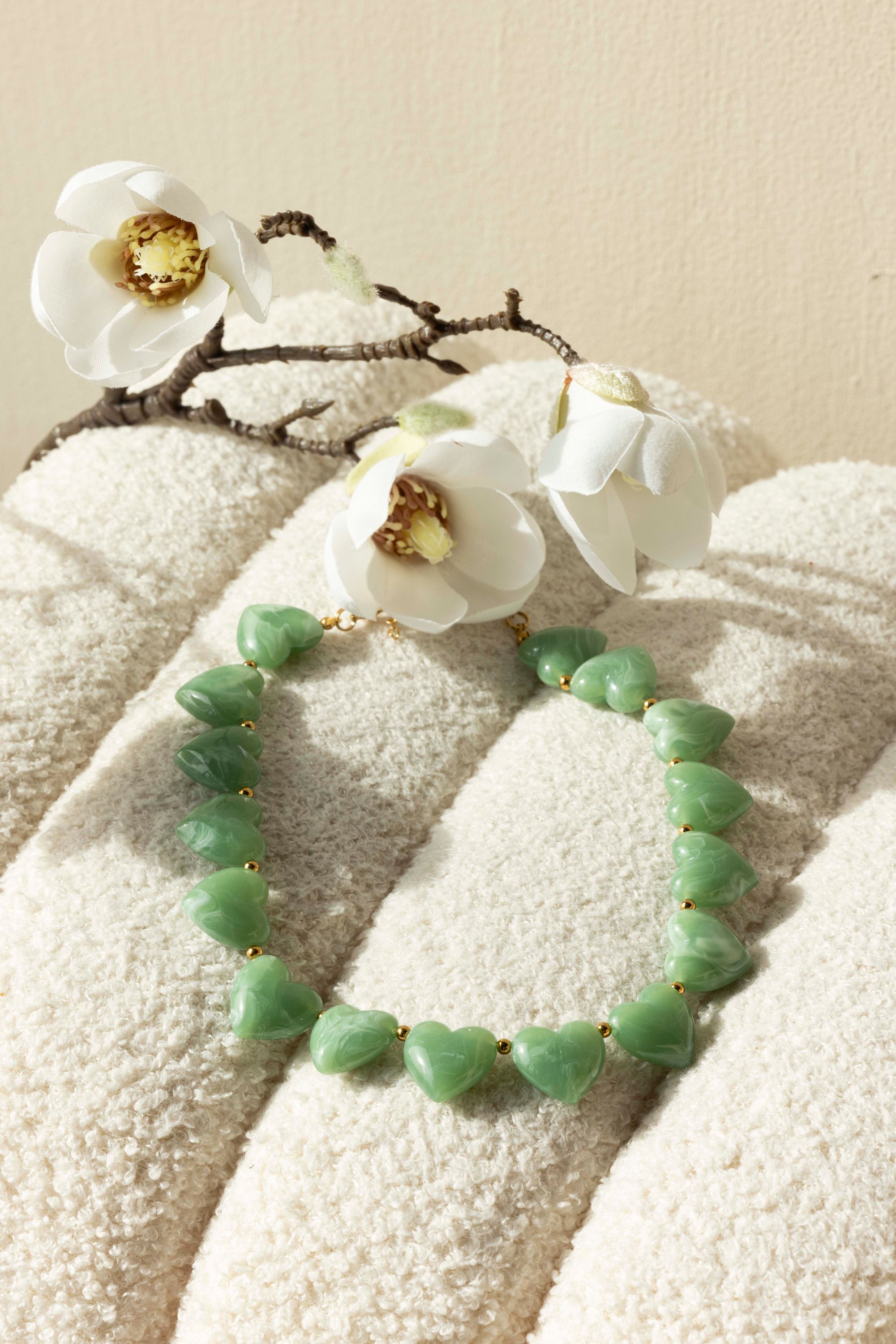 Hartjes kralenketting groen