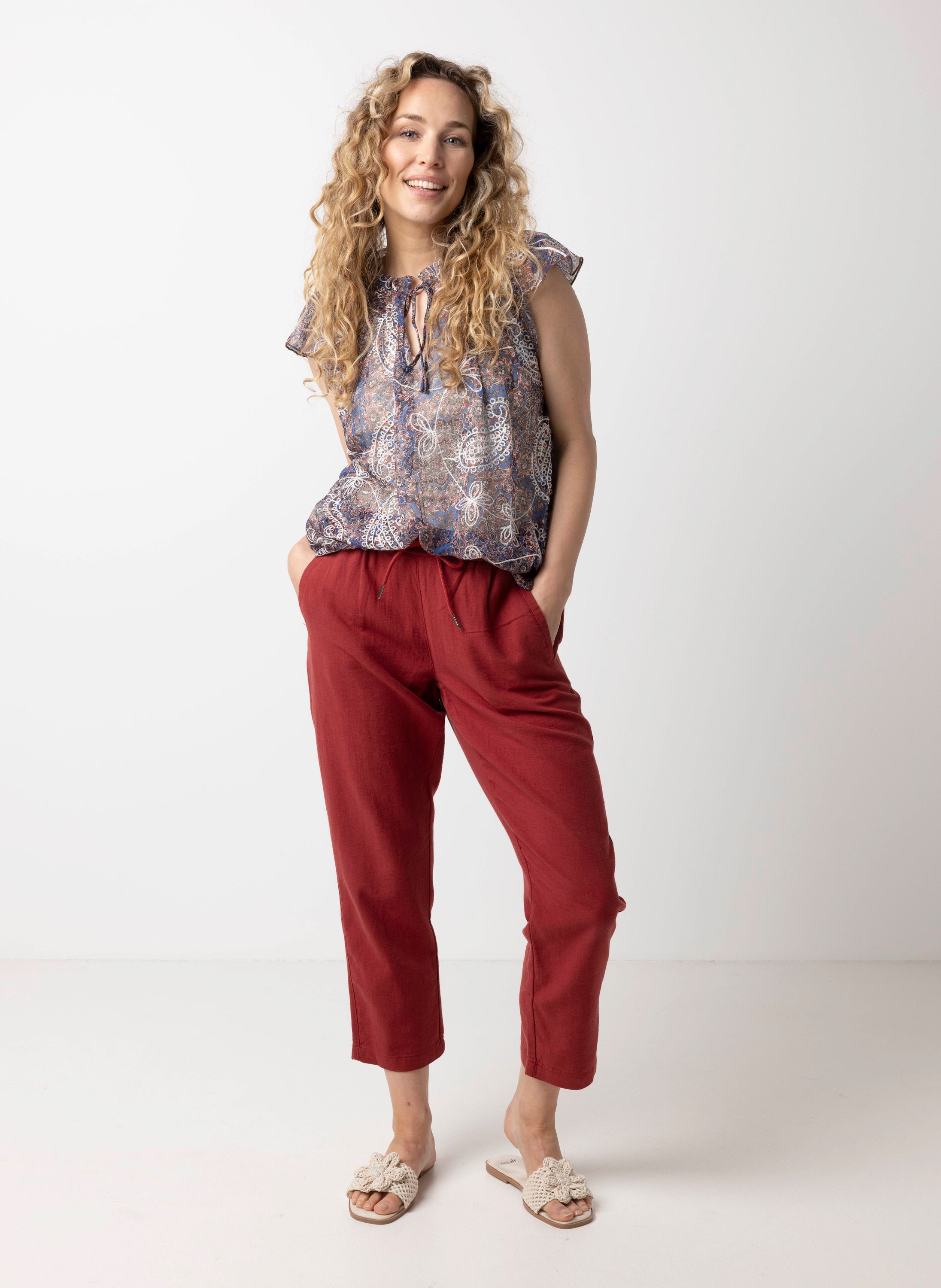Deze high waist loose fit broek biedt ultiem comfort dankzij de elastische tailleband met trekkoord. De steekzakken aan de voorzijde en open zakken achter geven een casual uitstraling.