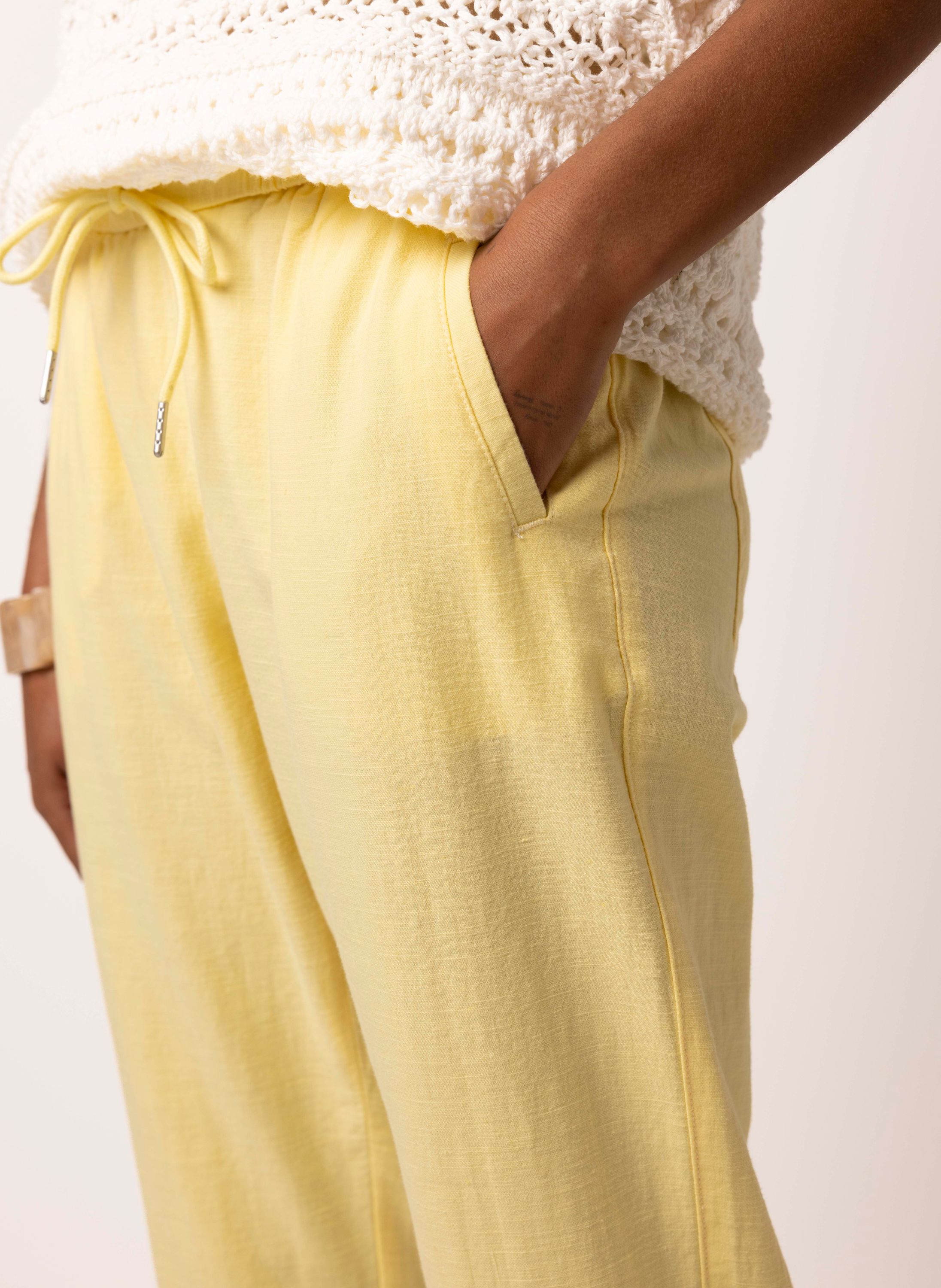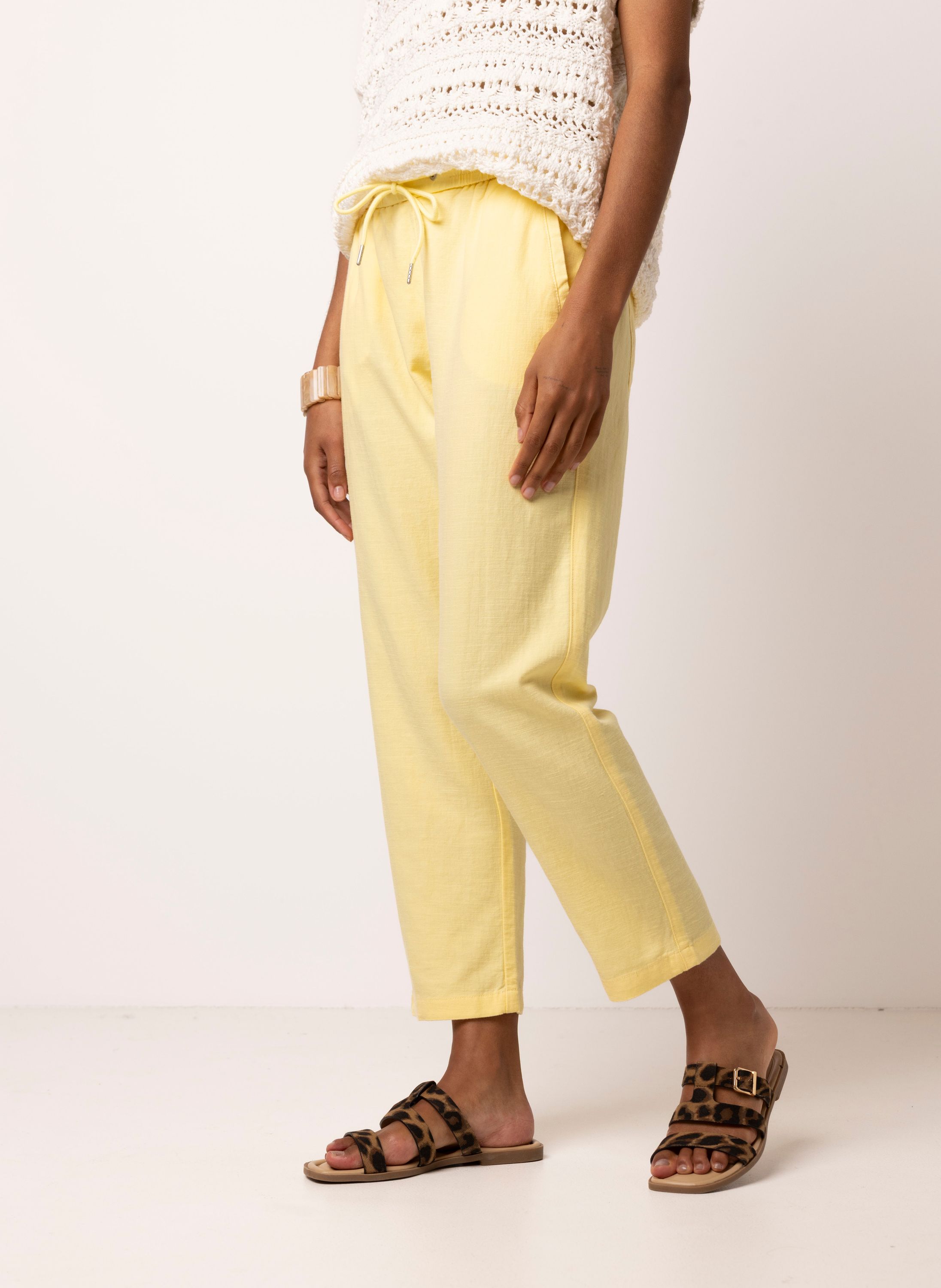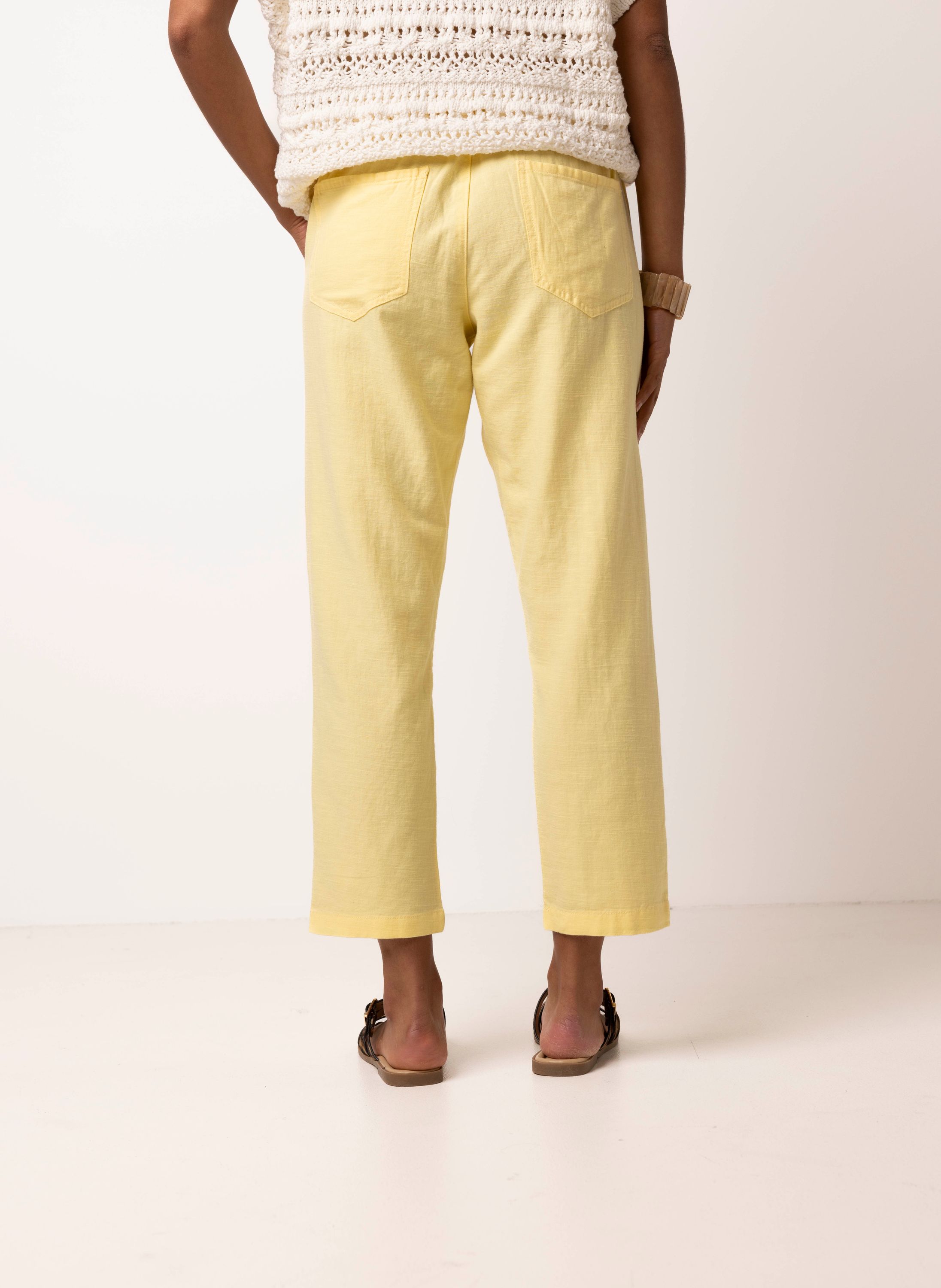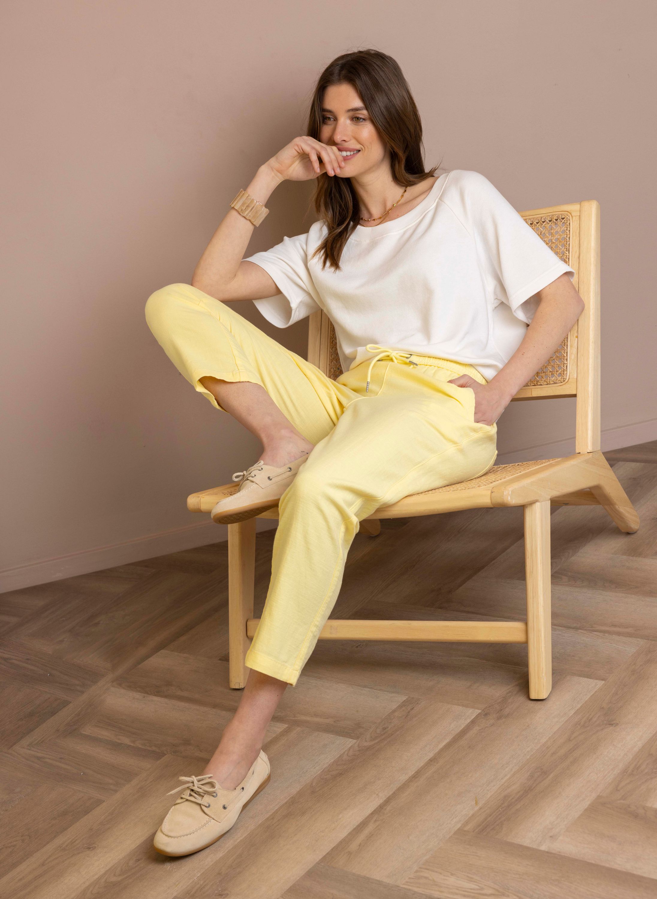 Deze high waist loose fit broek heeft een elastische tailleband met trekkoord voor extra comfort. Voorzien van steekzakken aan de voorkant en open zakken aan de achterkant.