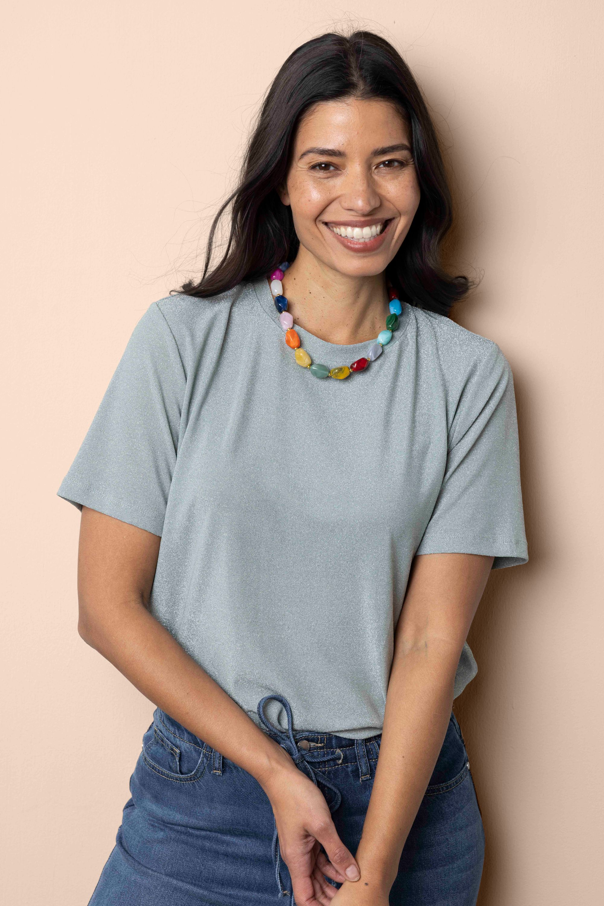 Deze ketting met gekleurde kralen en goudkleurige sluiting geeft je outfit een speels accent. Afmeting: 40 cm.
