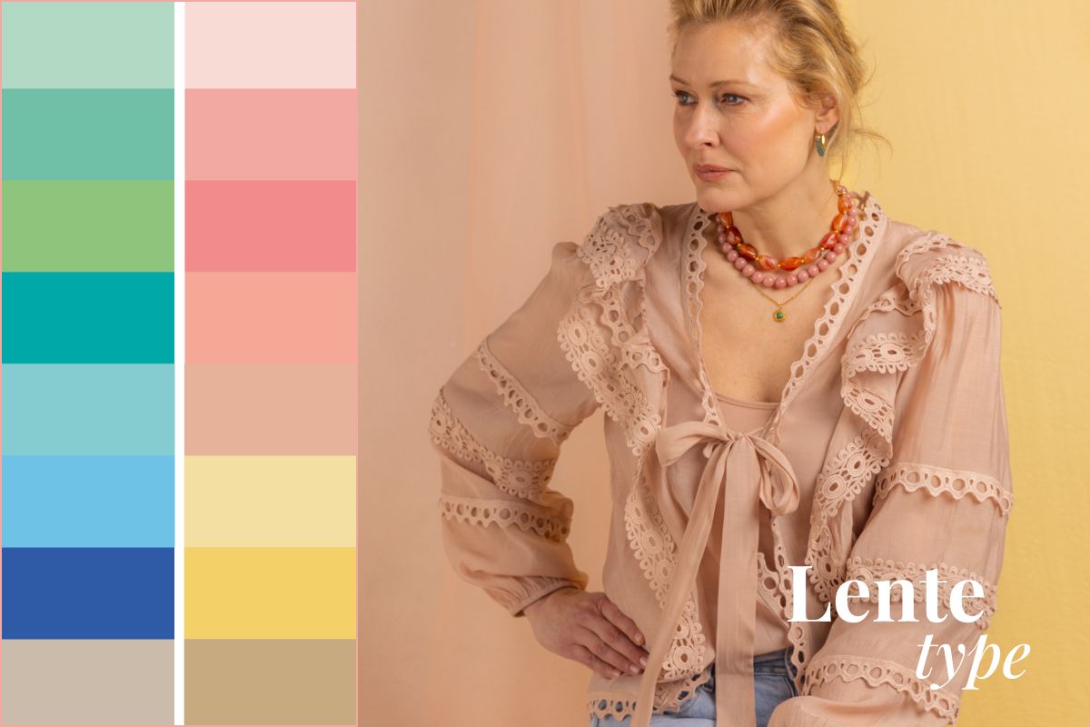 Vermijd te donkere of koele kleuren, die kunnen je uitstraling wat harder maken. Kies kleuren die licht en fris aanvoelen en kijk of ze mooi blenden met je huid. Dat zijn vaak de kleuren waarin jij op je mooist bent.