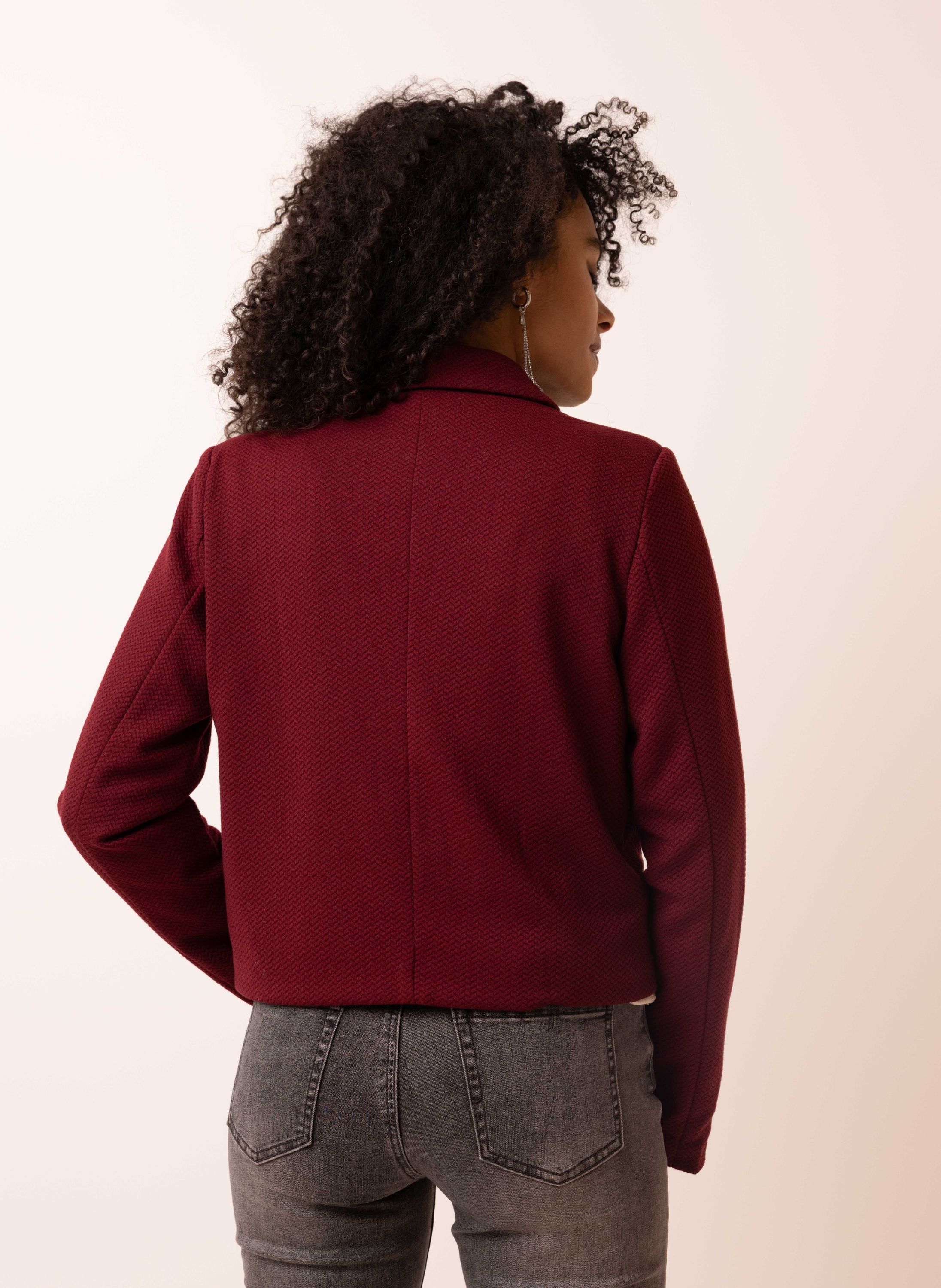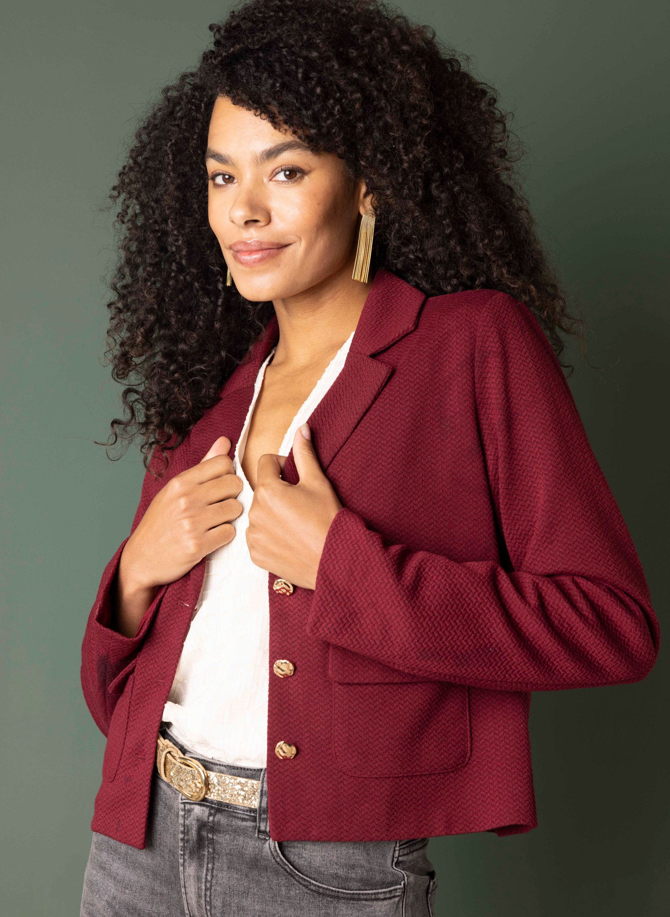 Korte bordeaux blazer met structuur