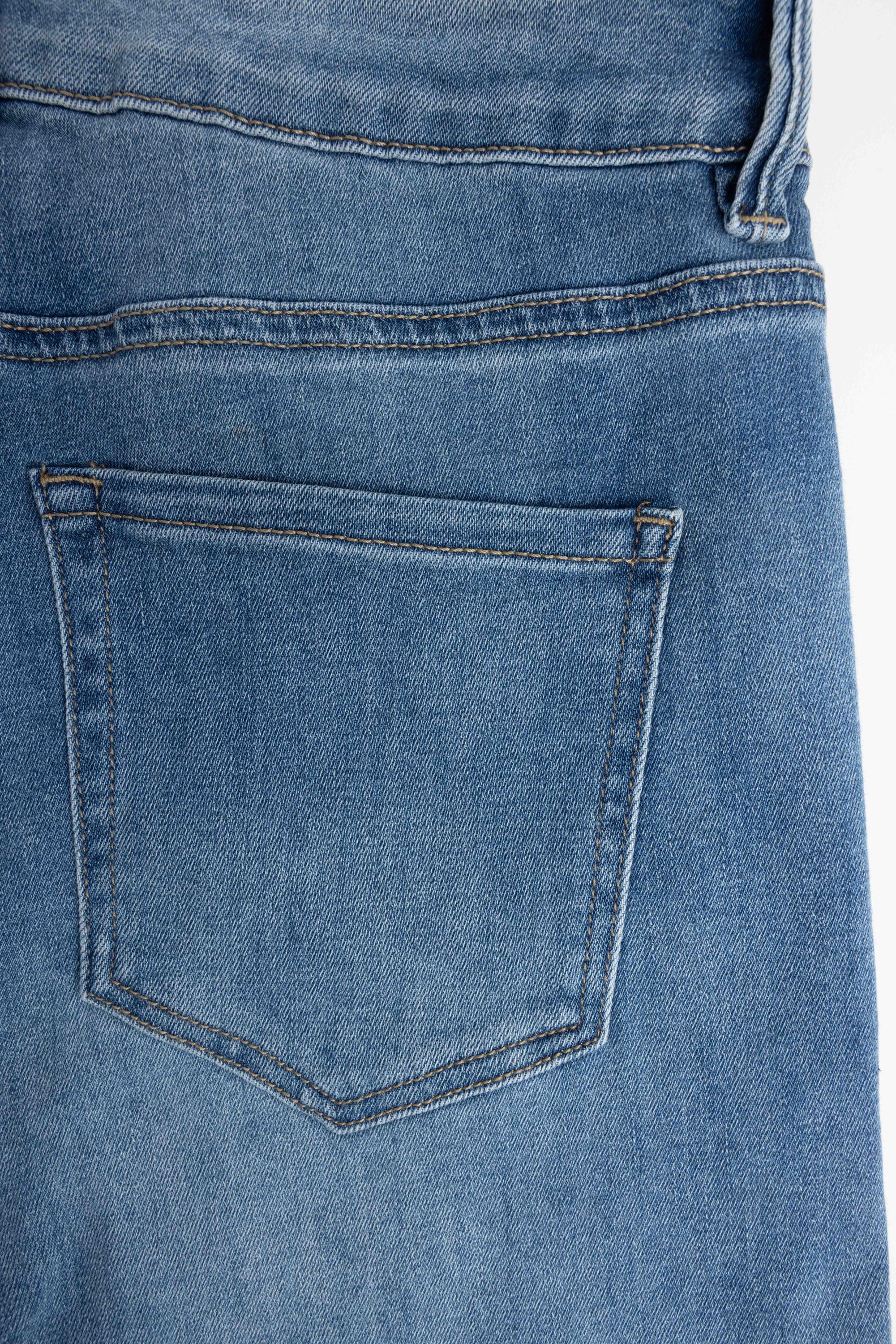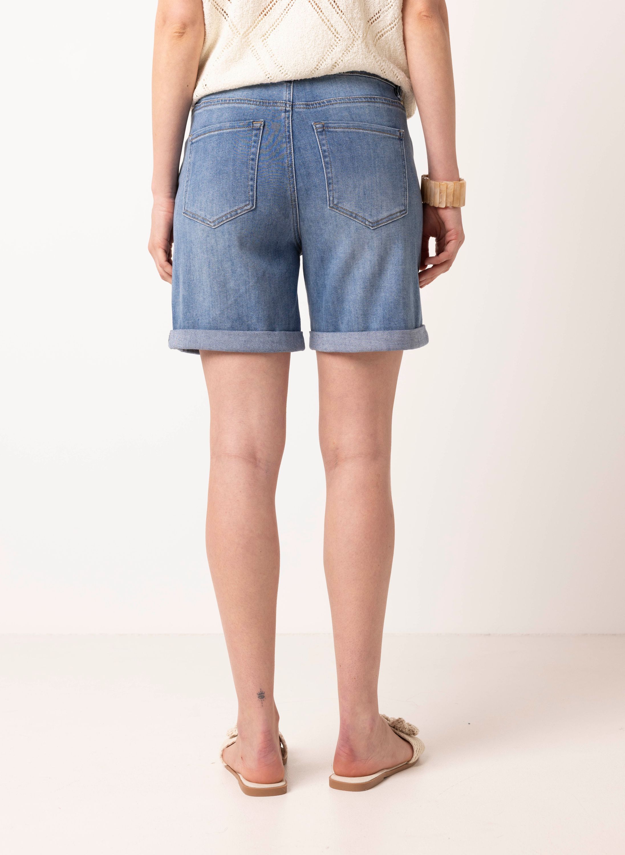 Deze high waist skinny fit korte denim broek met stretch en omgeslagen pijpen heeft een aansluitende pasvorm.