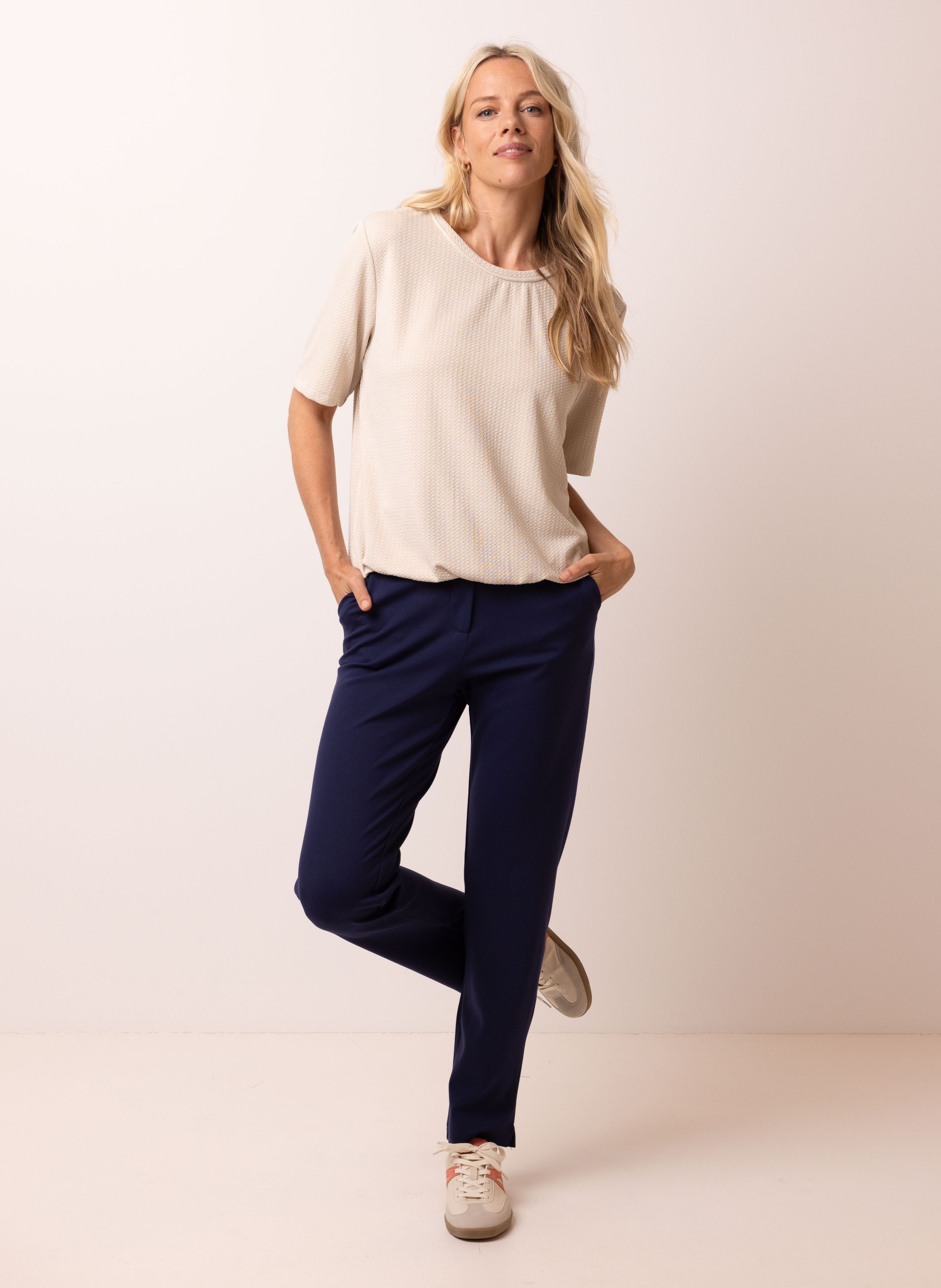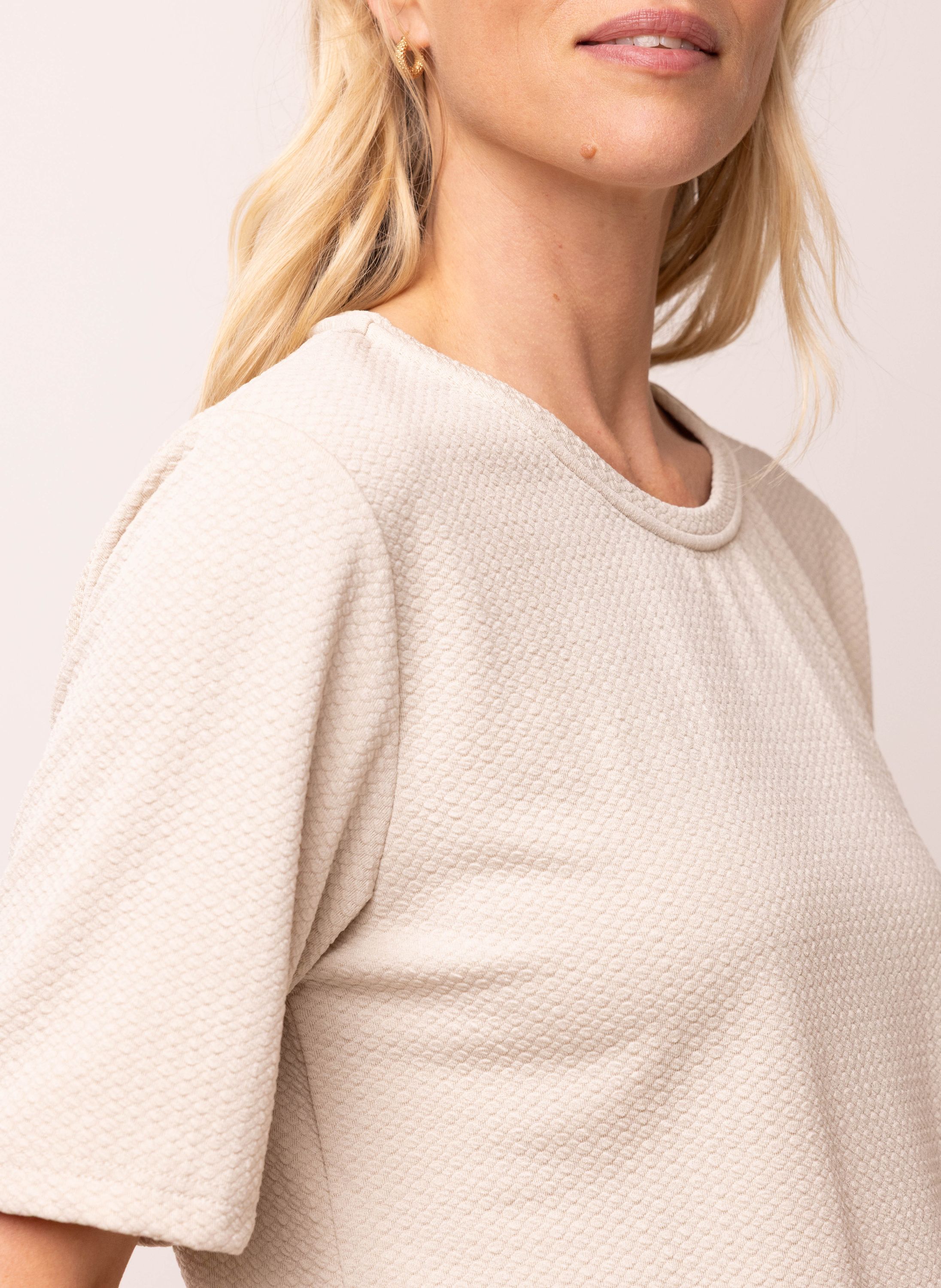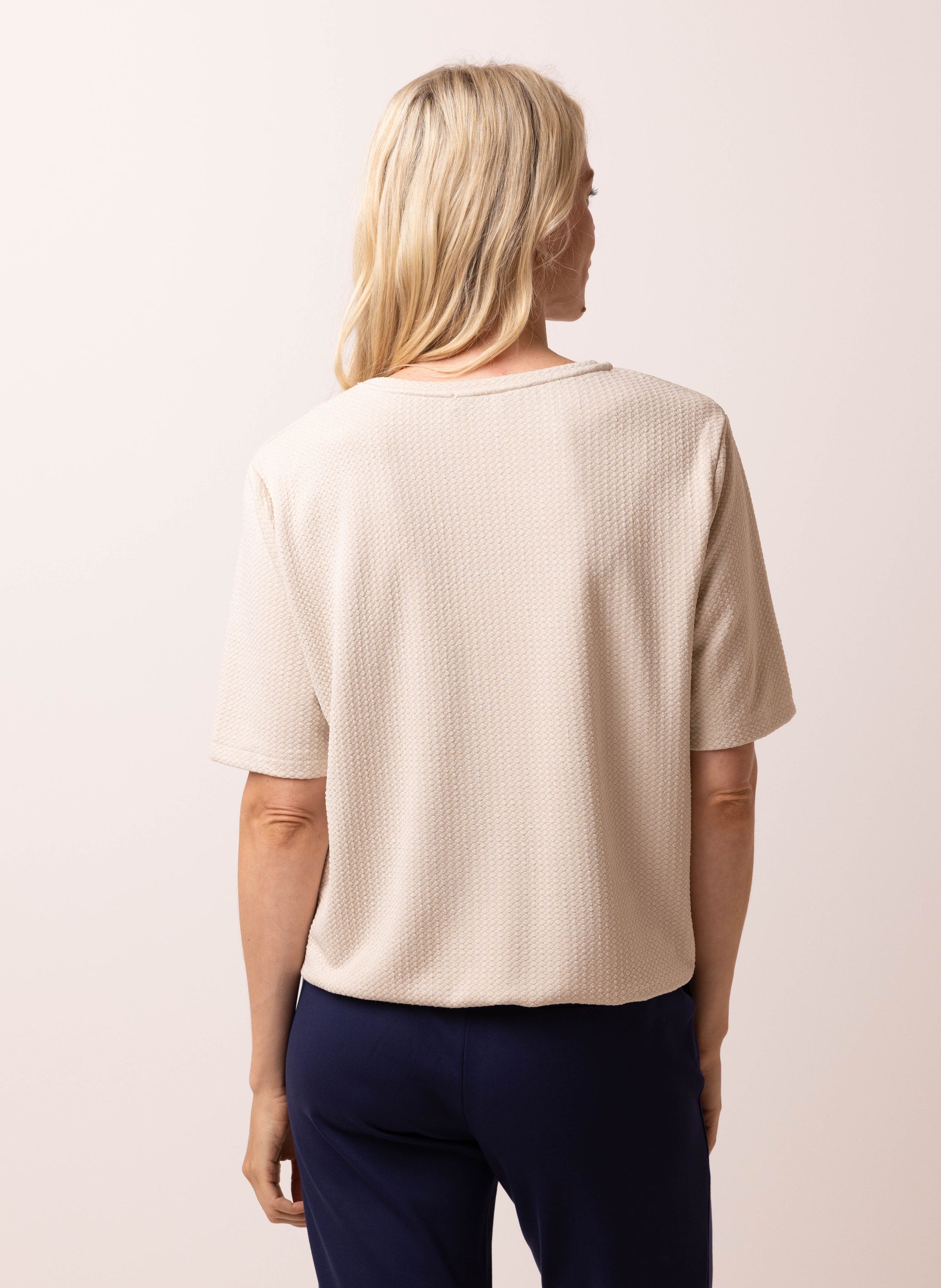 Dit shirt met ronde hals en korte mouwen heeft een elastische band aan de onderzijde en een subtiele structuur voor een speels effect.