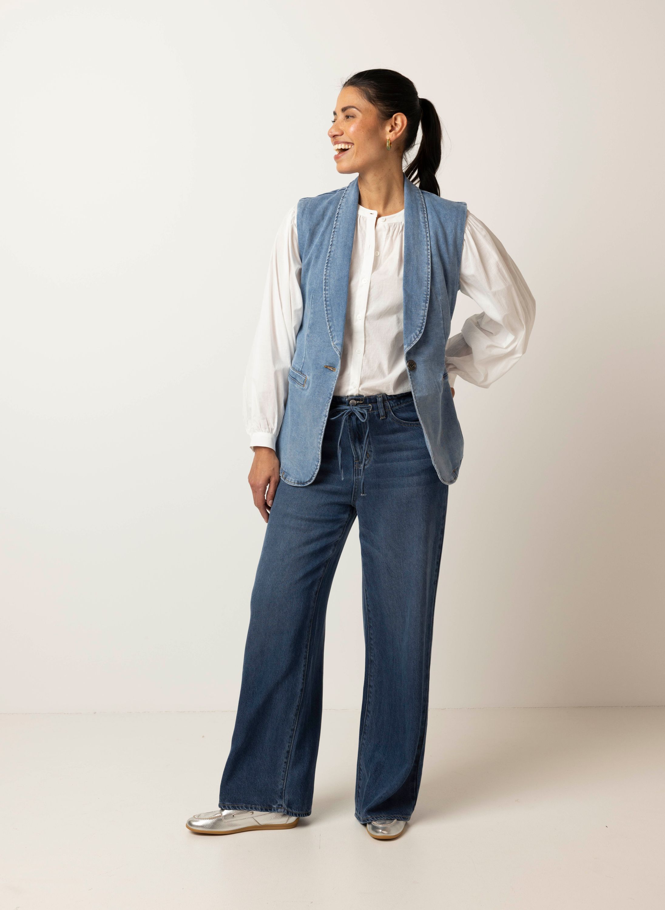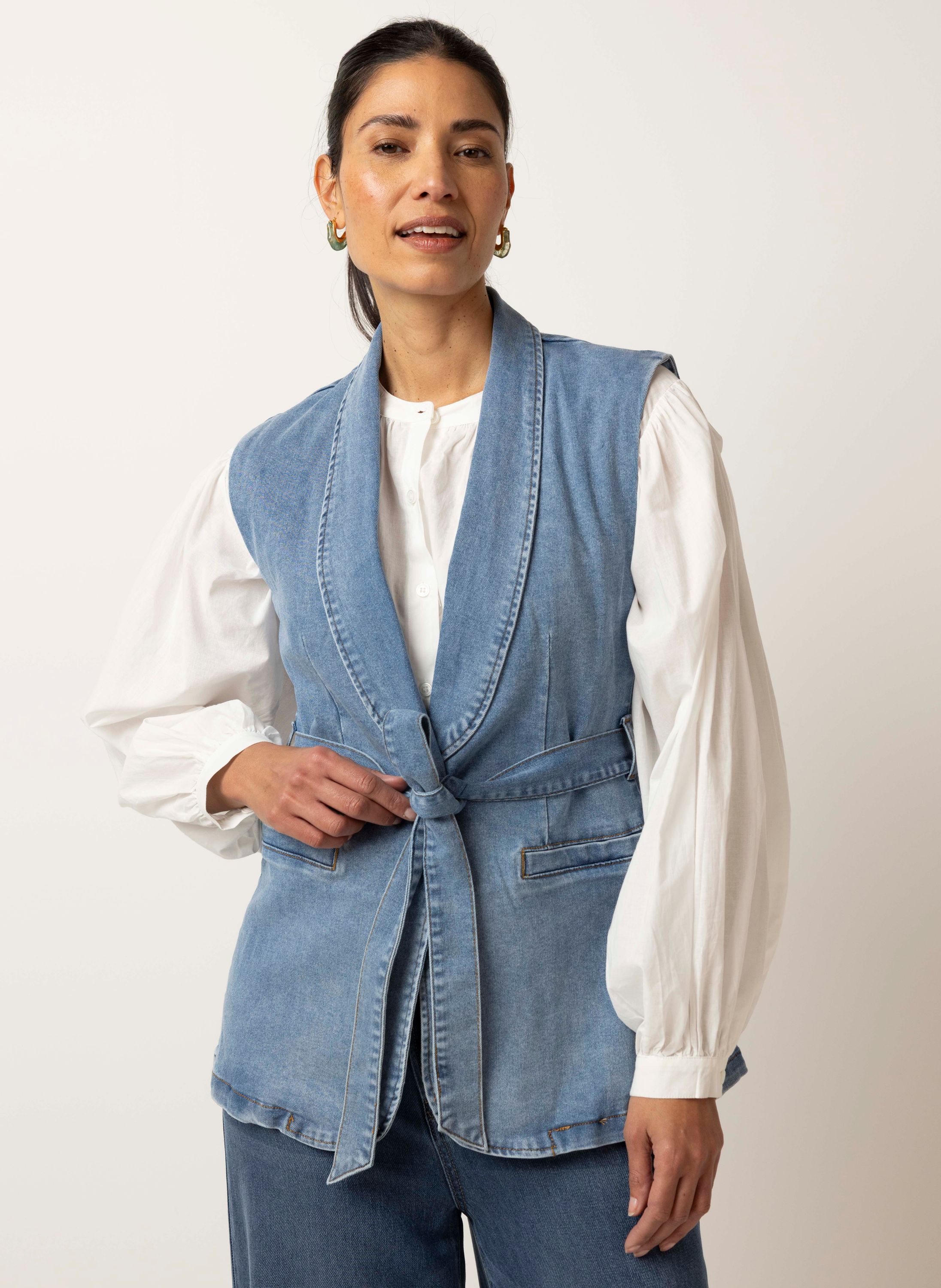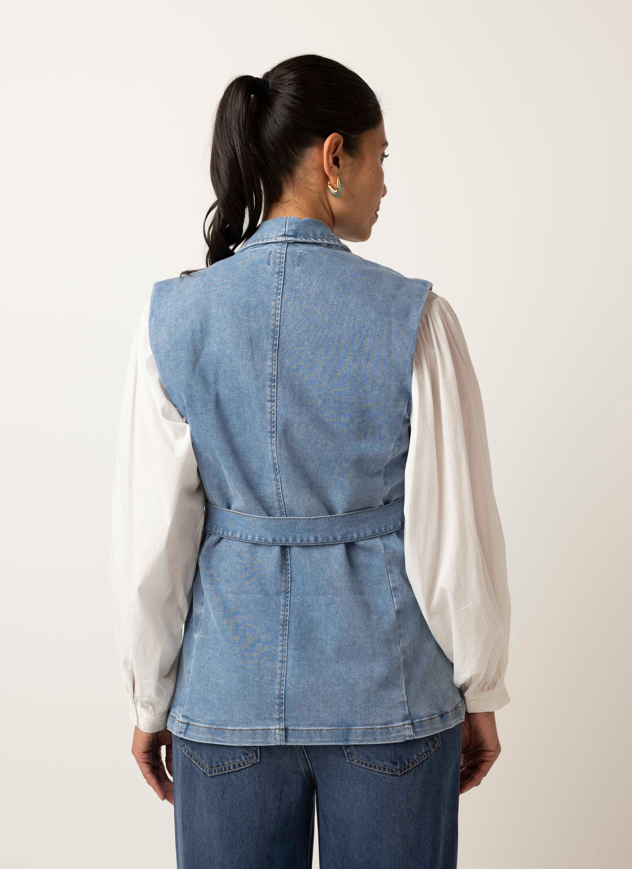 Lichtblauw denim gilet met ceintuur
