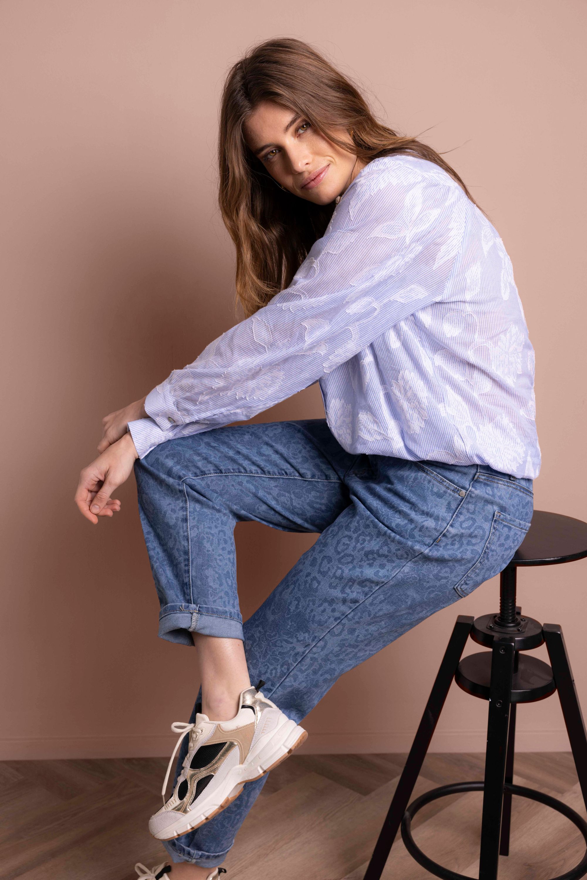 Lichtblauwe blouse met bloemen