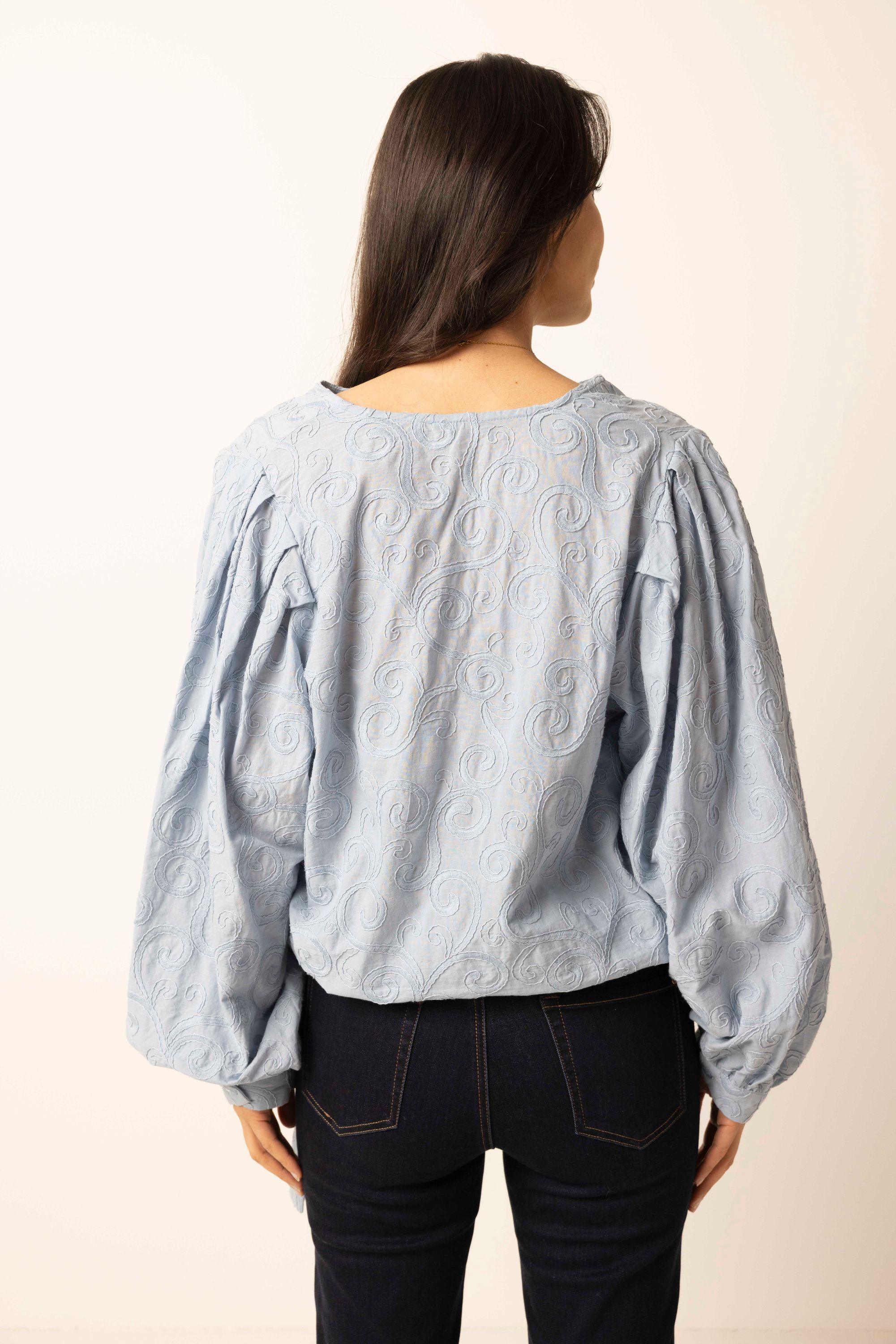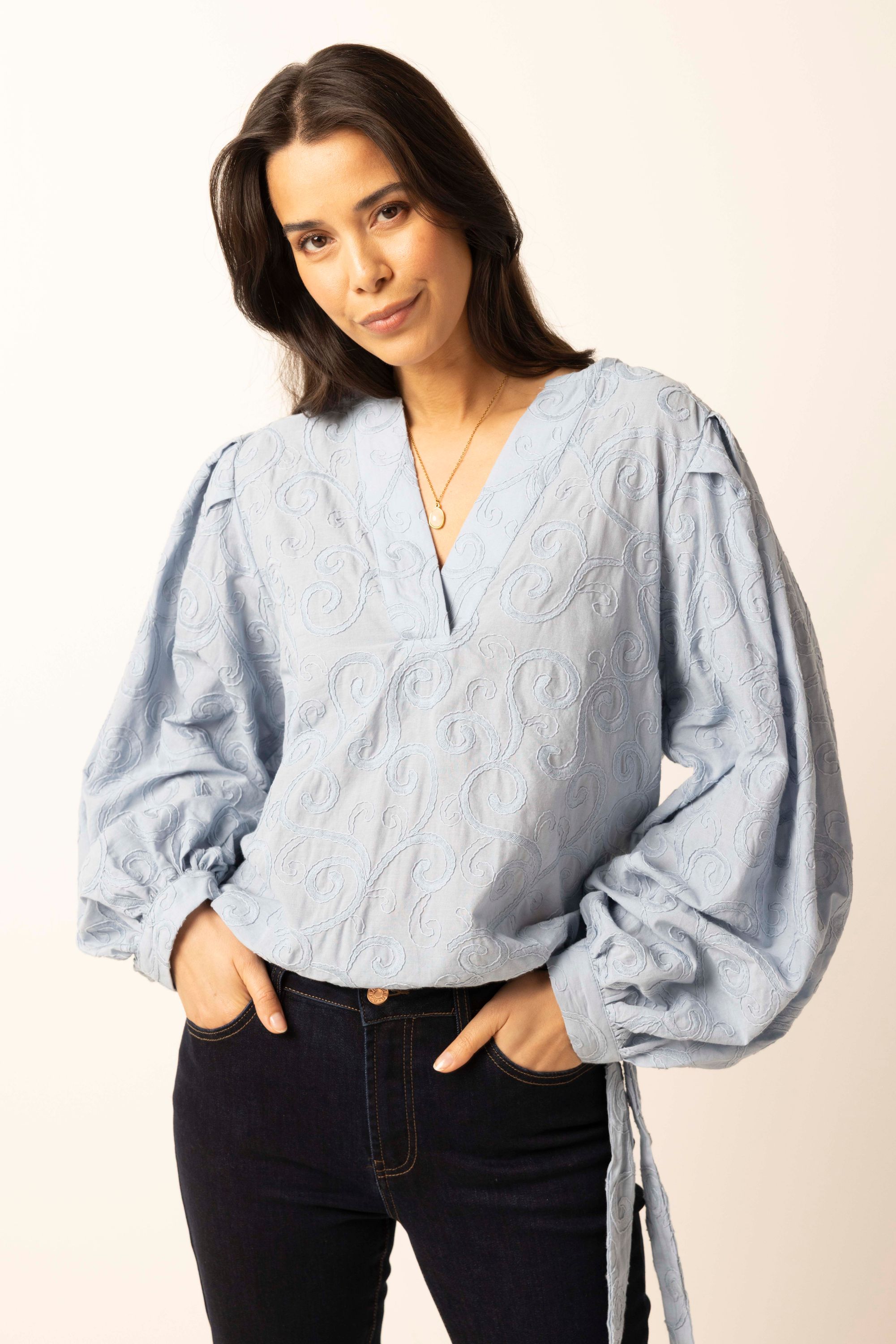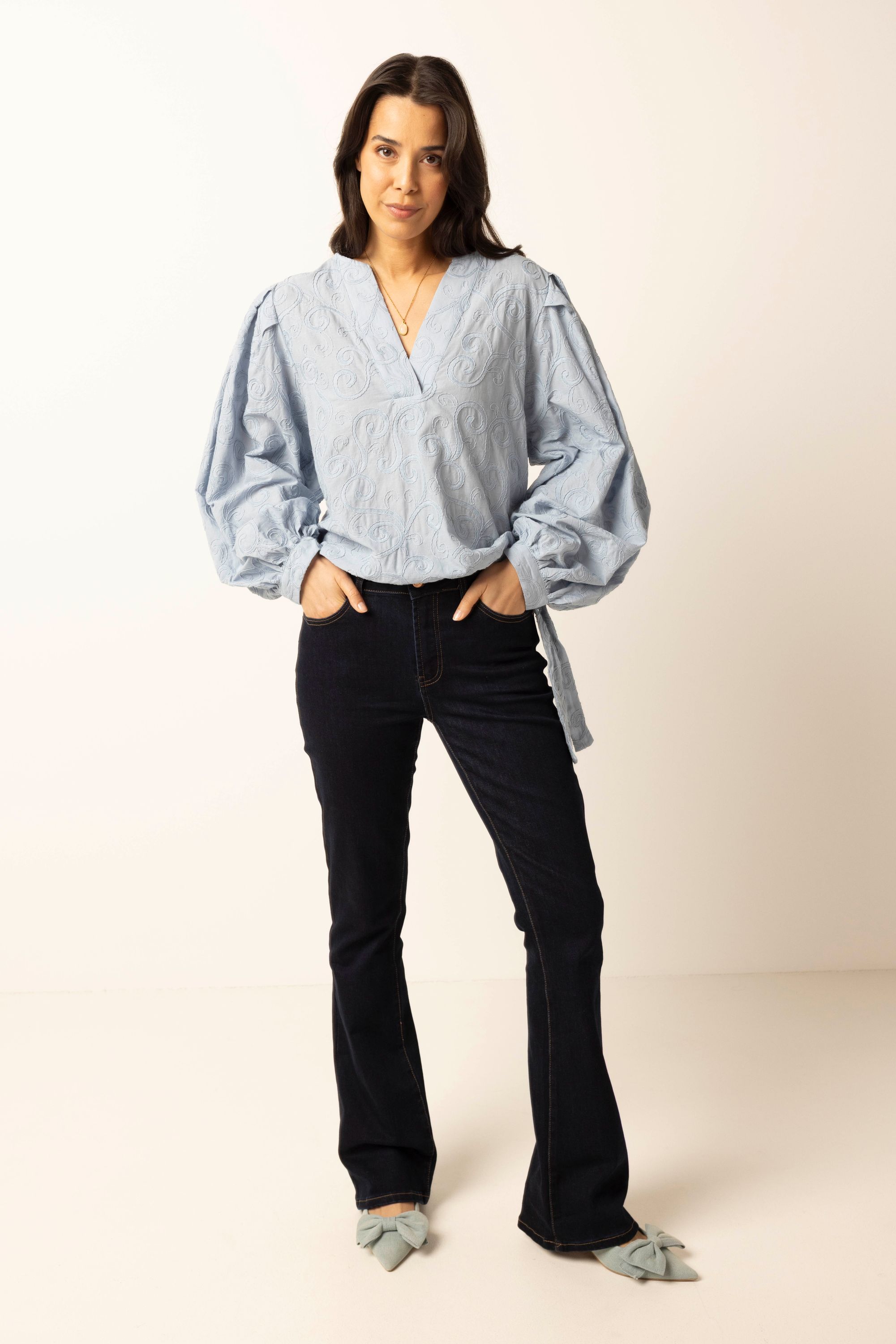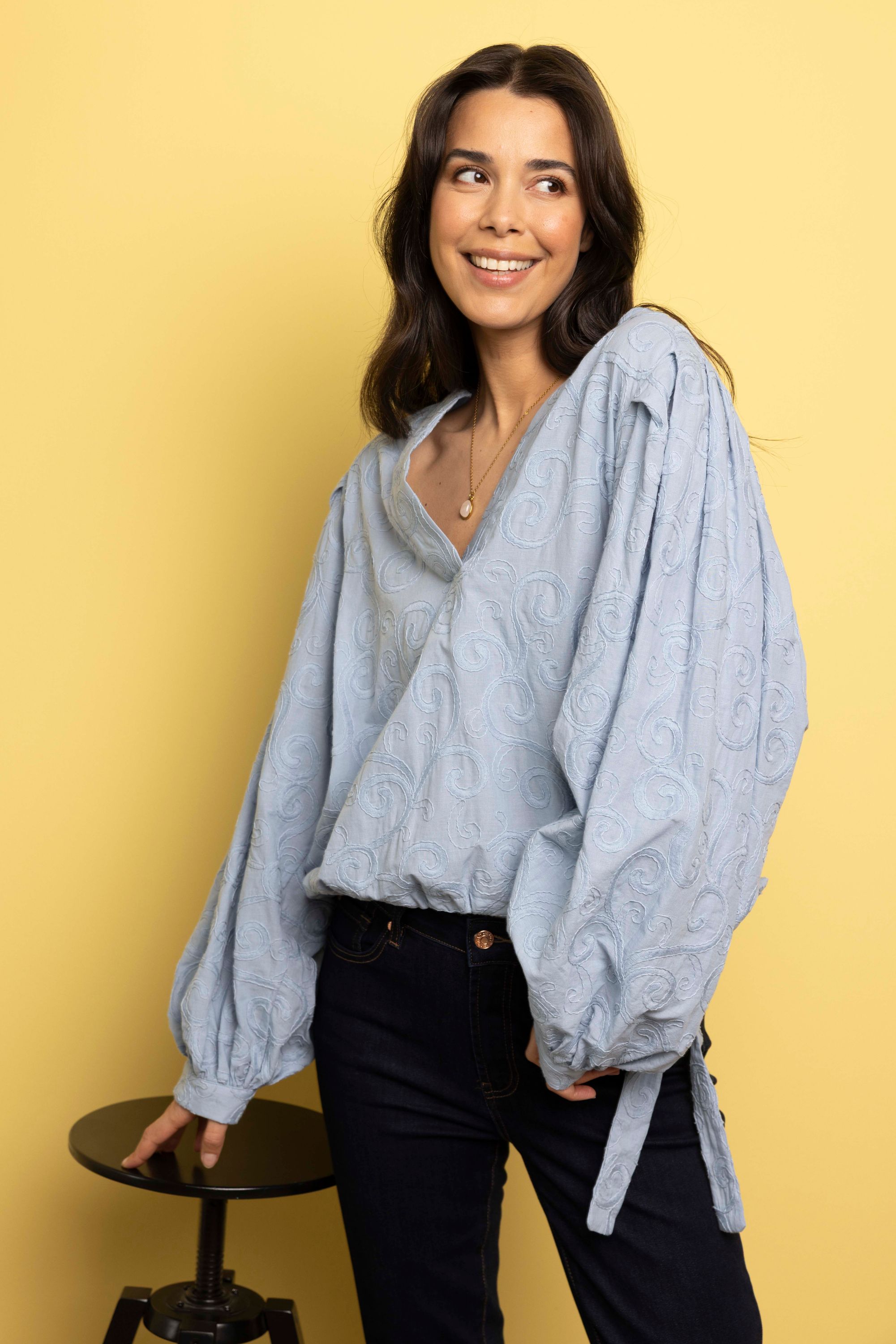 Deze katoenen blouse met V-hals en lange pofmouwen zorgt voor een vrouwelijke uitstraling.