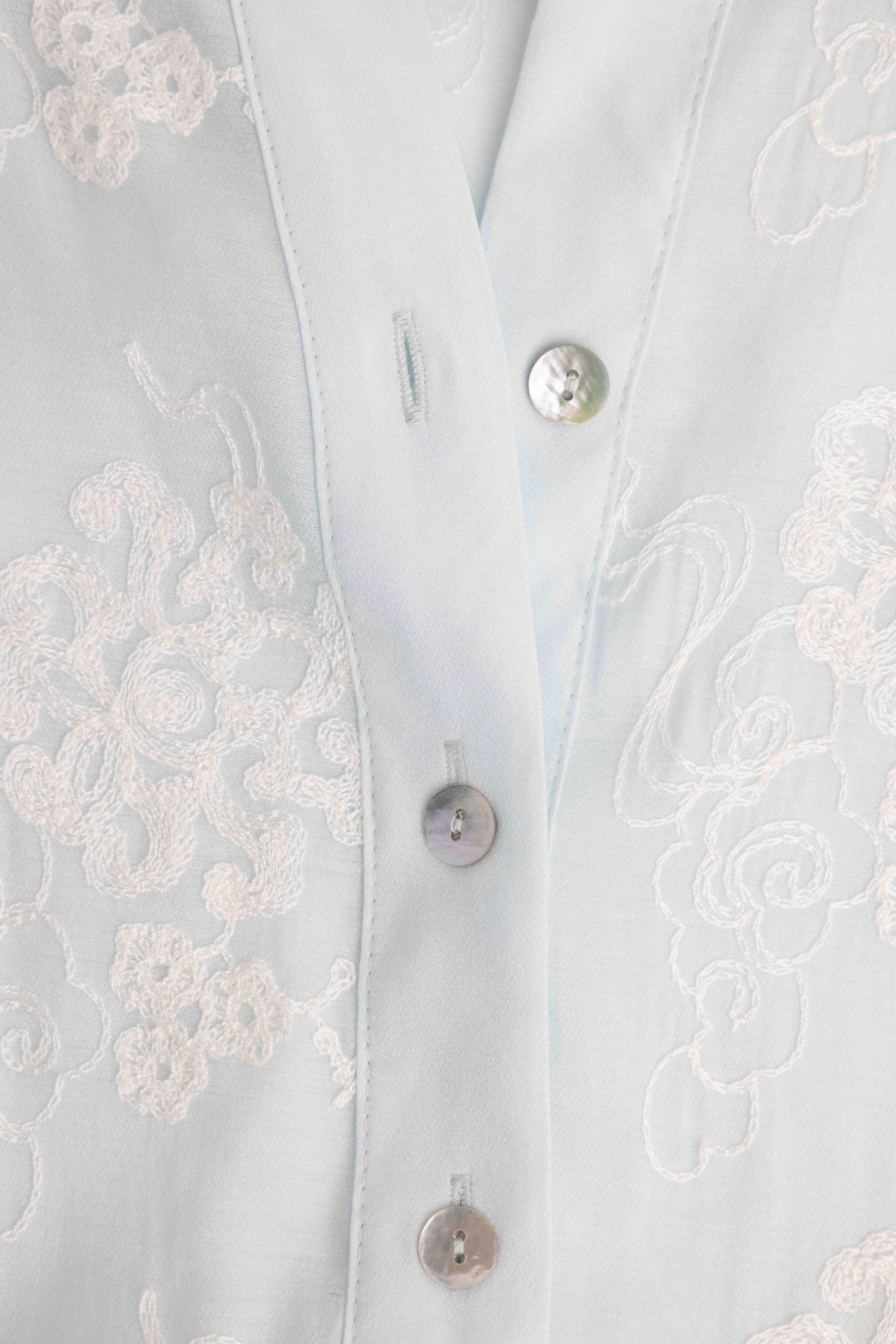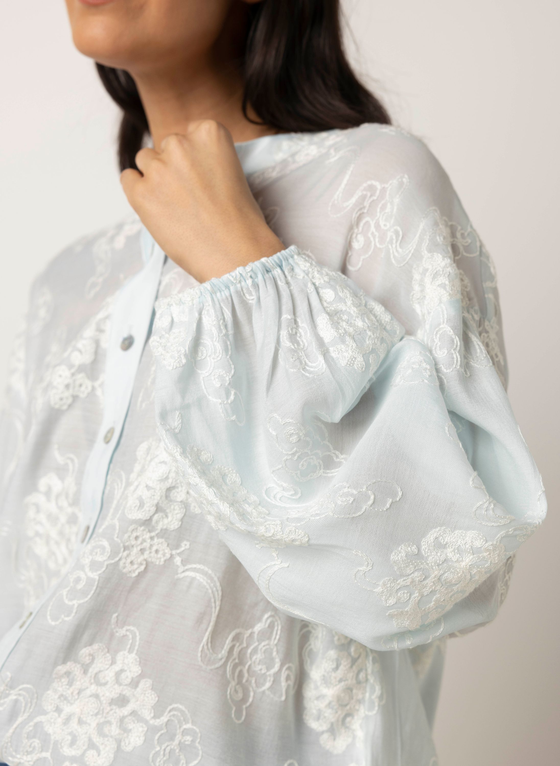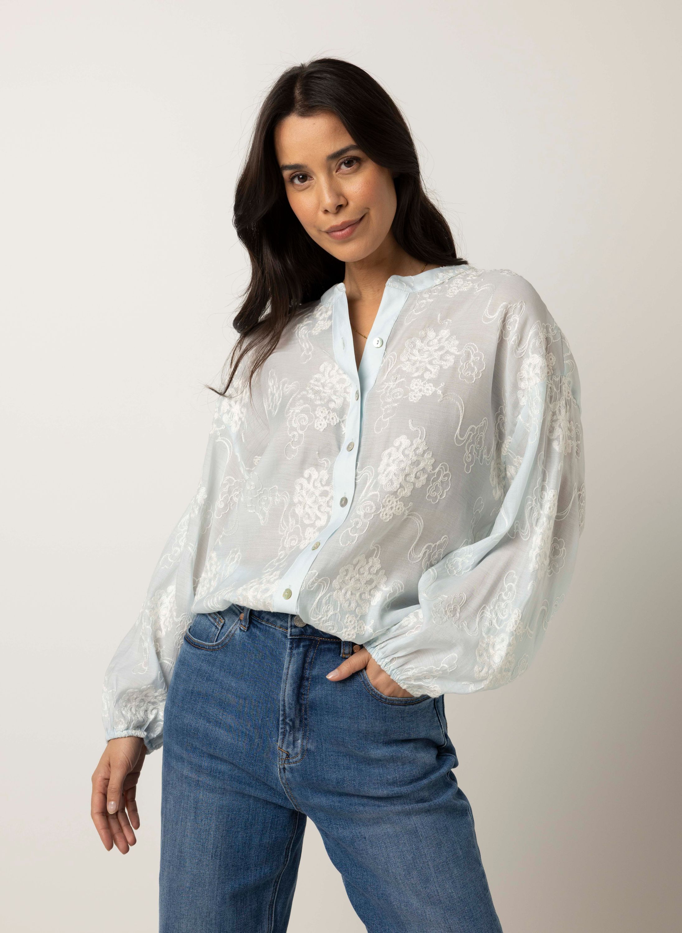 Lichtblauwe blouse met borduursels