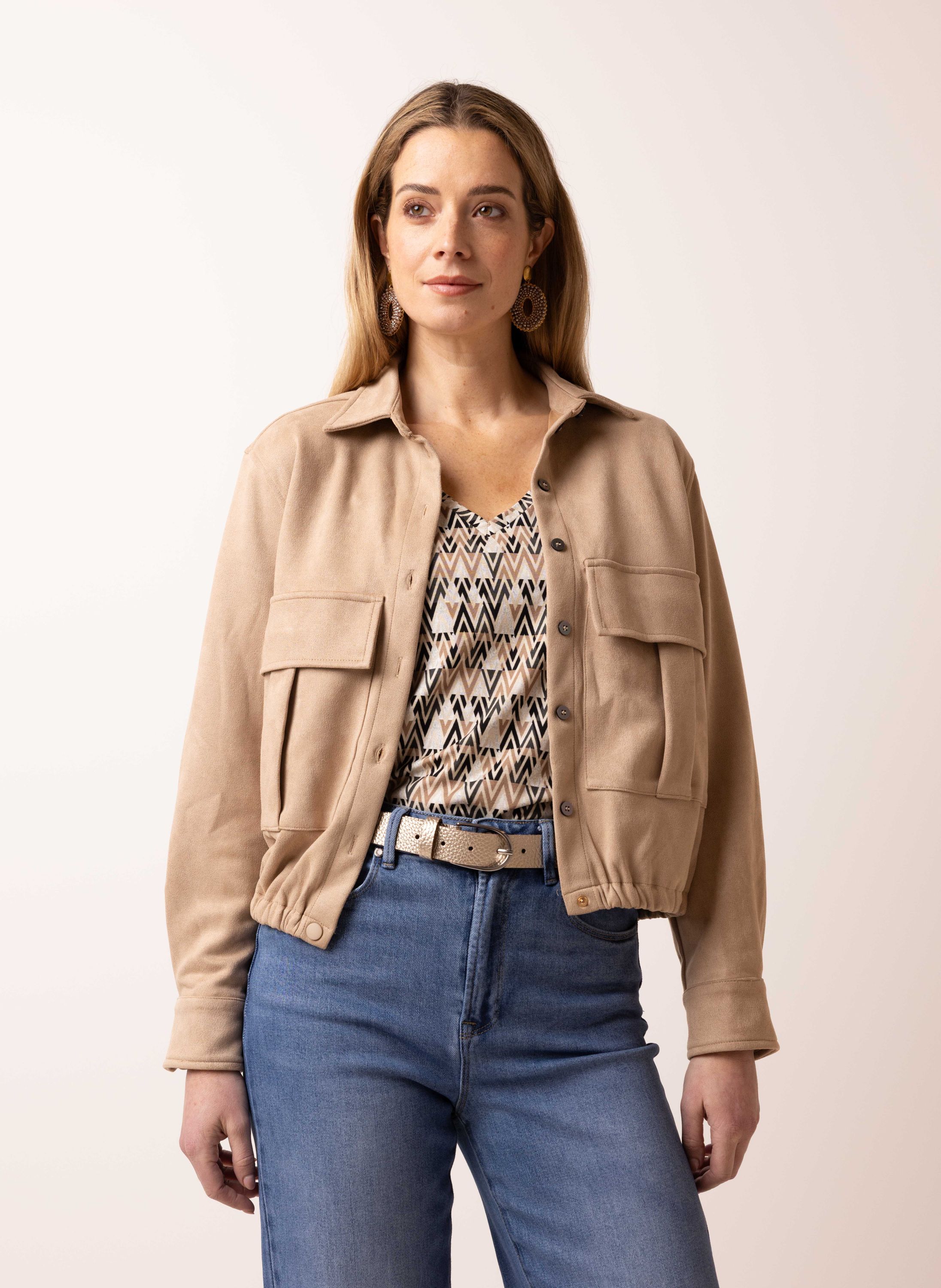 Lichtbruin suèdine jasje met klassieke kraag