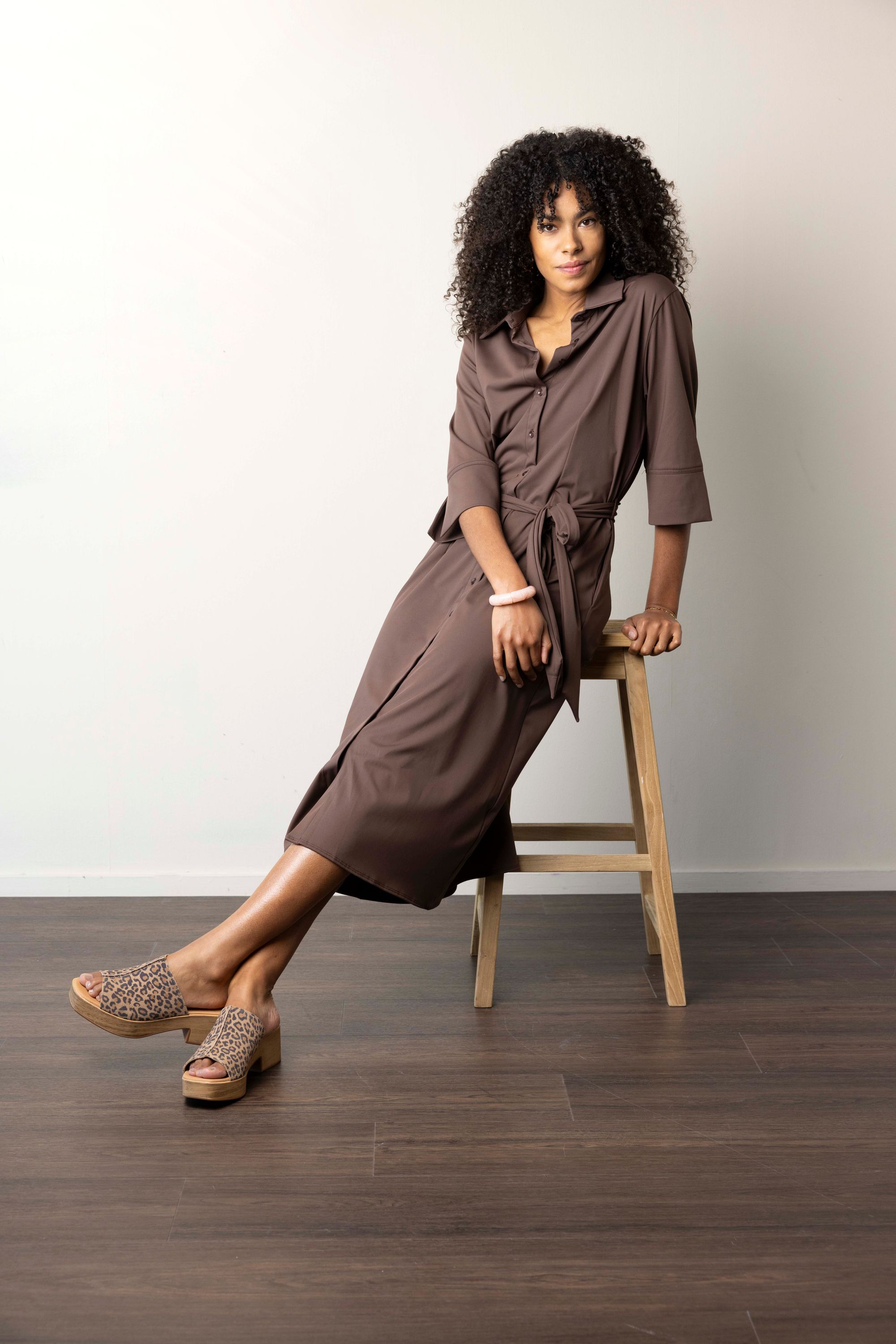 Lichtbruine maxi jurk van travelstof