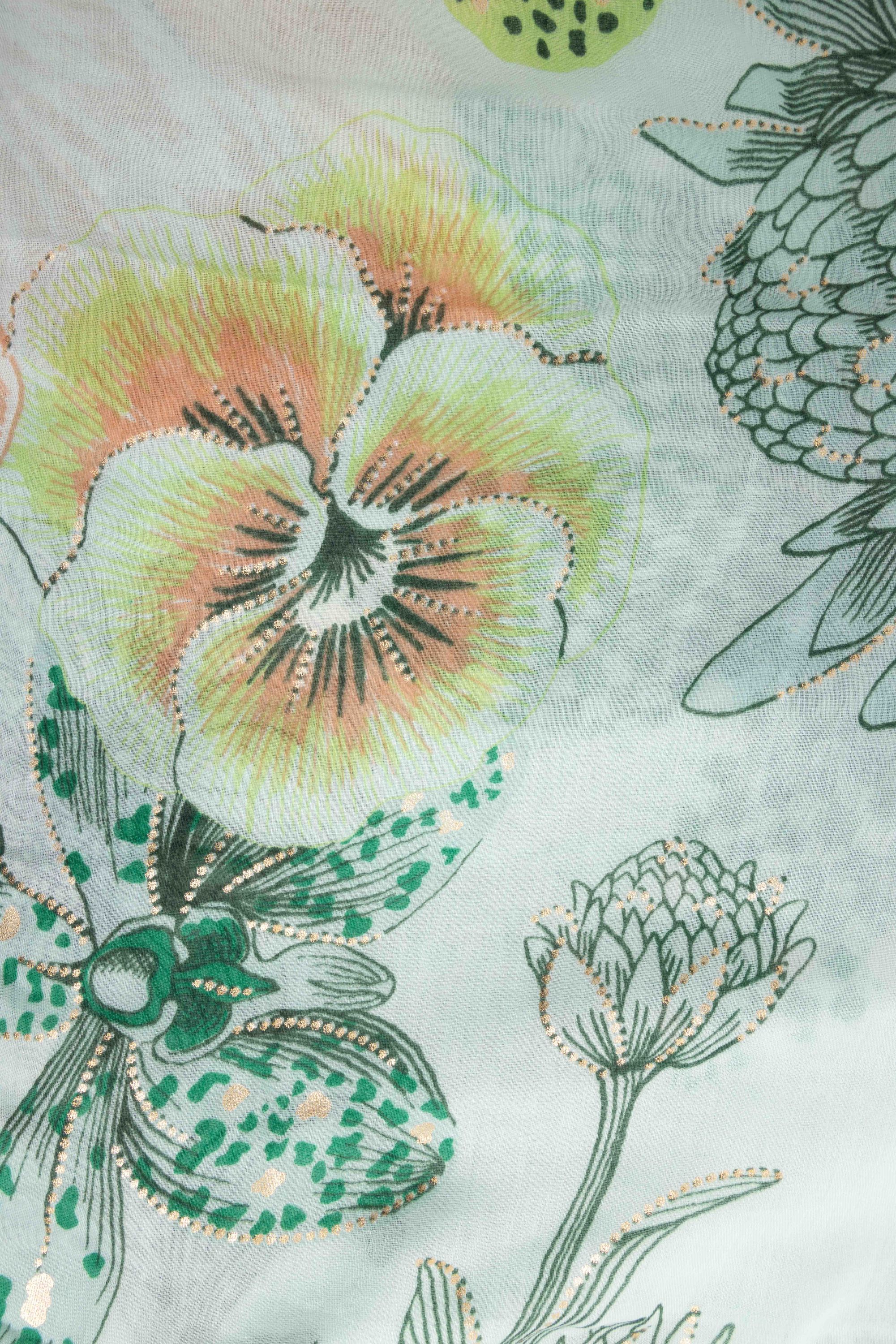 Lichtgroene sjaal met botanische print