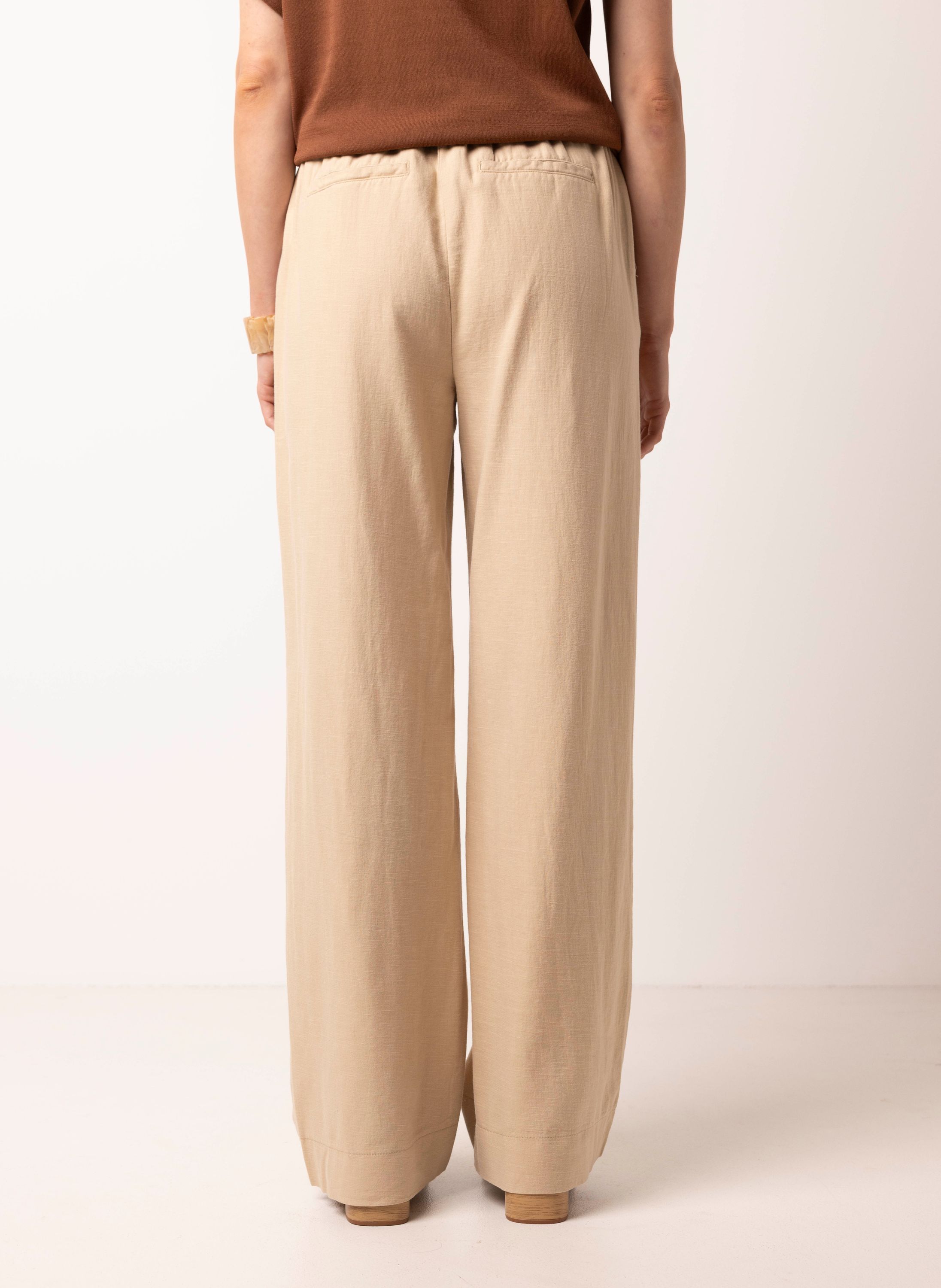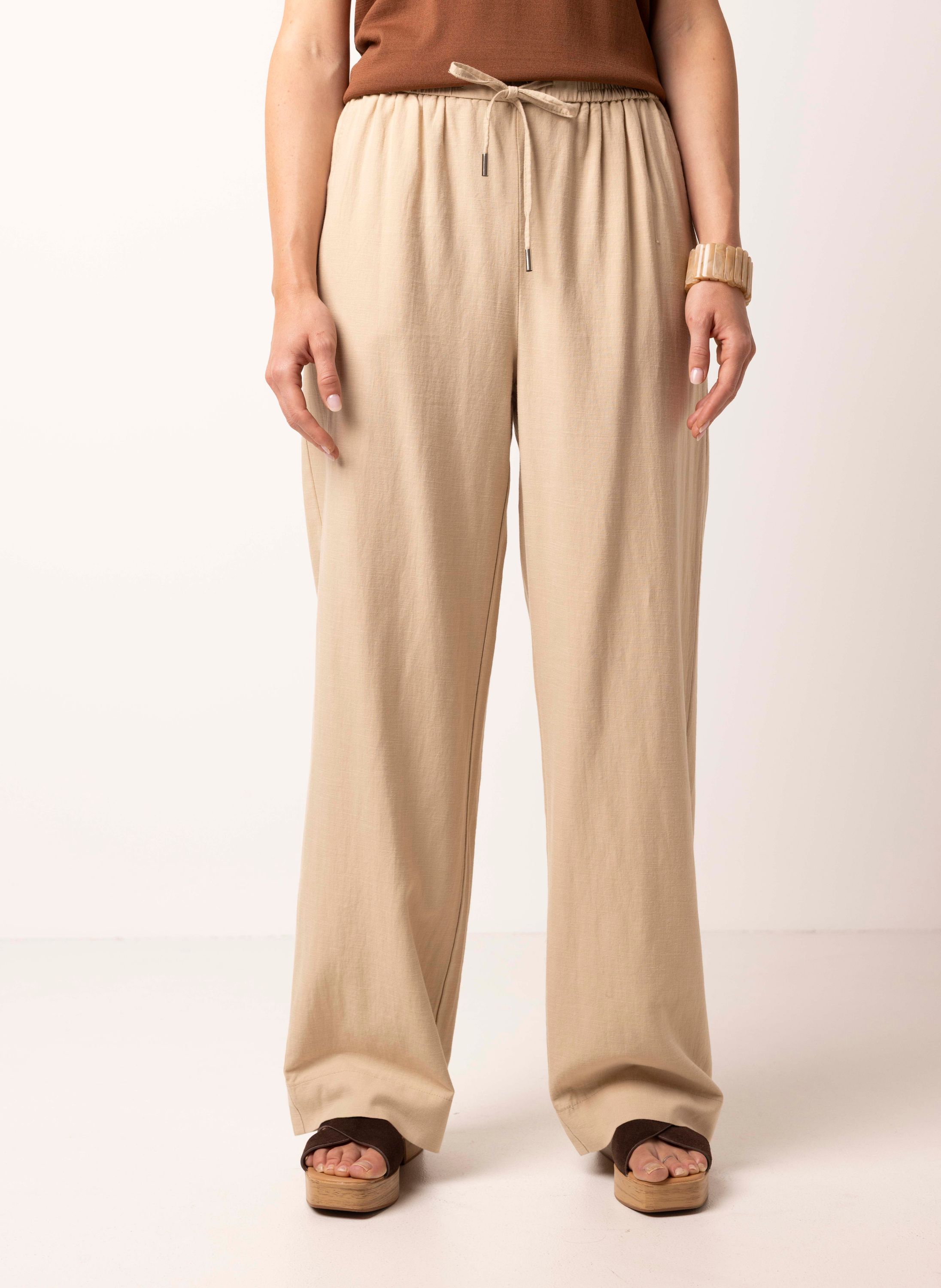 Deze high waist wide fit broek met elastische tailleband en trekkoord heeft steekzakken en decoratieve zakken aan de achterzijde voor een comfortabele pasvorm.