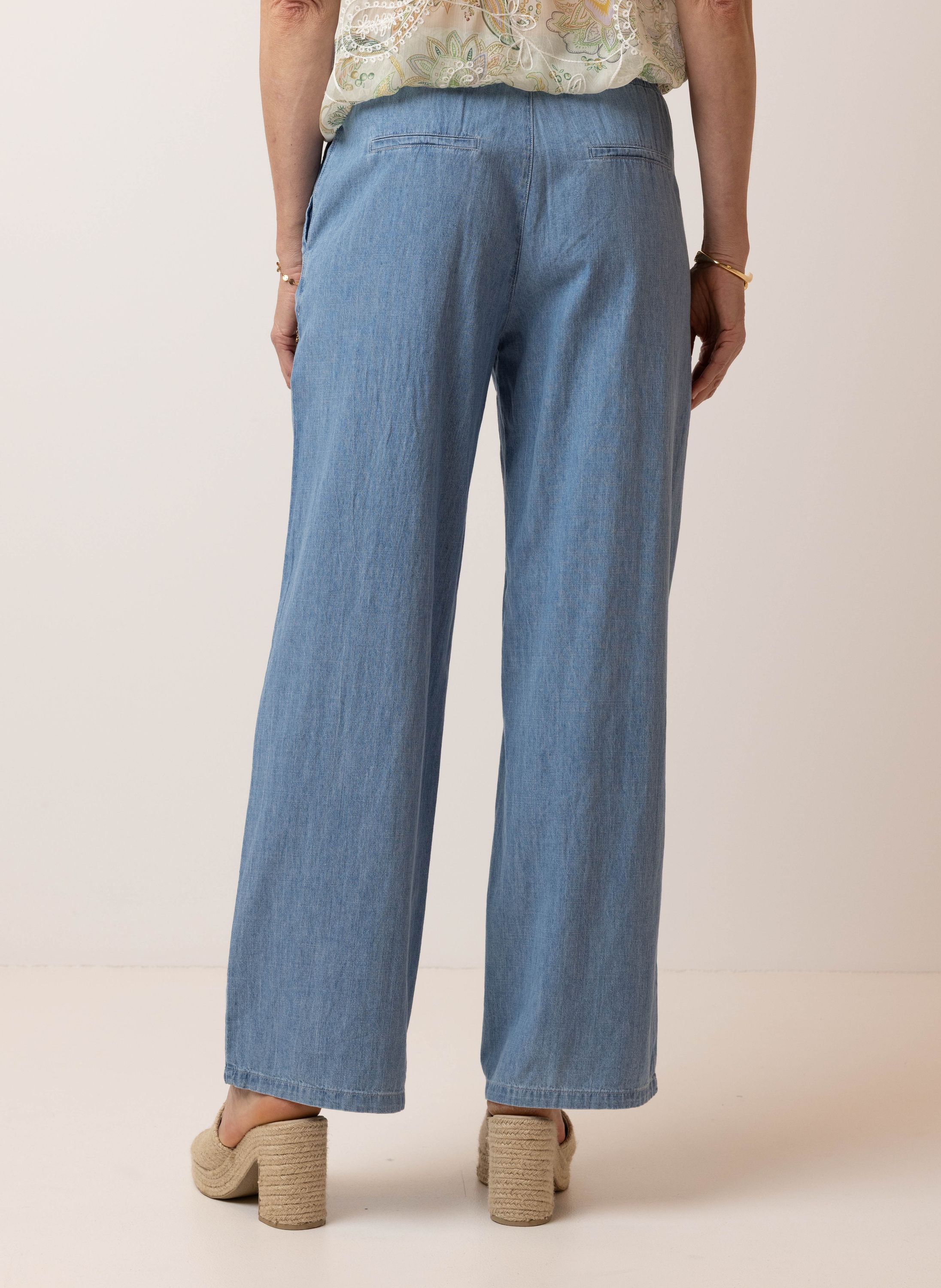 Deze high waist loose fit broek heeft een elastische tailleband met trekkoord, steekzakken aan de voorzijde en decoratieve paspelzakken aan de achterzijde. Dit item is exclusief verkrijgbaar in geselecteerde winkels en online. Controleer de winkelvoorraad om de beschikbaarheid in een winkel bij jou in de buurt te bekijken.