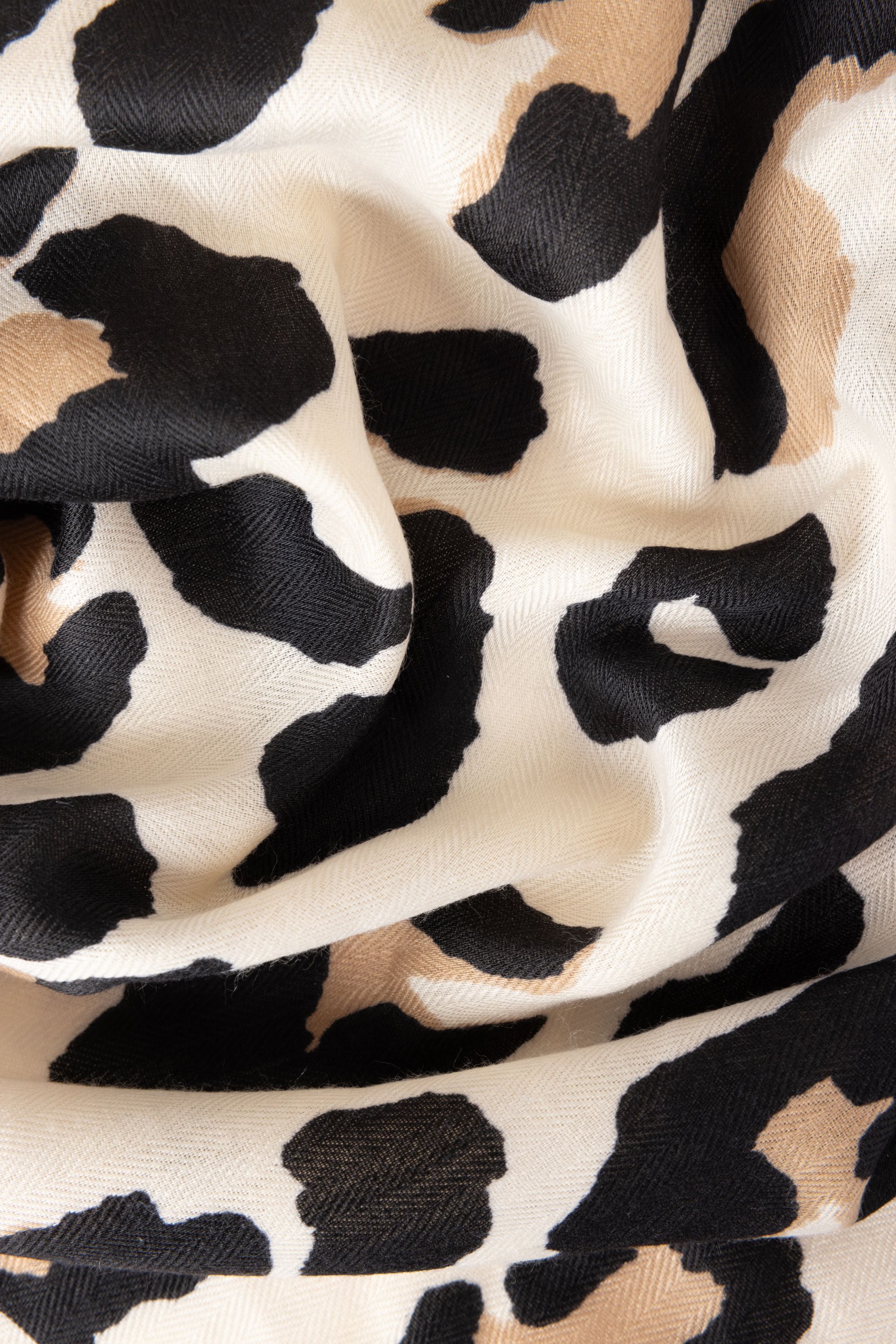 Deze glanzende sjaal met luipaardprint is een speelse toevoeging en perfect te stylen met onze sjaalring.