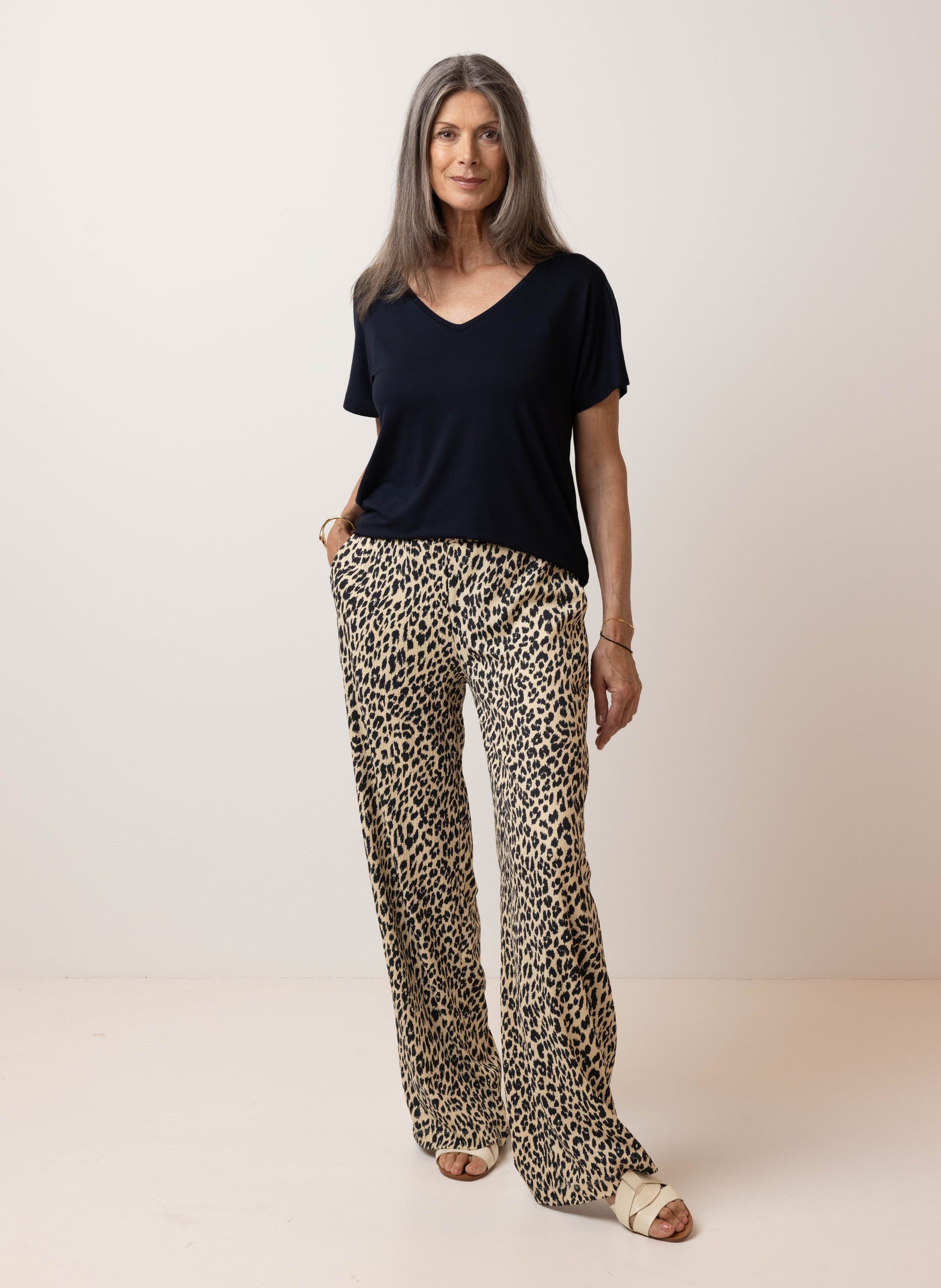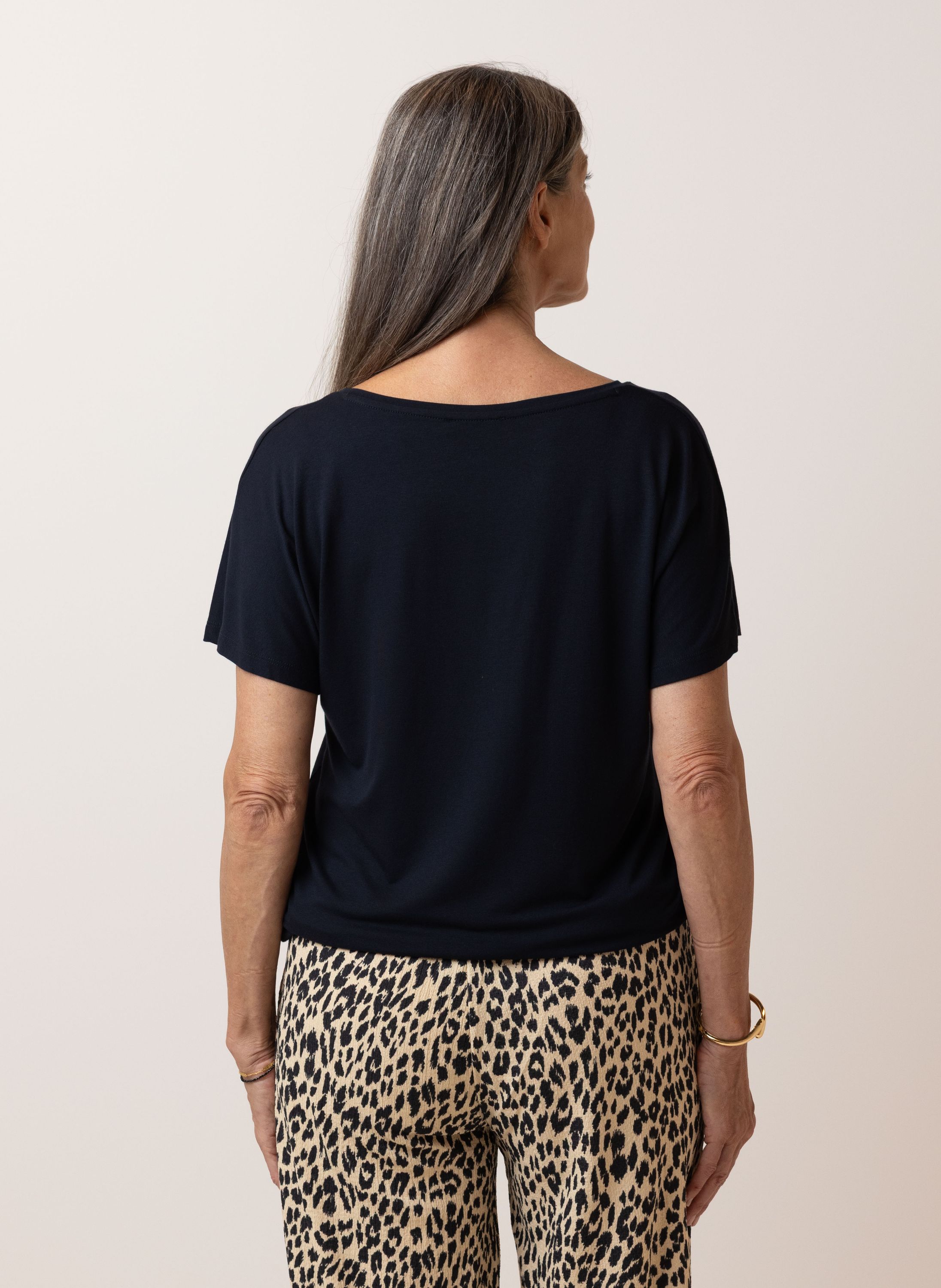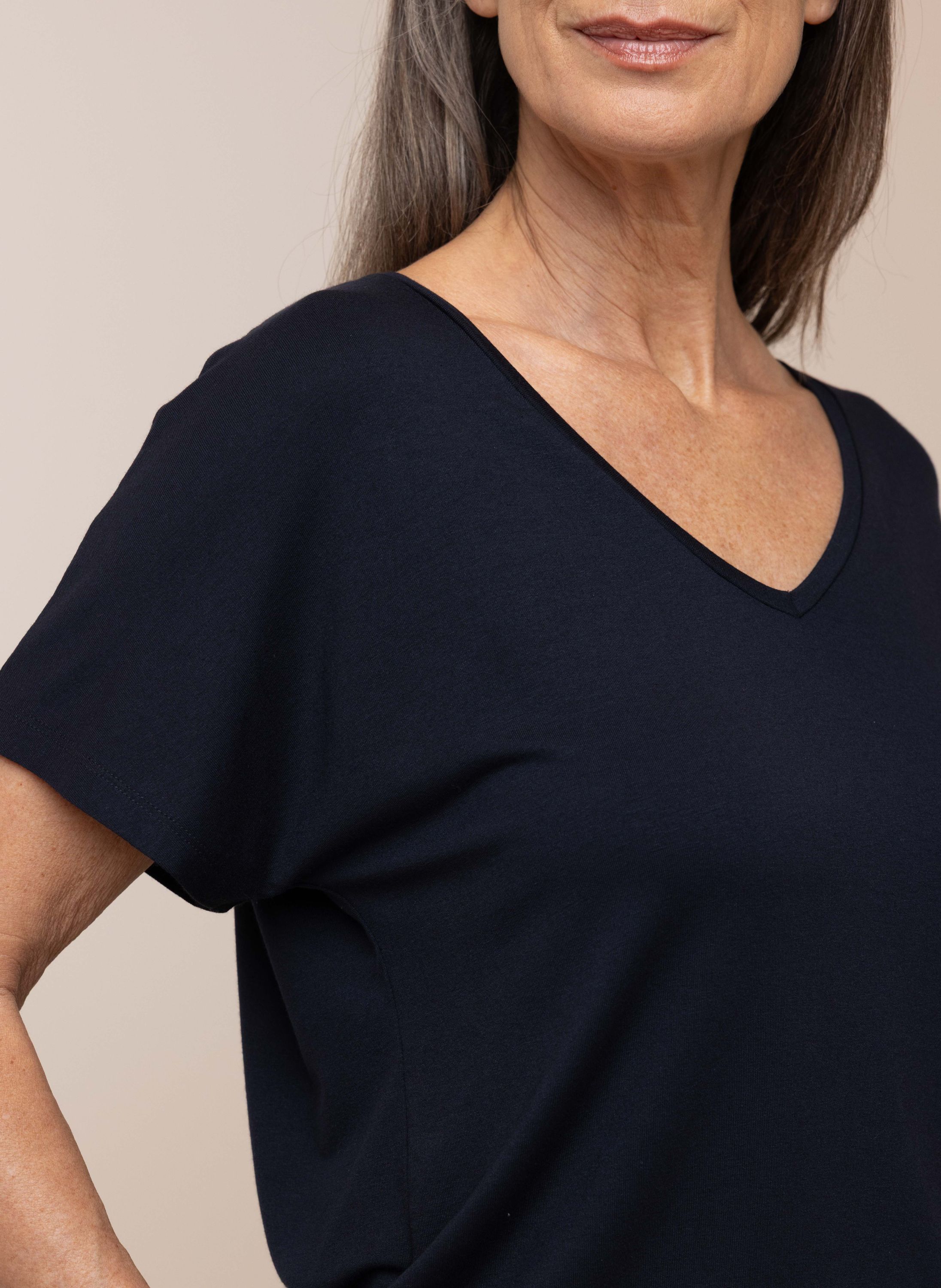 Dit shirt met V-hals heeft korte aangeknipte mouwen en is gemaakt van een comfortabele stretchstof.