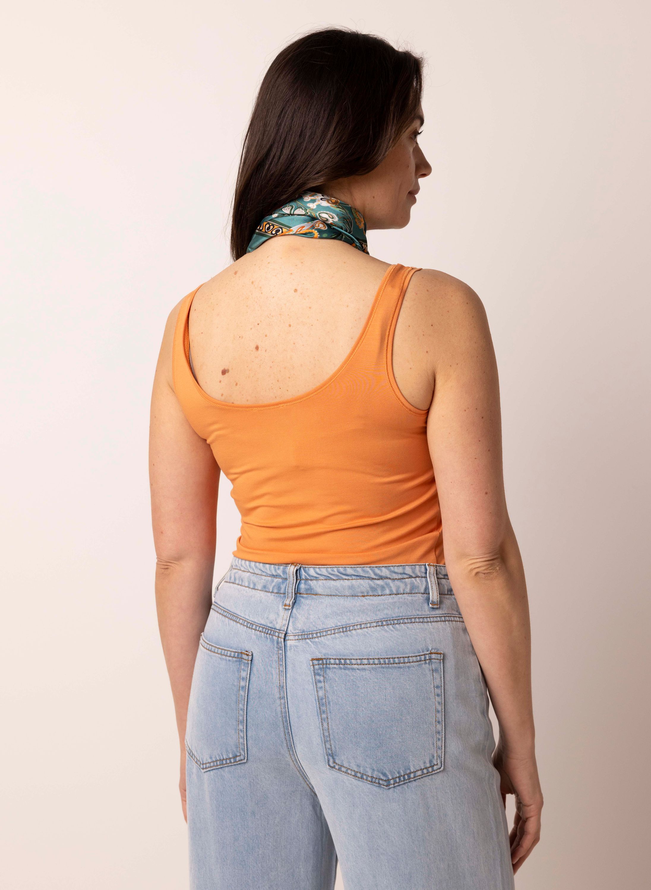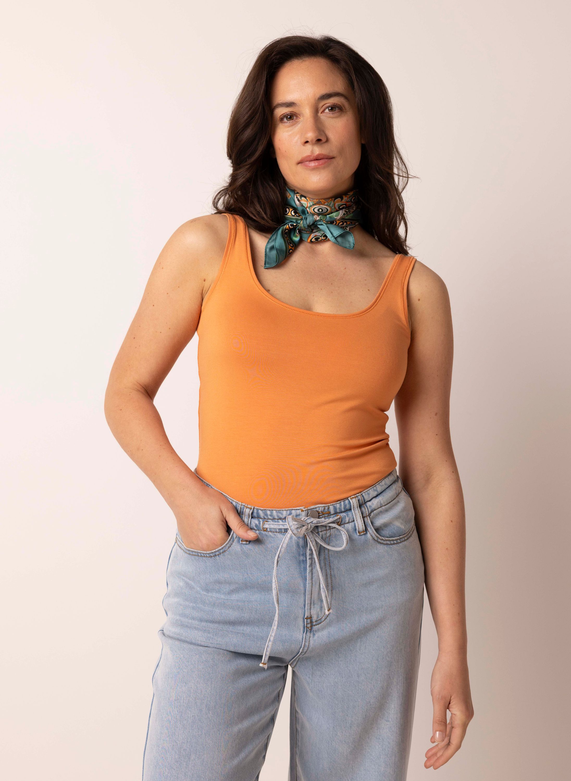 Deze basis top met veel stretch kun je zowel los dragen als onder een blouse of trui. De zachte stof en aangesloten pasvorm maken het een onmisbare basic in je garderobe.
