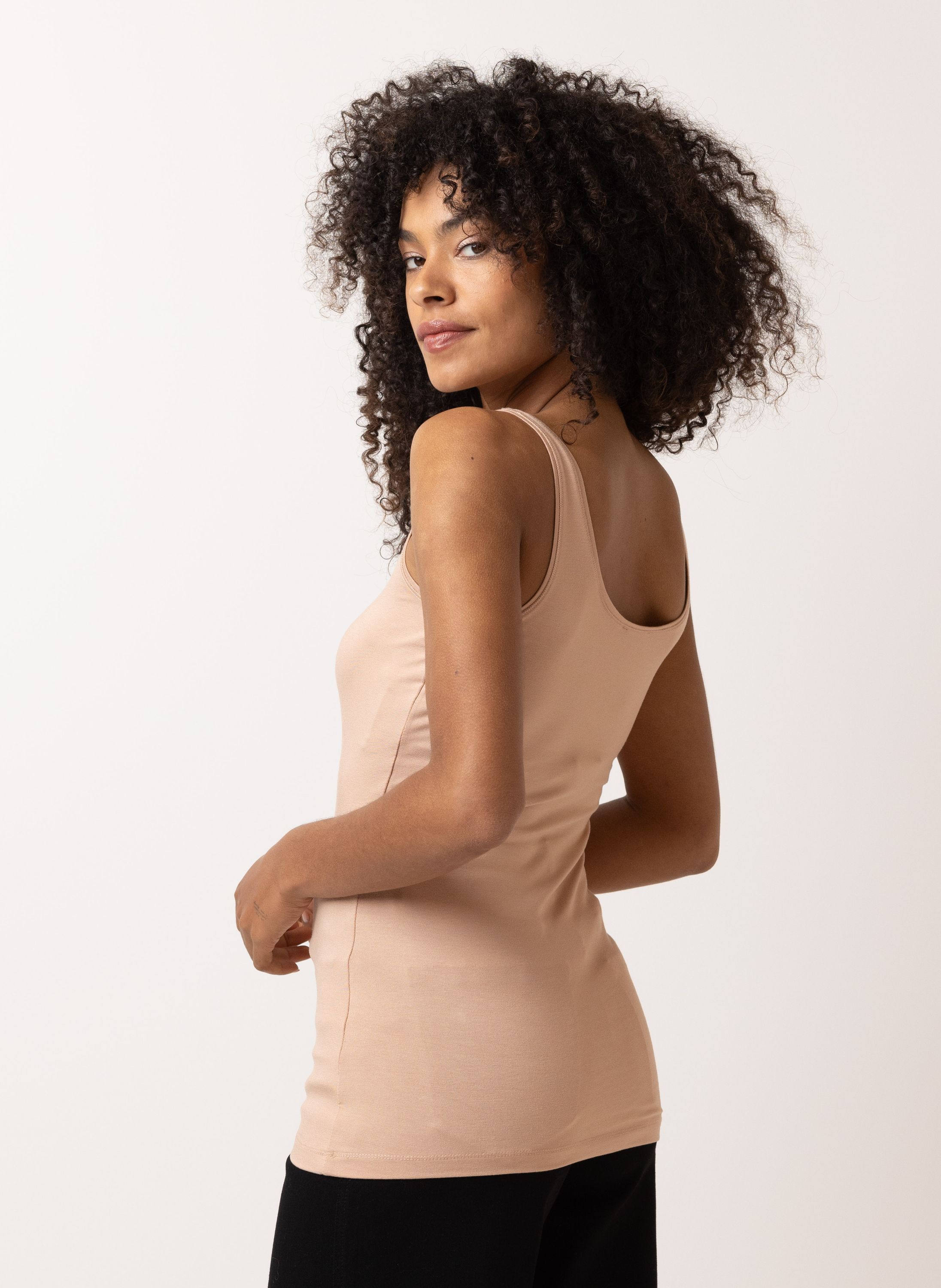 Deze basis top met veel stretch kun je zowel los dragen als onder een blouse of trui. De zachte stof en aangesloten pasvorm maken het een onmisbare basic in je garderobe.