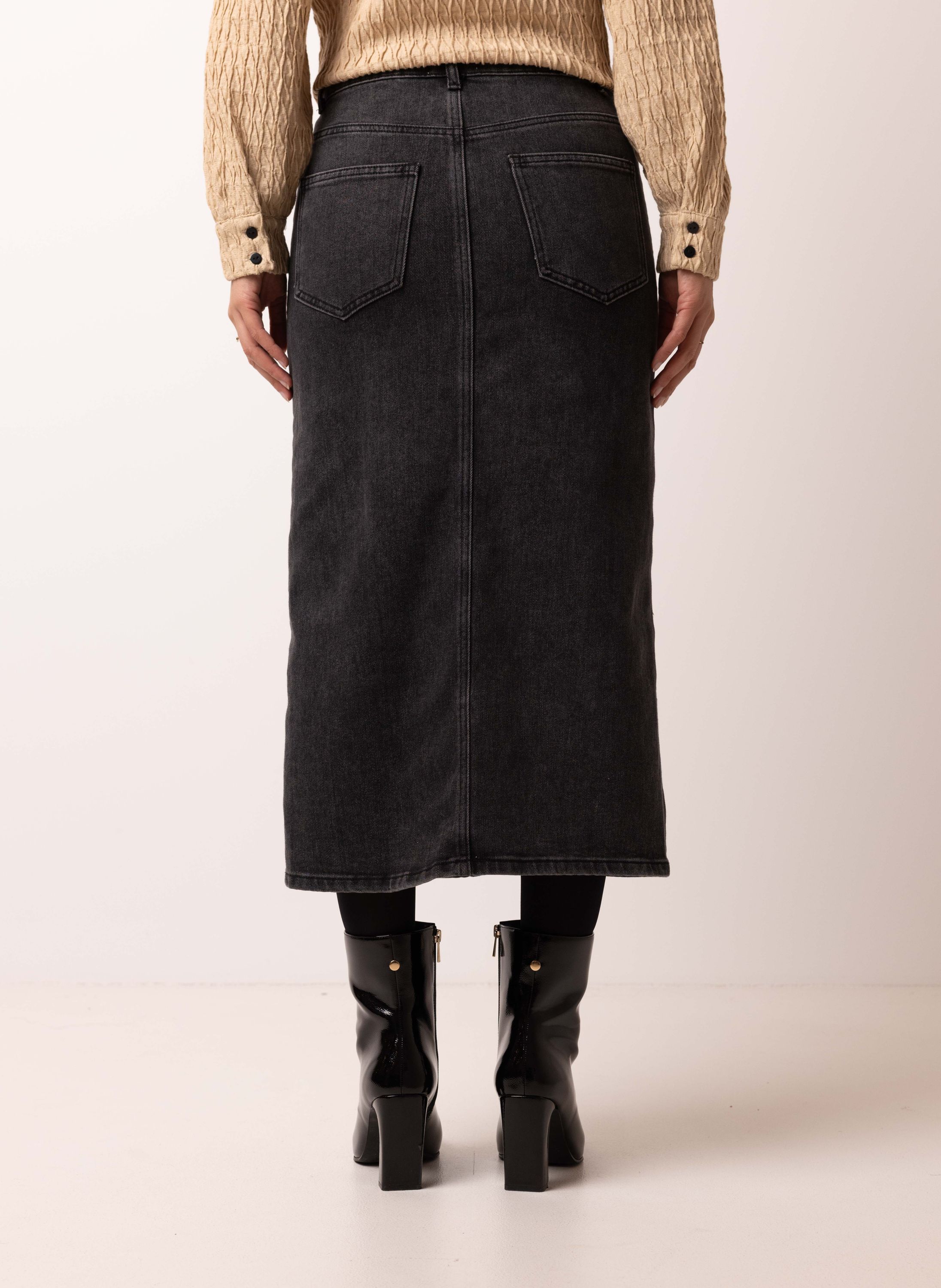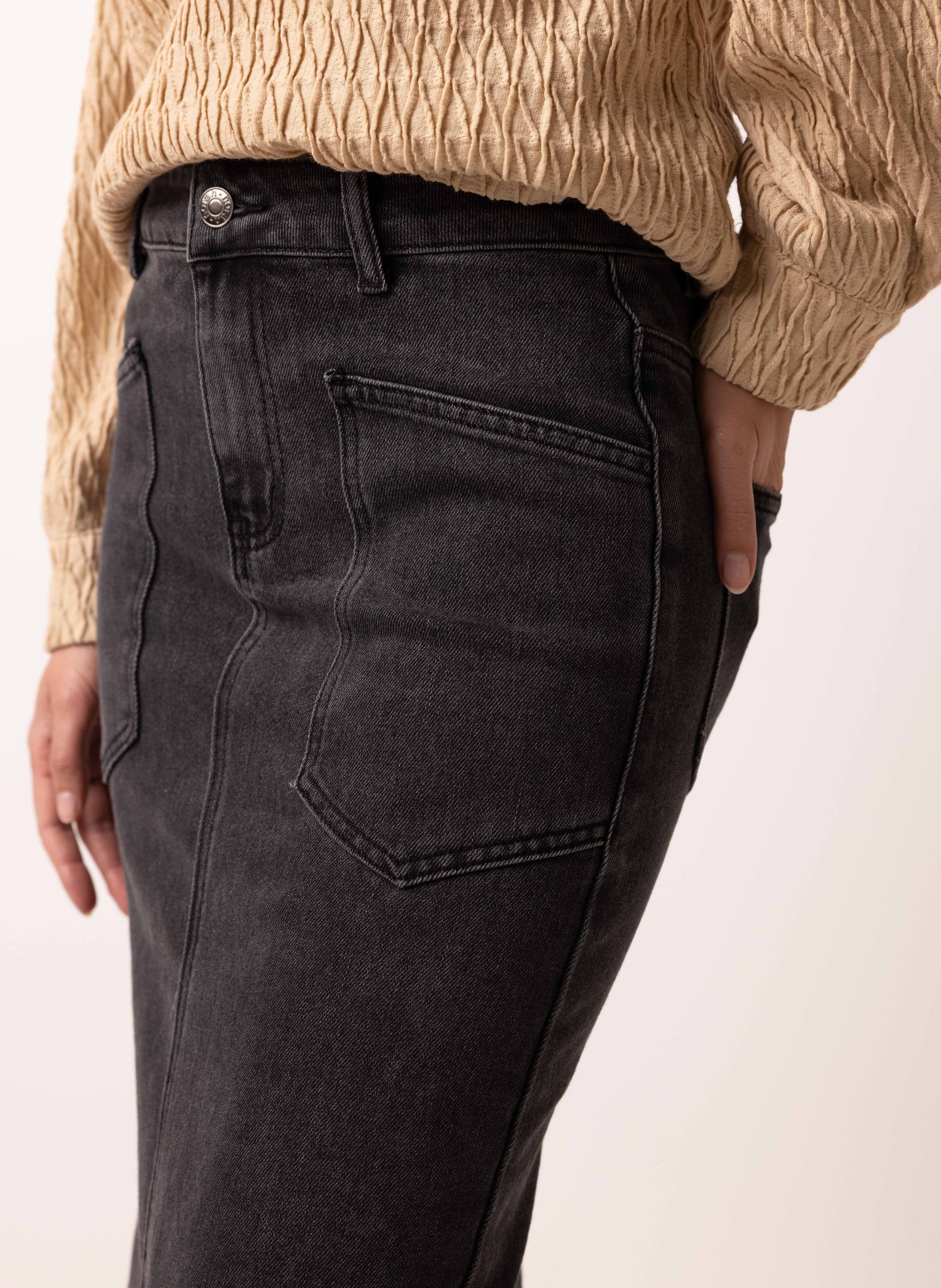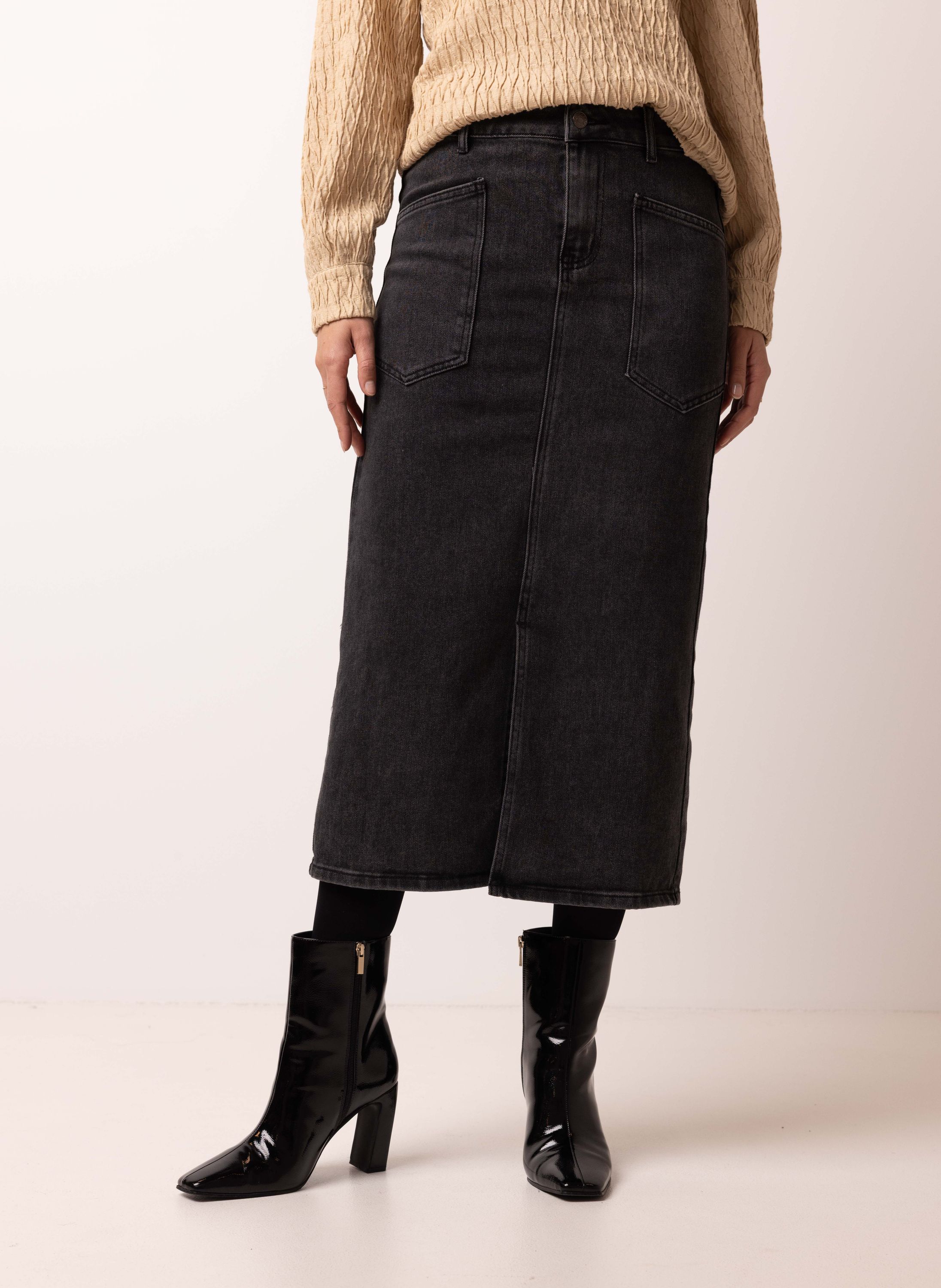 Deze midi rok met rits- en knoopsluiting heeft open zakken en een split aan de voorzijde voor een vrouwelijke touch.