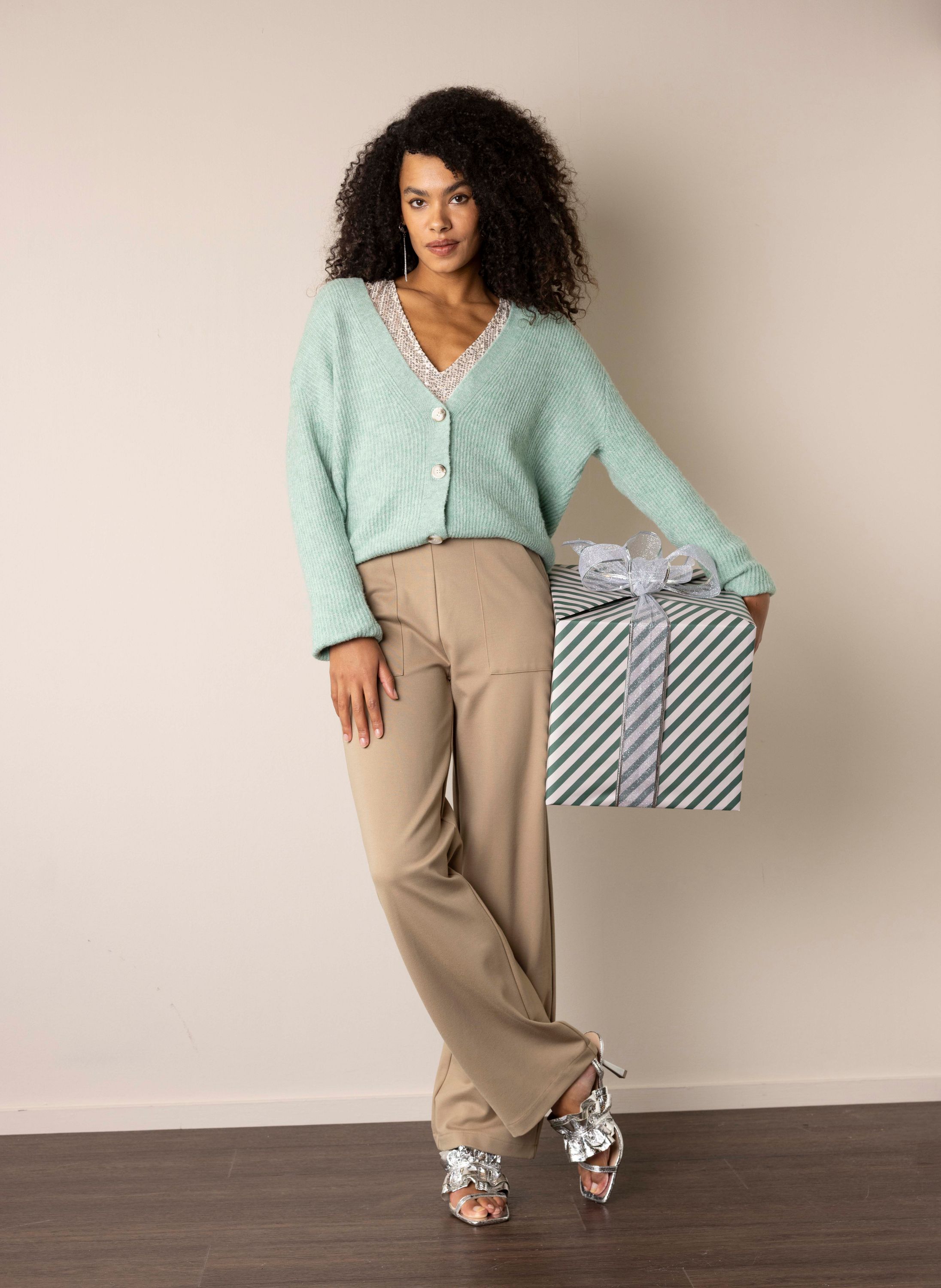 Mintgroen vest met V-hals