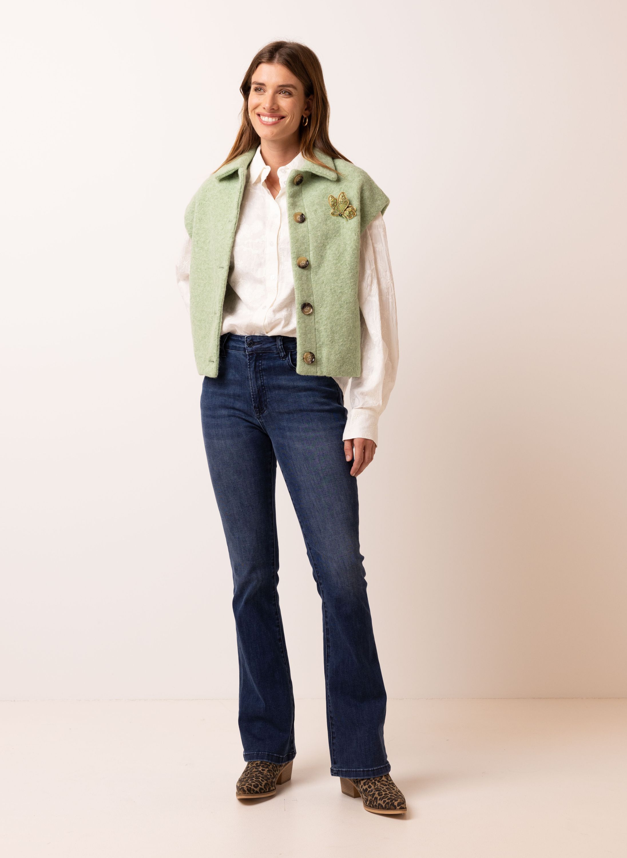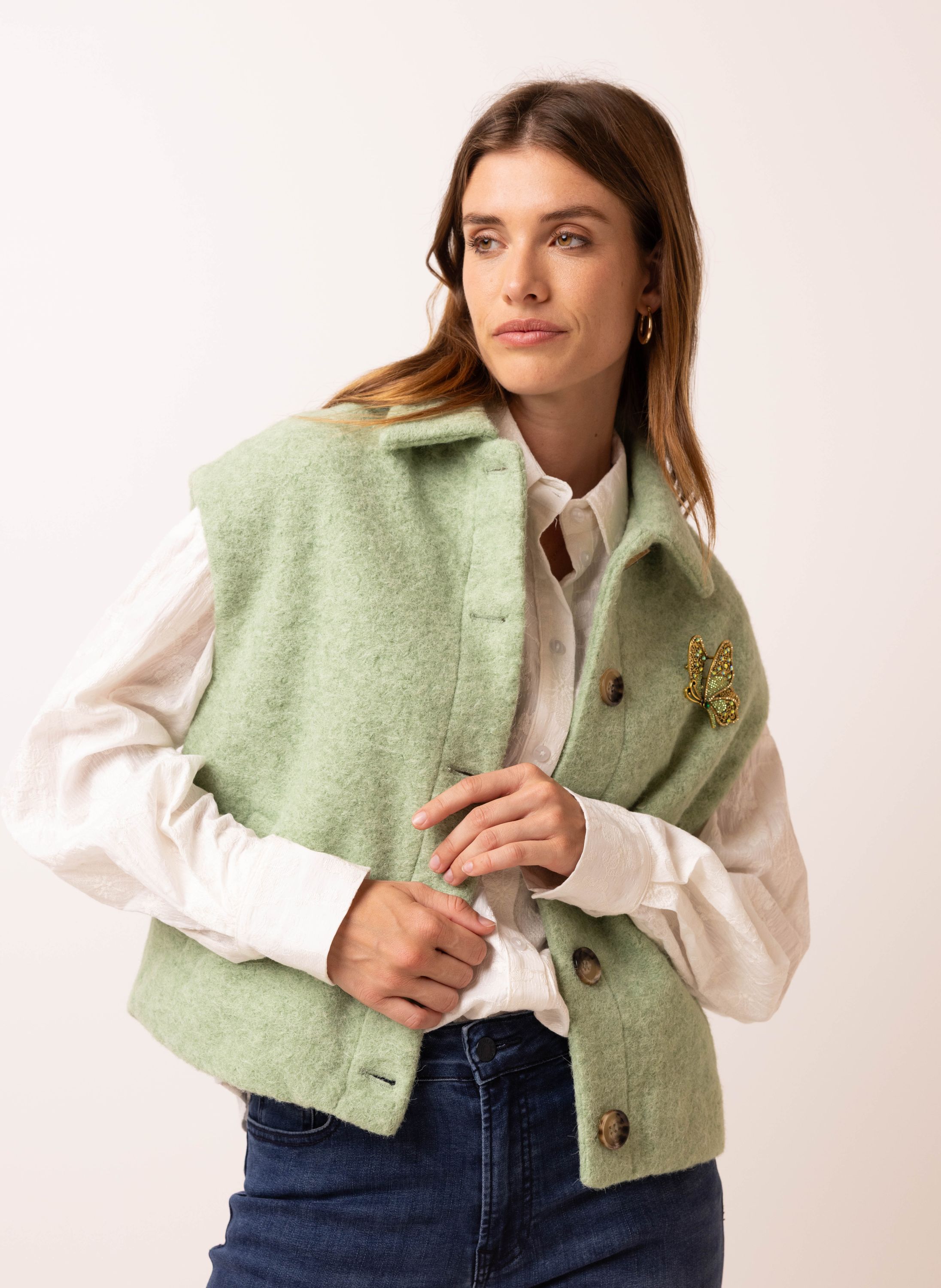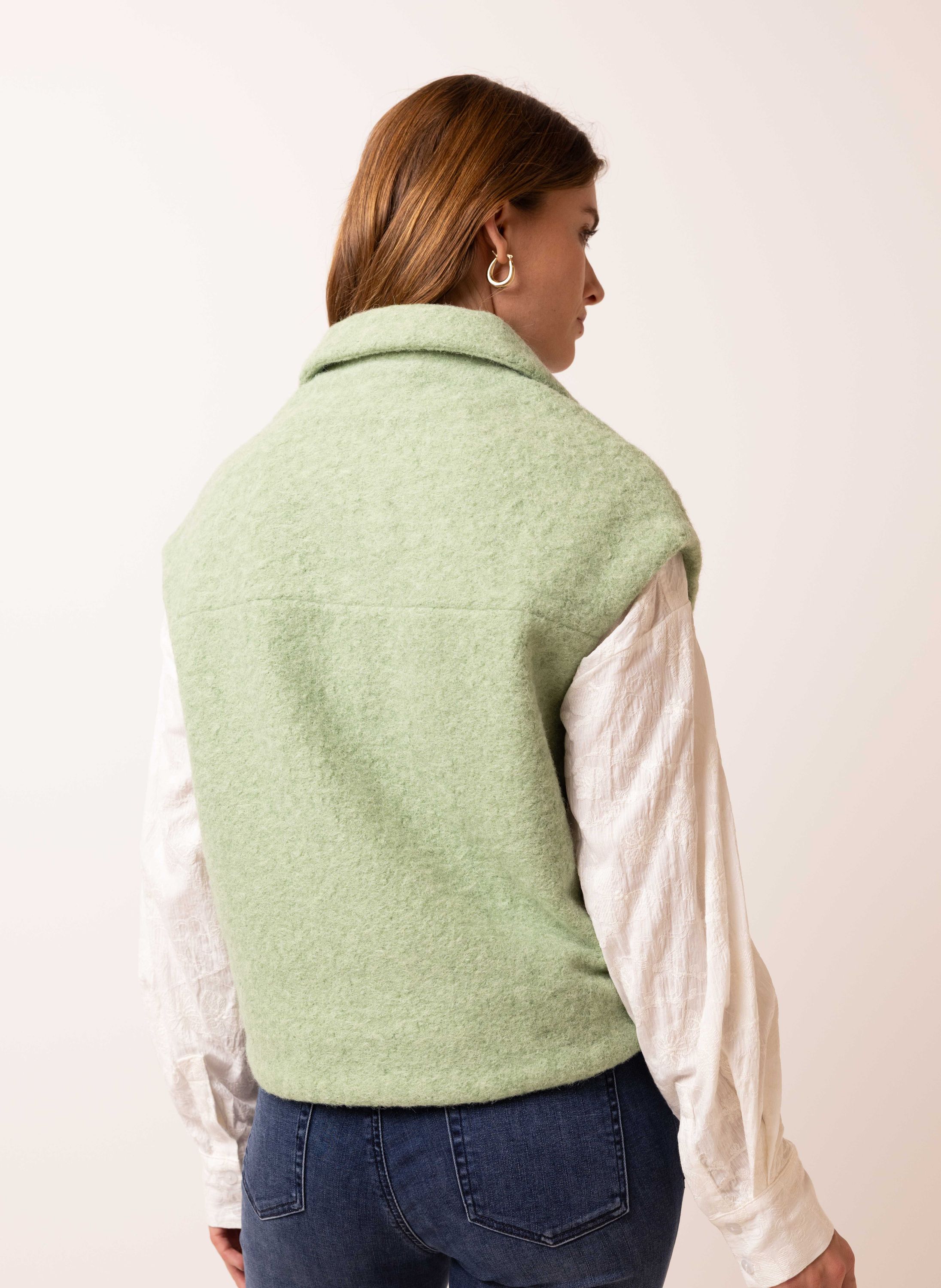 Mintkleurig gilet met wollook