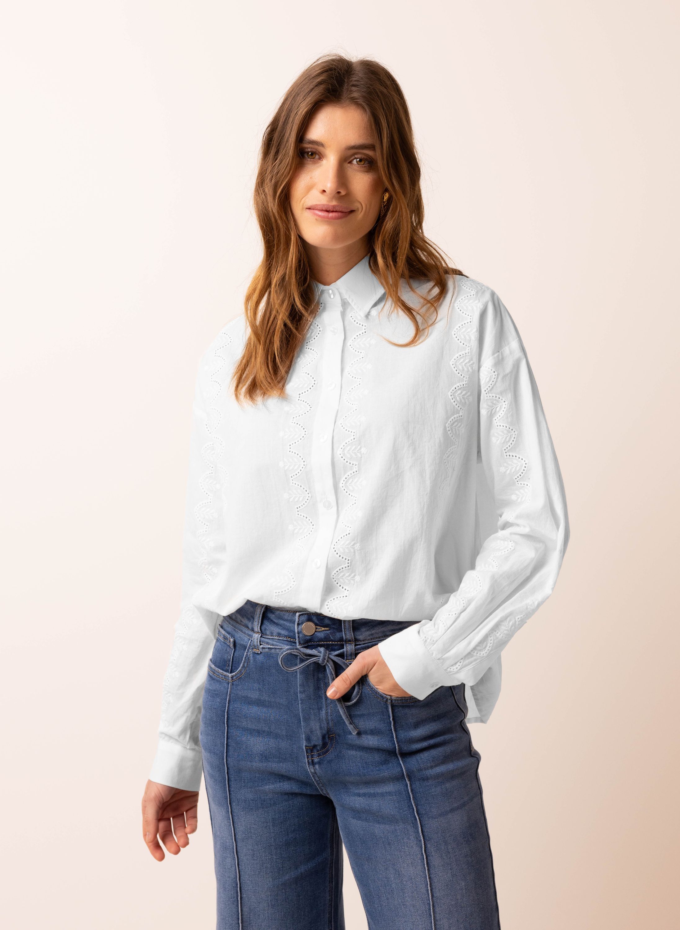 Off-white blouse met borduursels