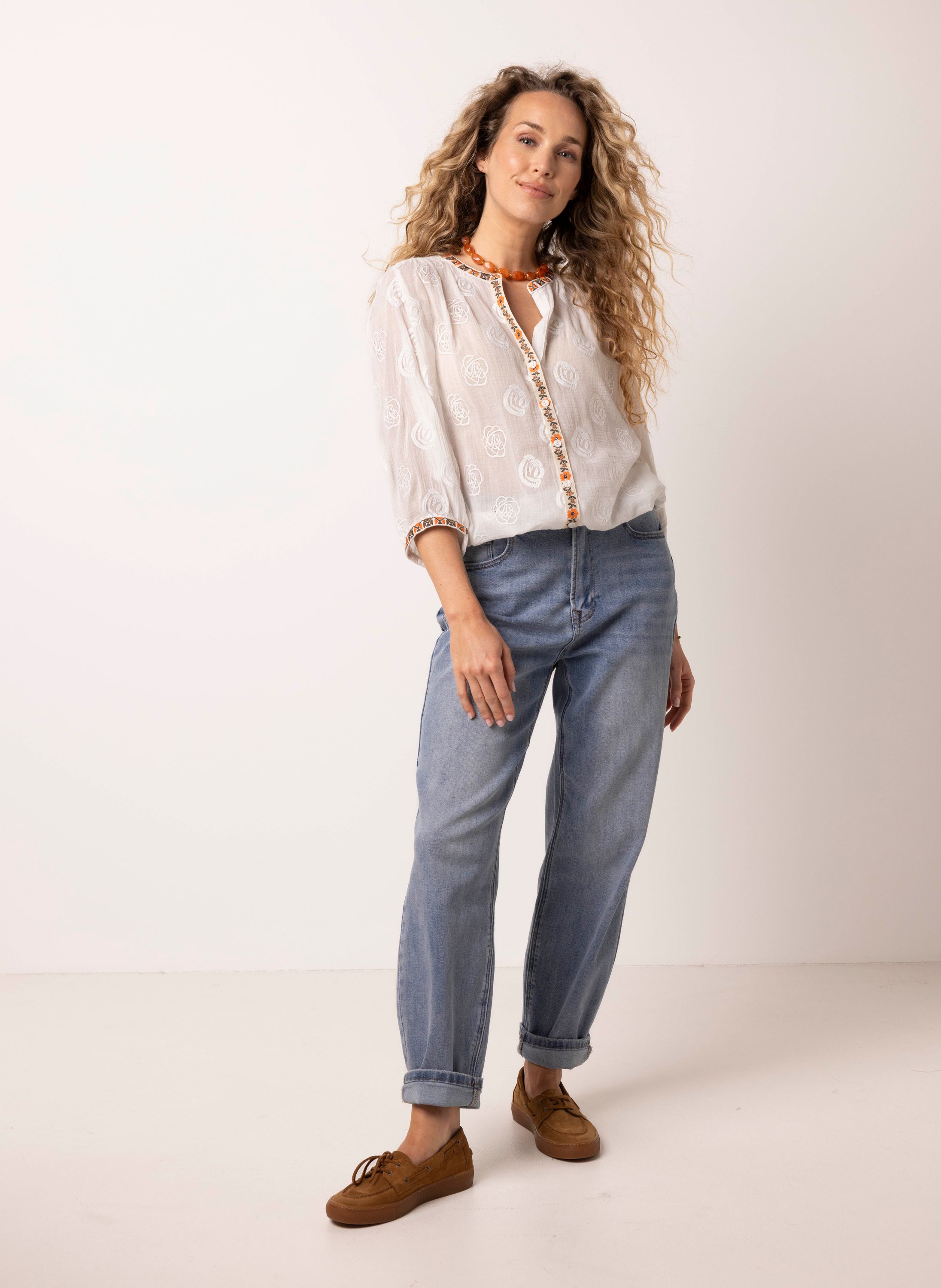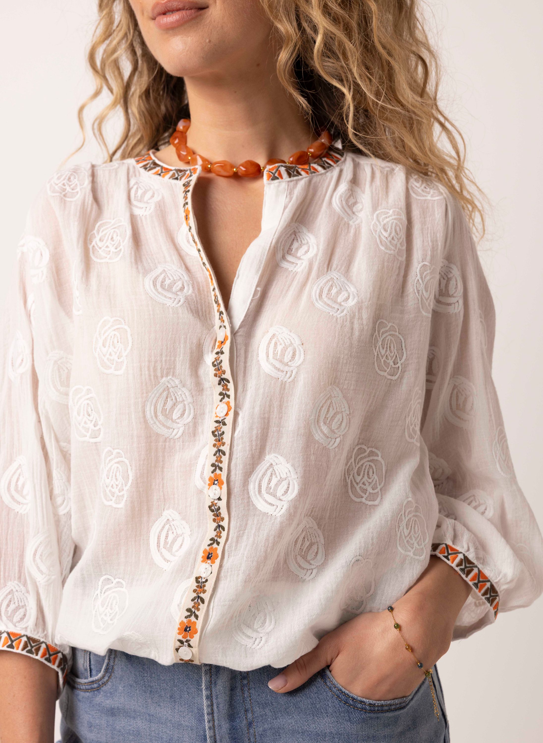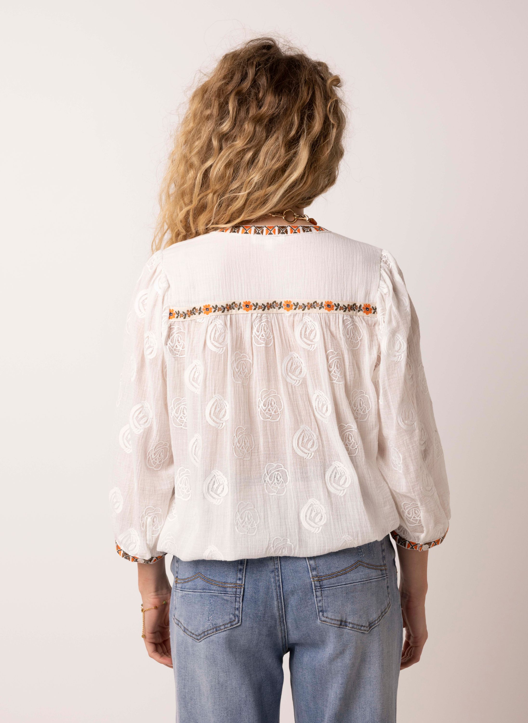 Off-white blouse met borduursels