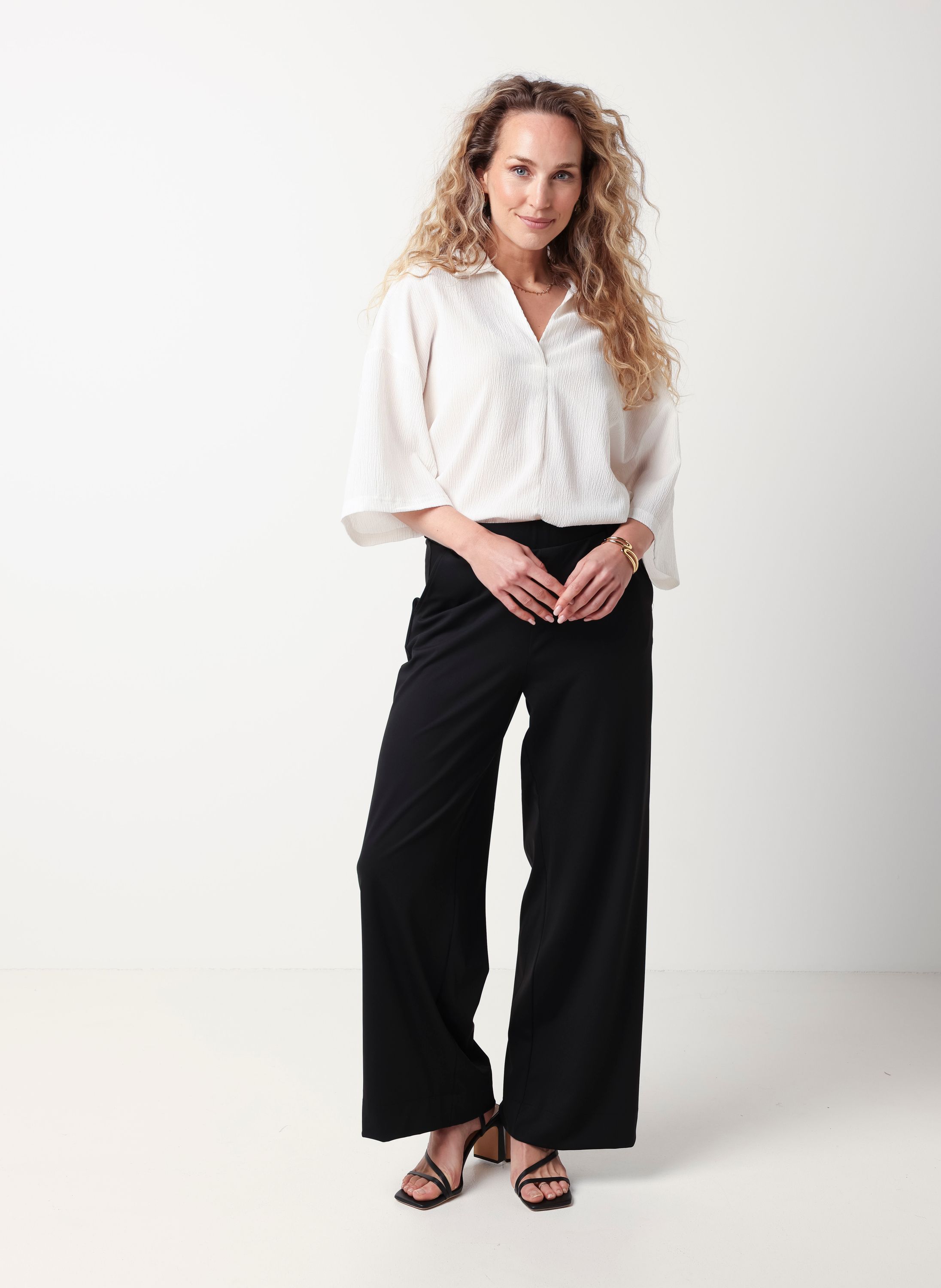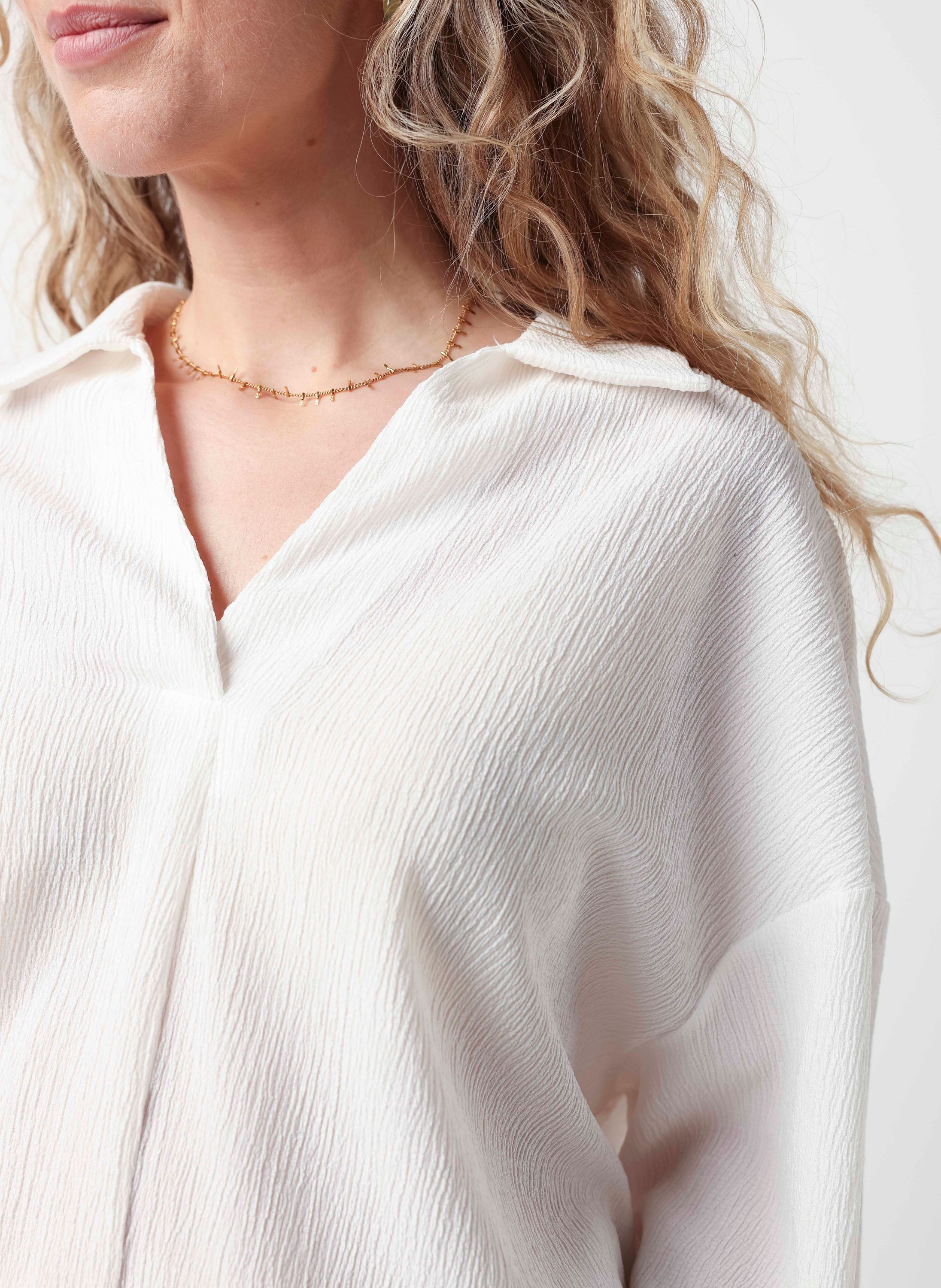 Off-white blouse met klassieke kraag