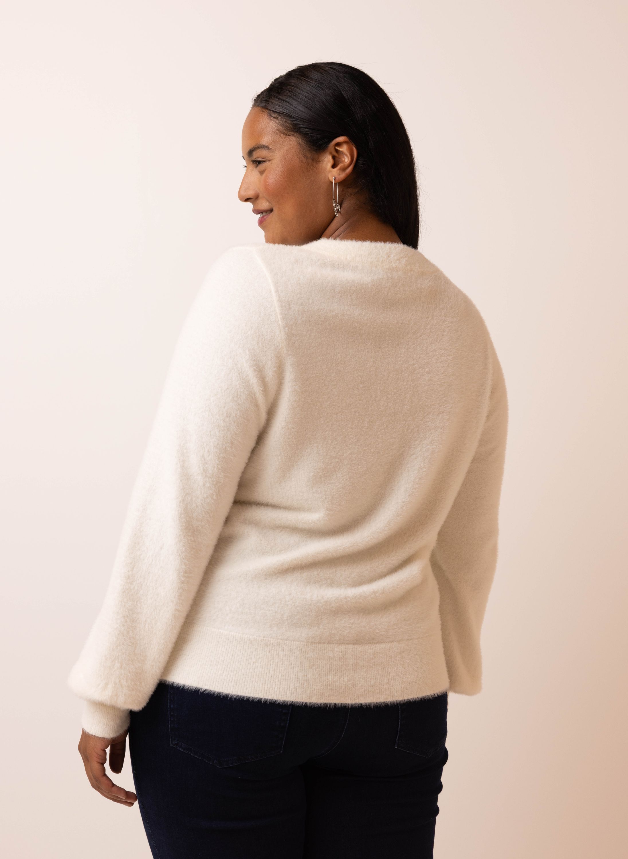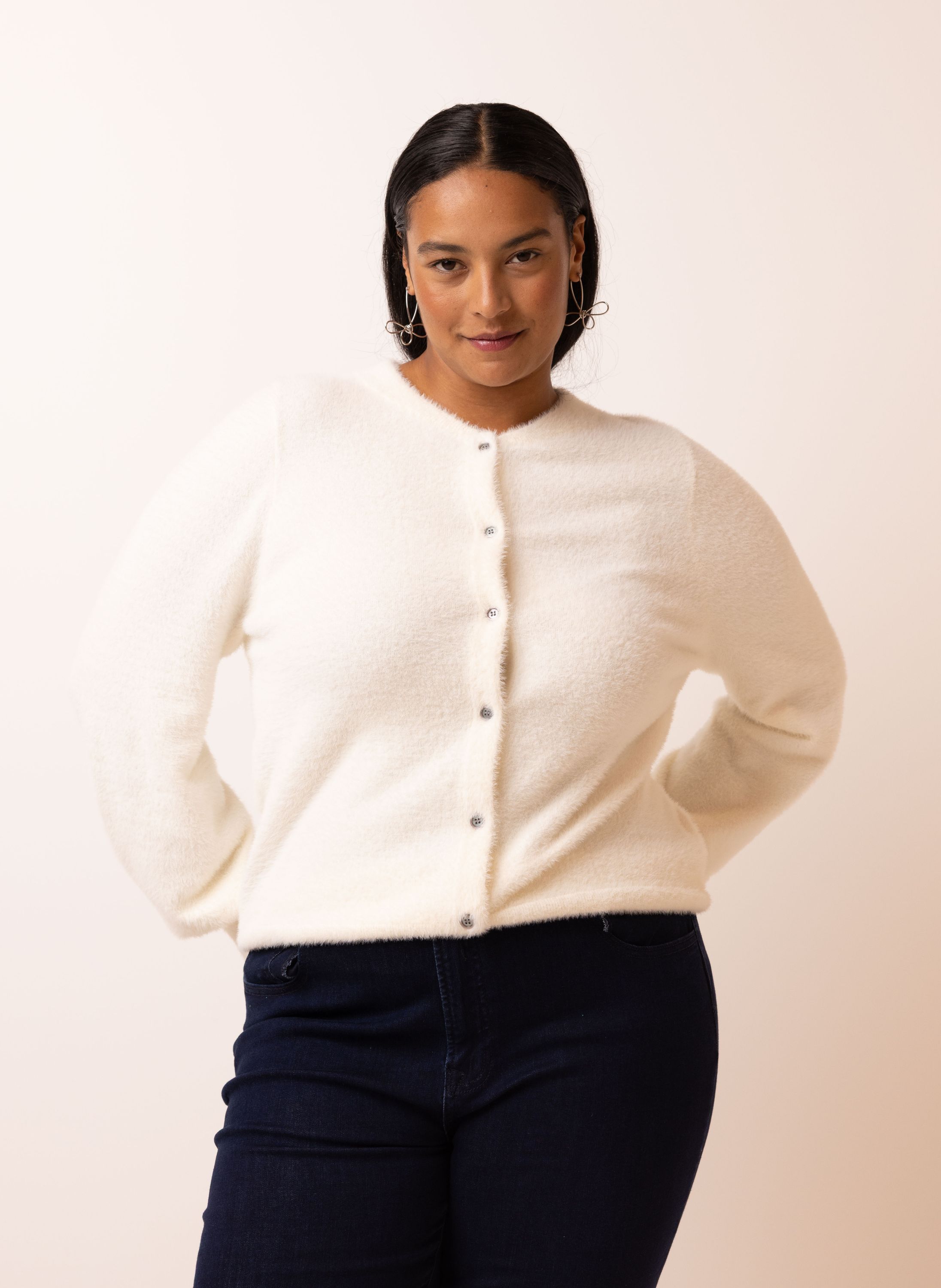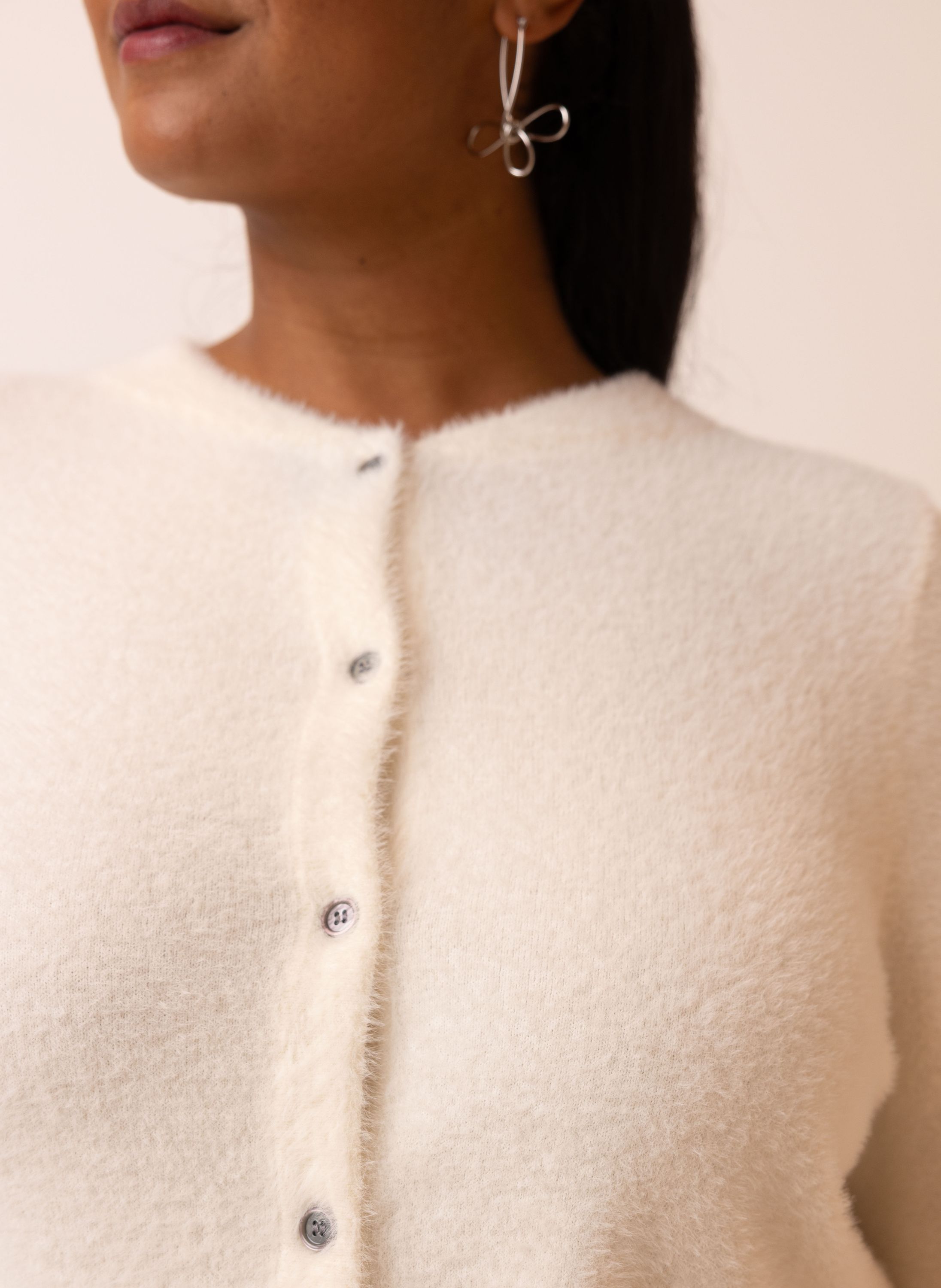 Dit gebreide vest met ronde hals, knoopsluiting en lange mouwen is gemaakt van een zachte stof.