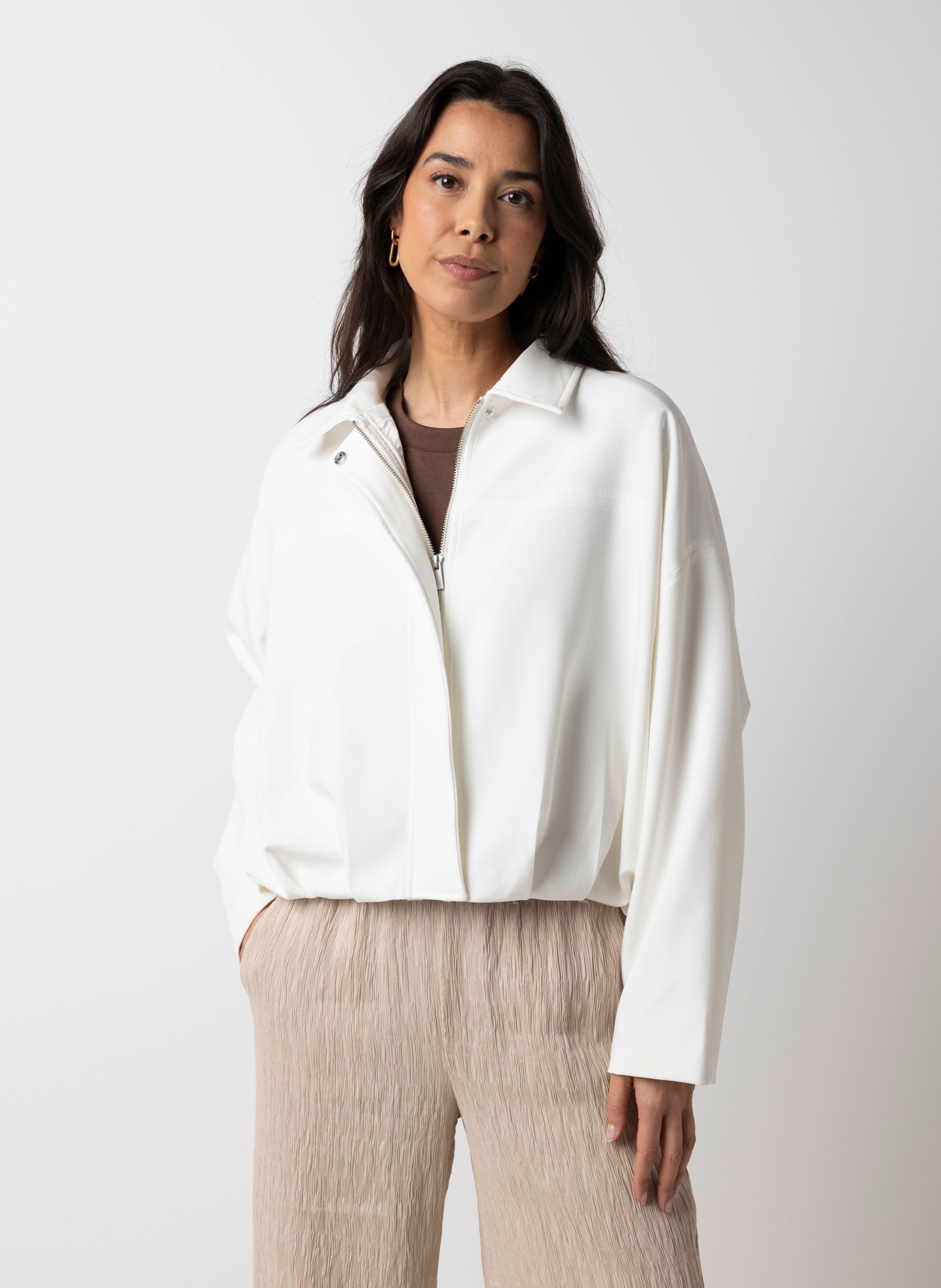 Dit jasje met klassieke kraag, blinde ritssluiting en lange mouwen heeft een tijdloze uitstraling.