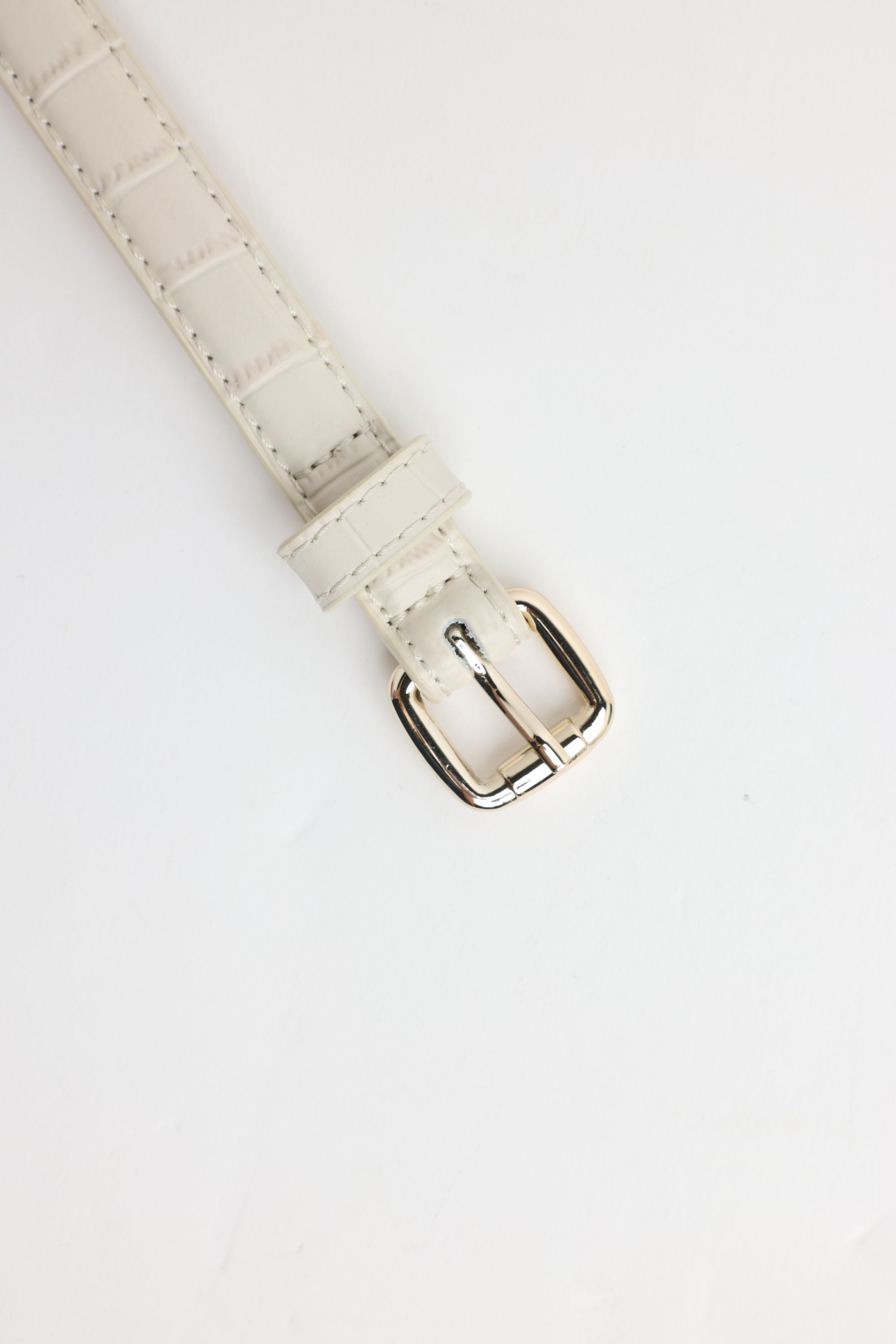 Deze riem met goudkleurige gespsluiting is een stijlvolle toevoeging aan je outfit. Afmeting: S: 80 cm, M: 90 cm, L: 100 cm, XL: 110 cm.