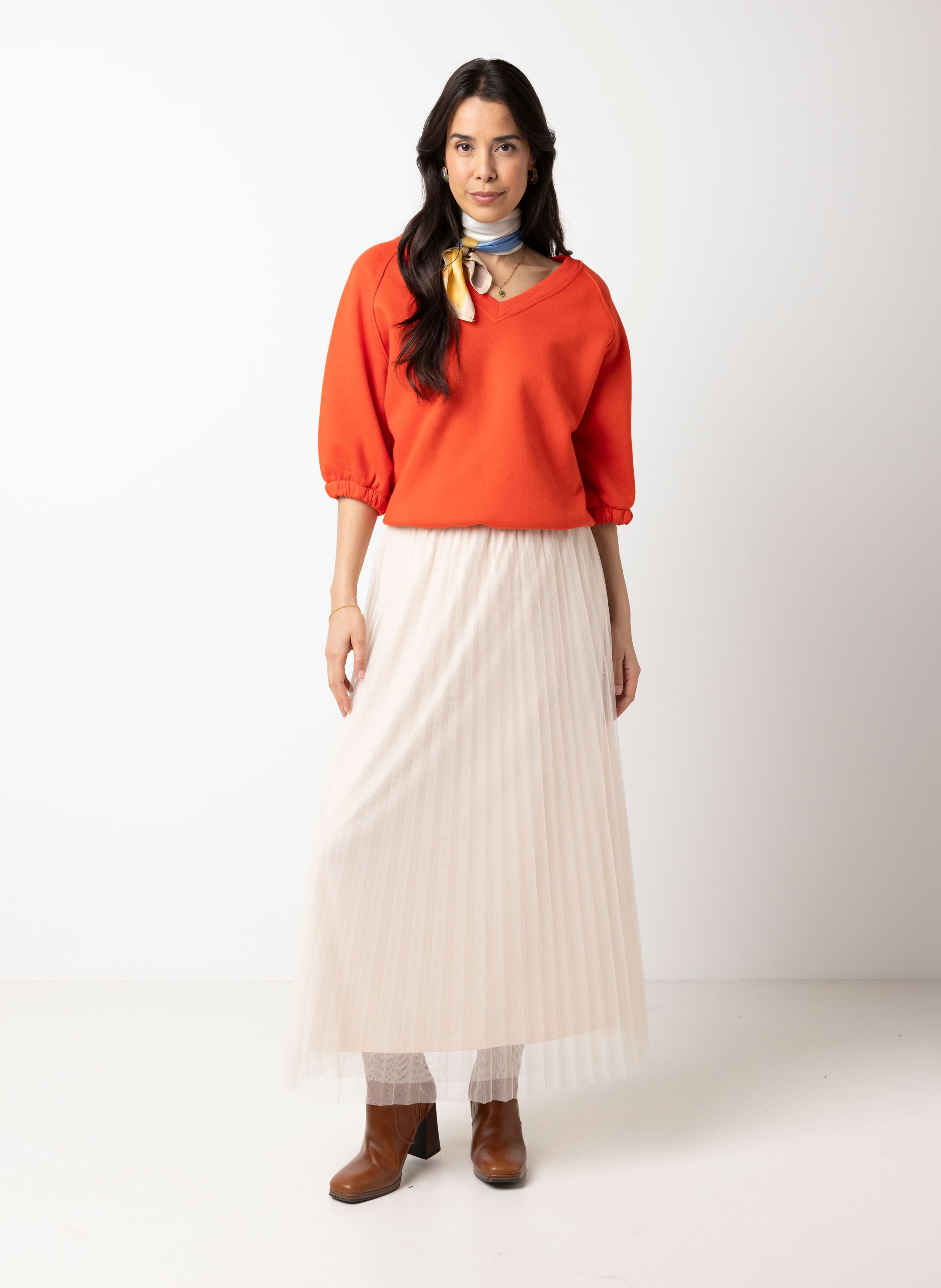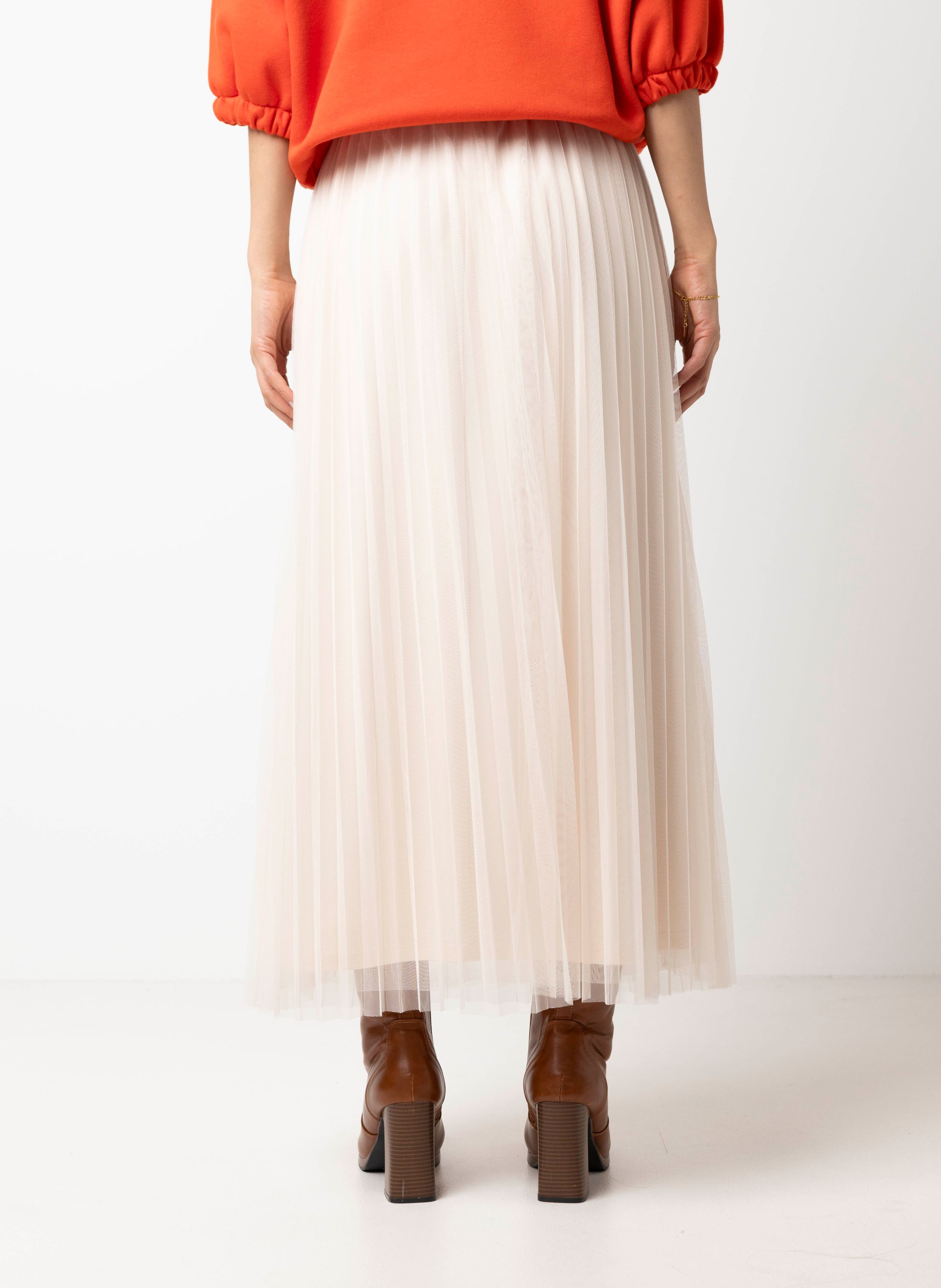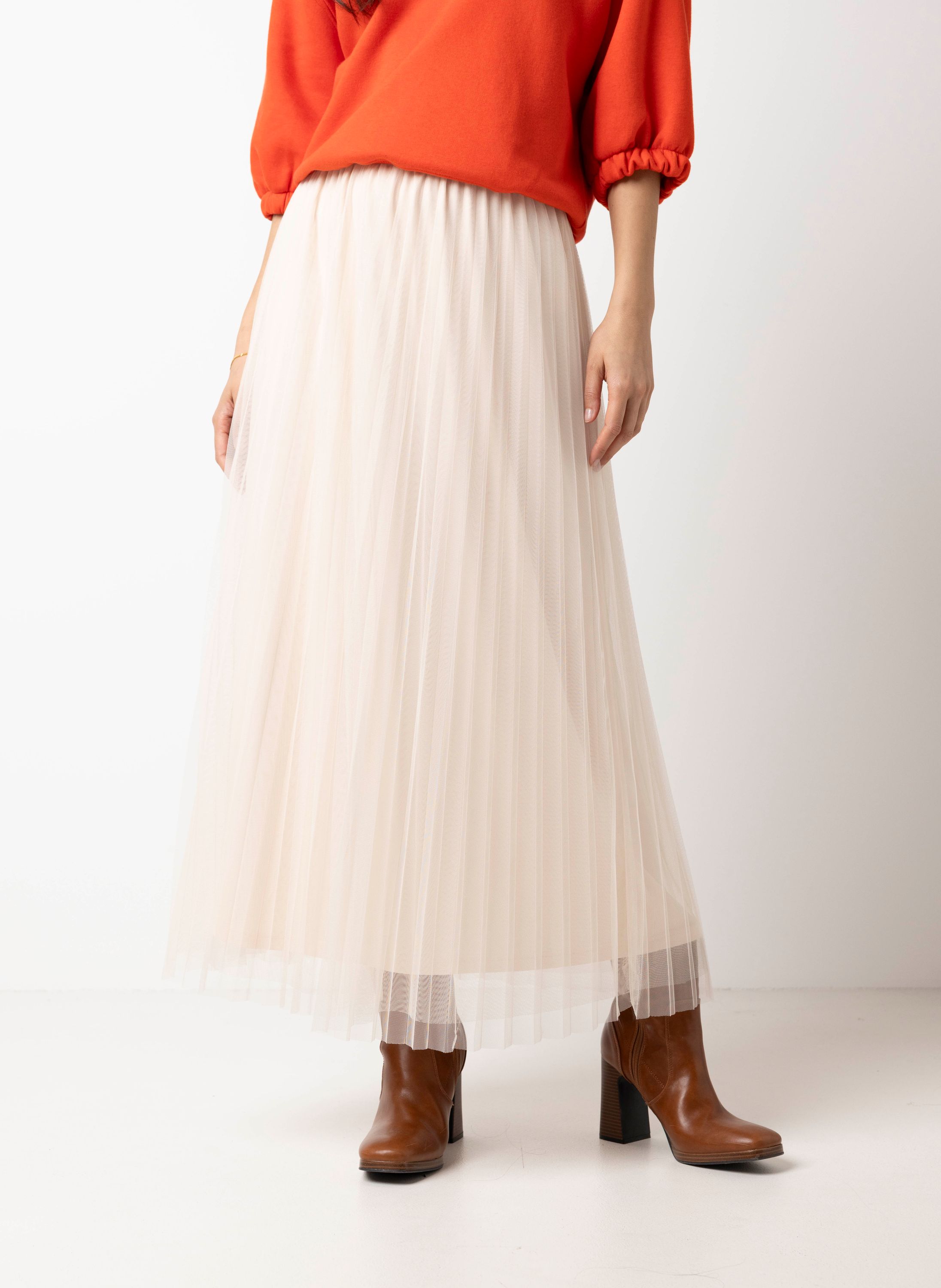 Deze midi tule rok met elastische tailleband heeft een elegante en soepelvallende look.