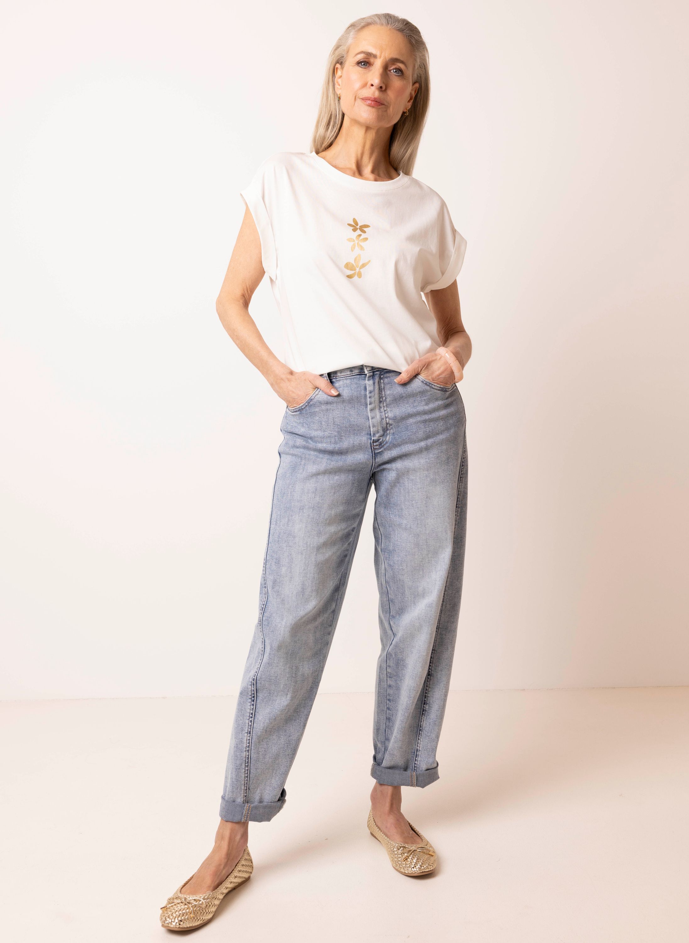 Off-white shirt met bloemen