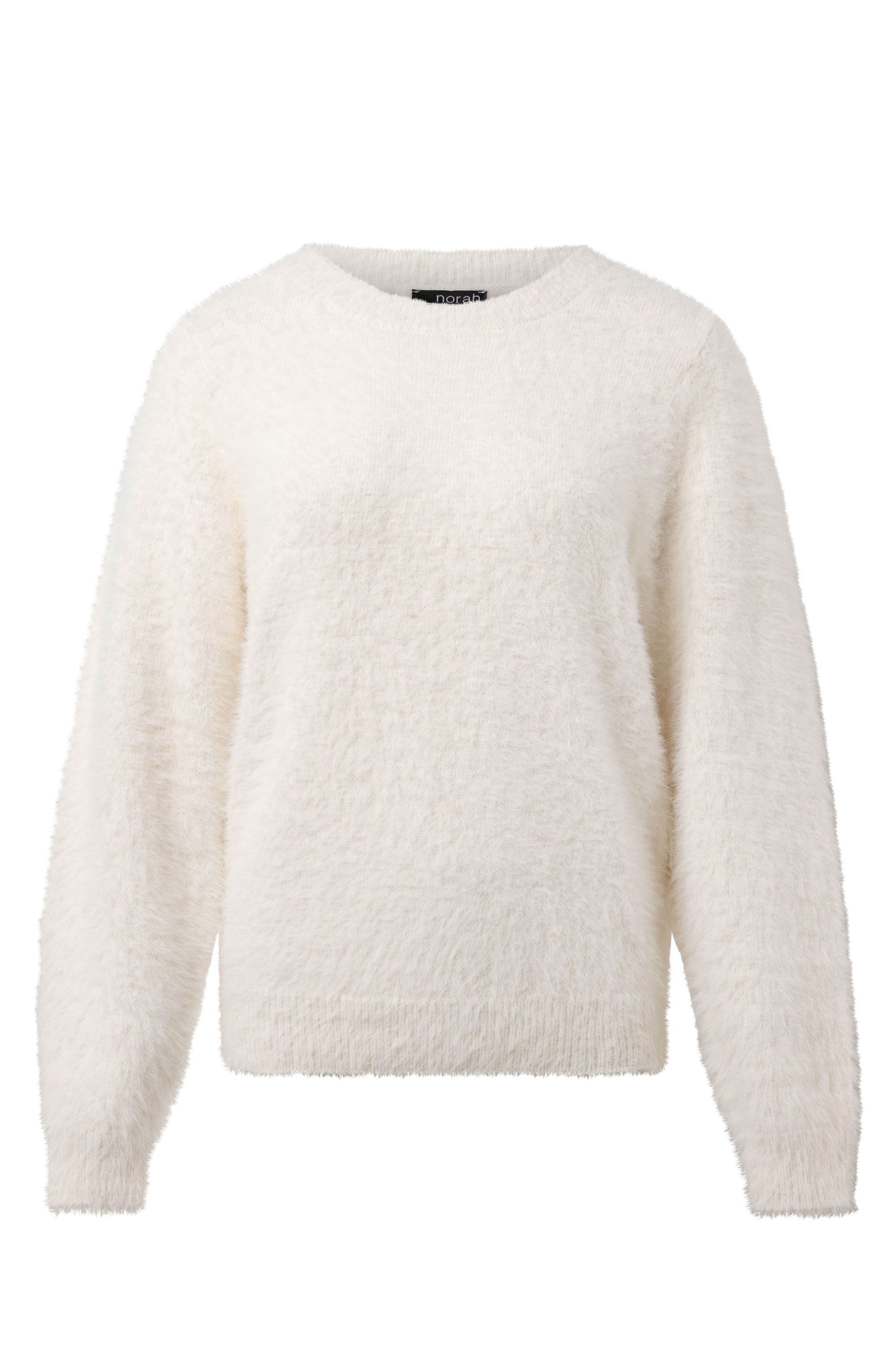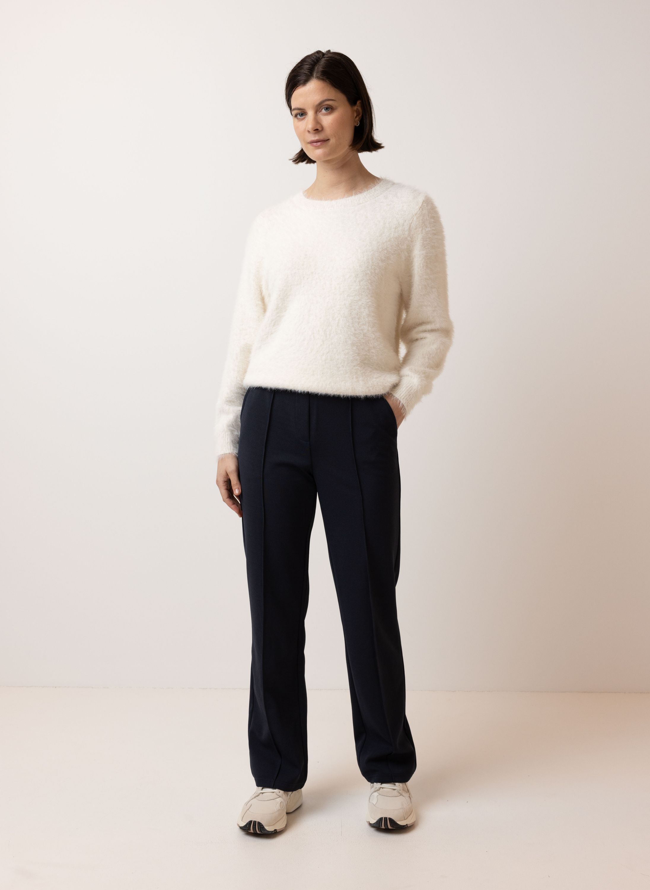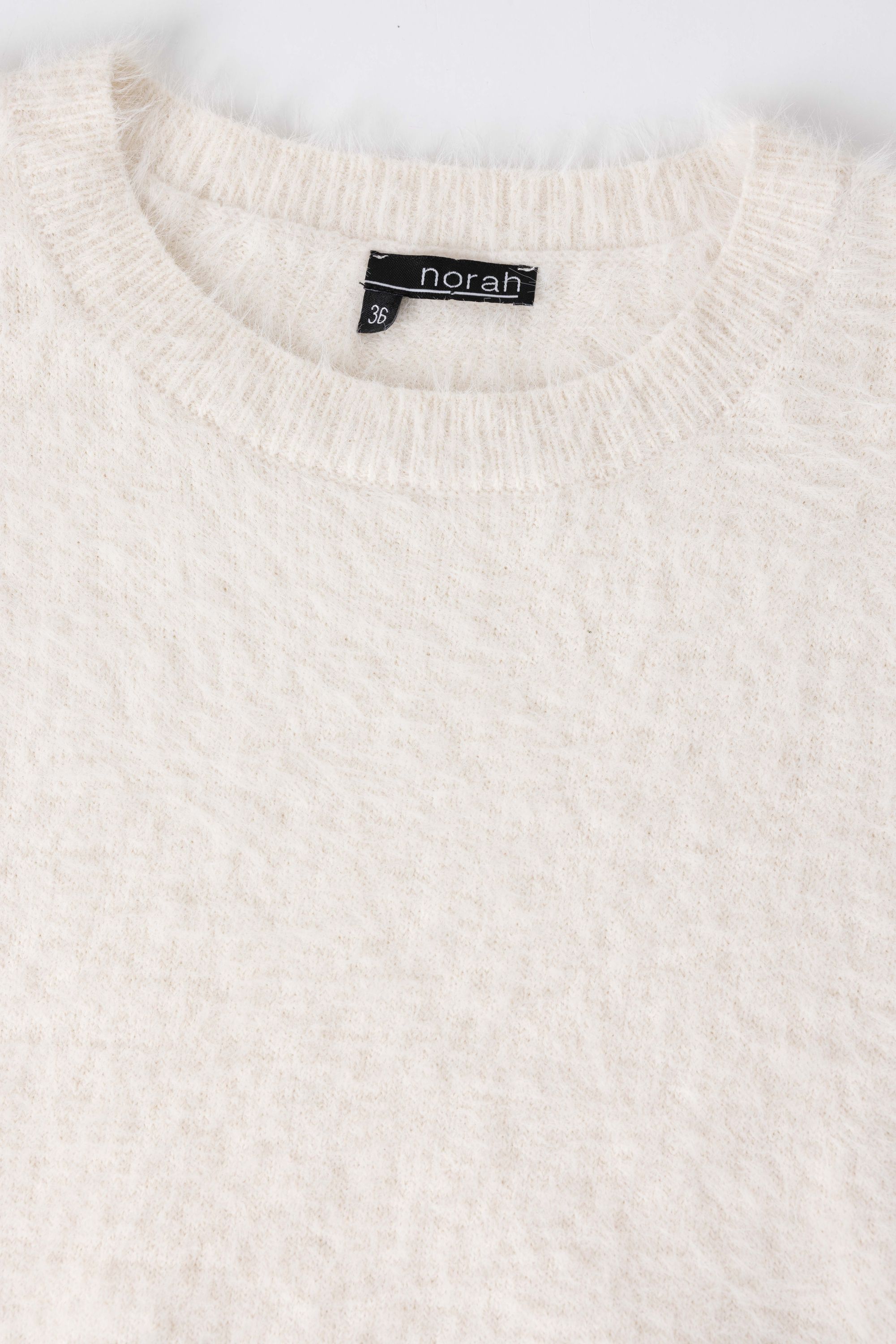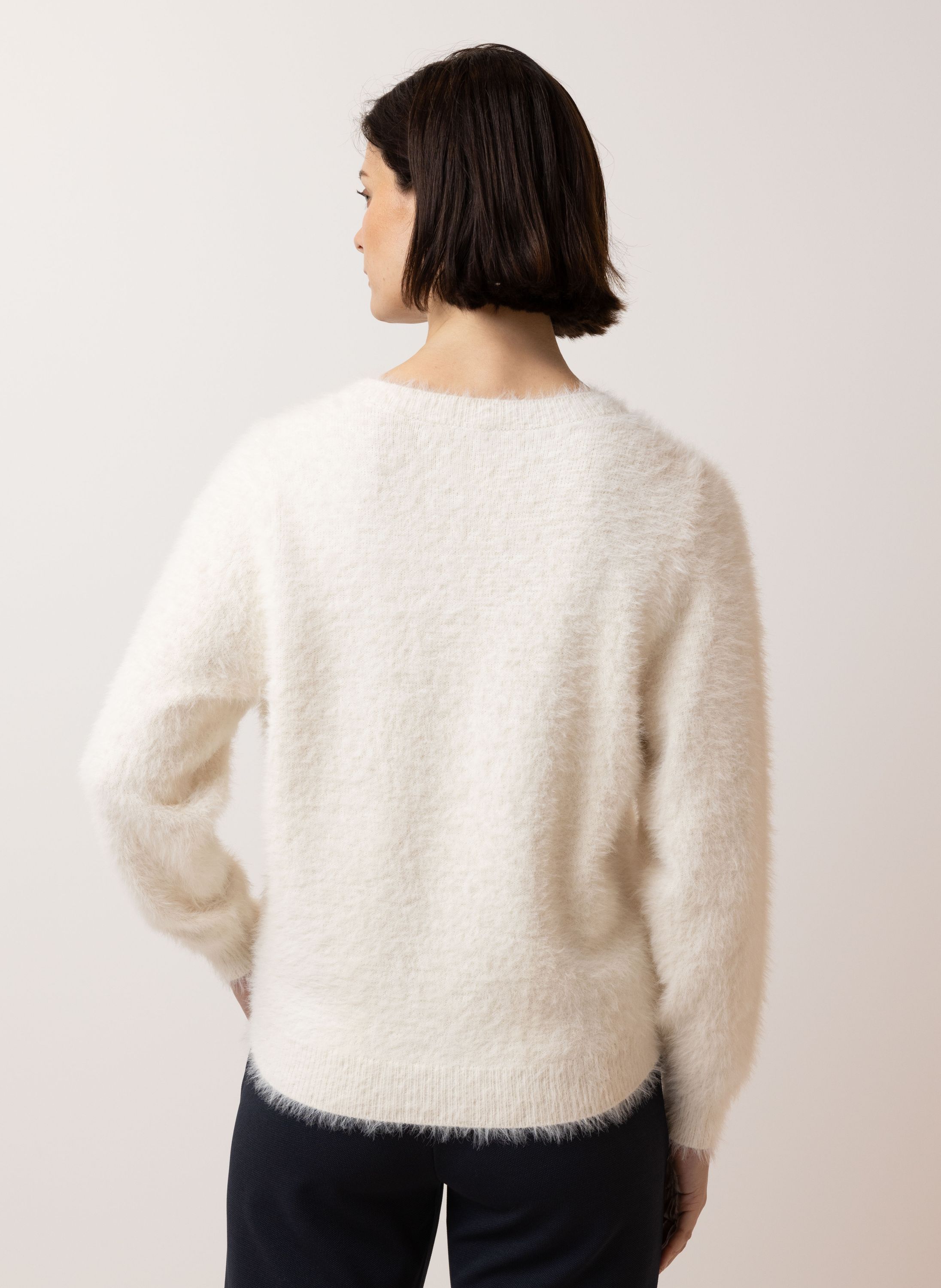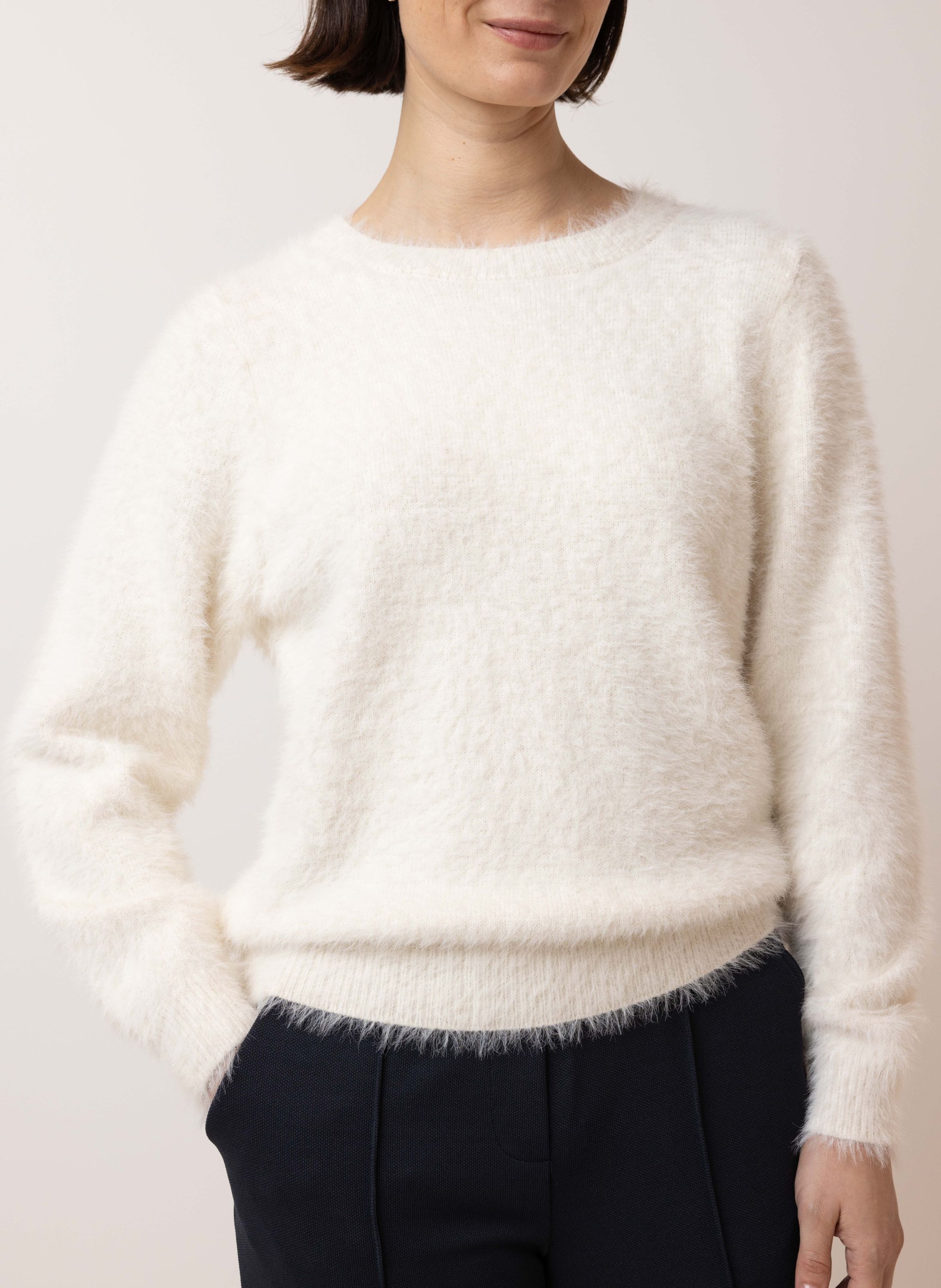 Harige fijngebreide trui met ronde halslijn en lange mouwen.