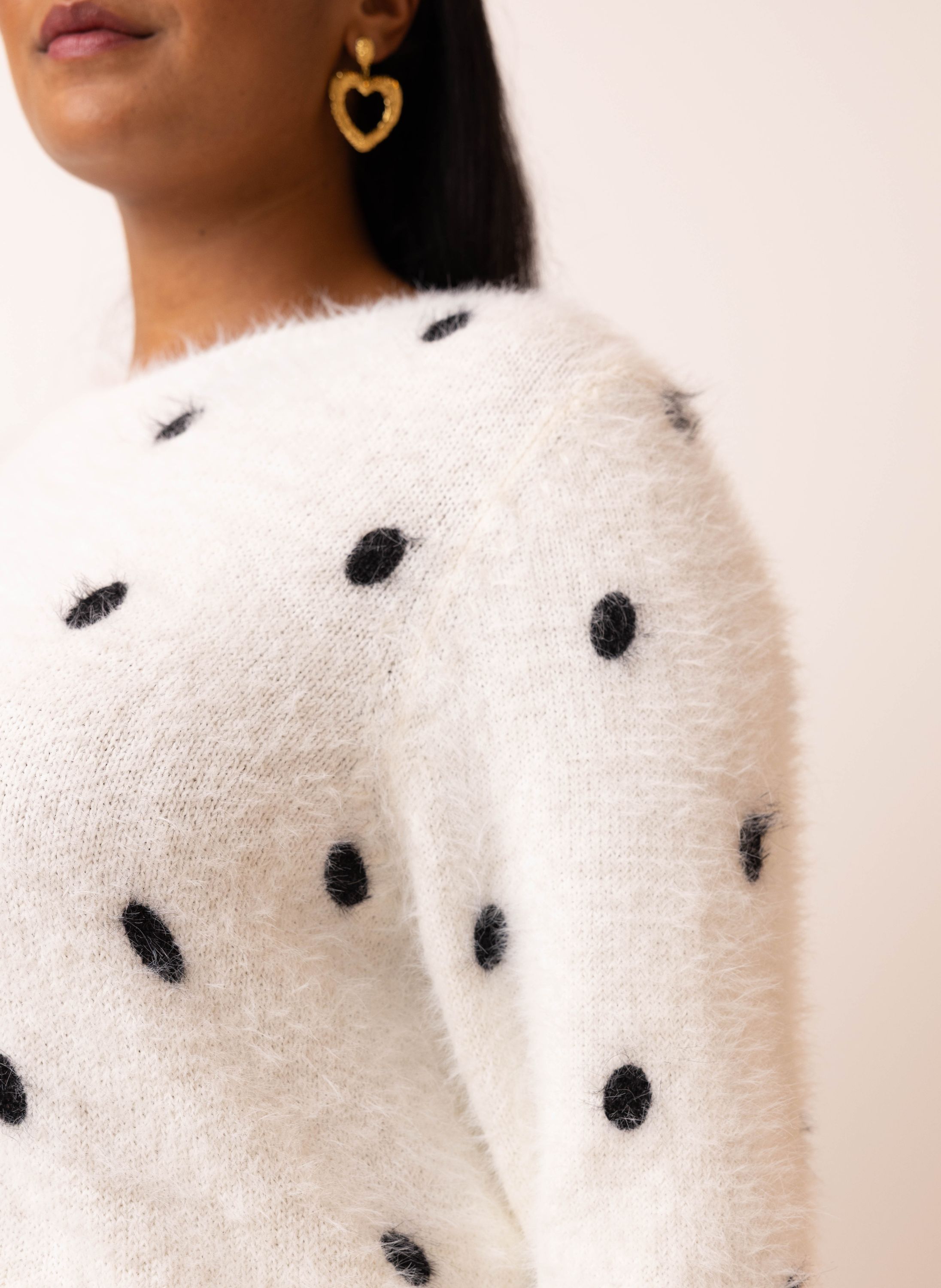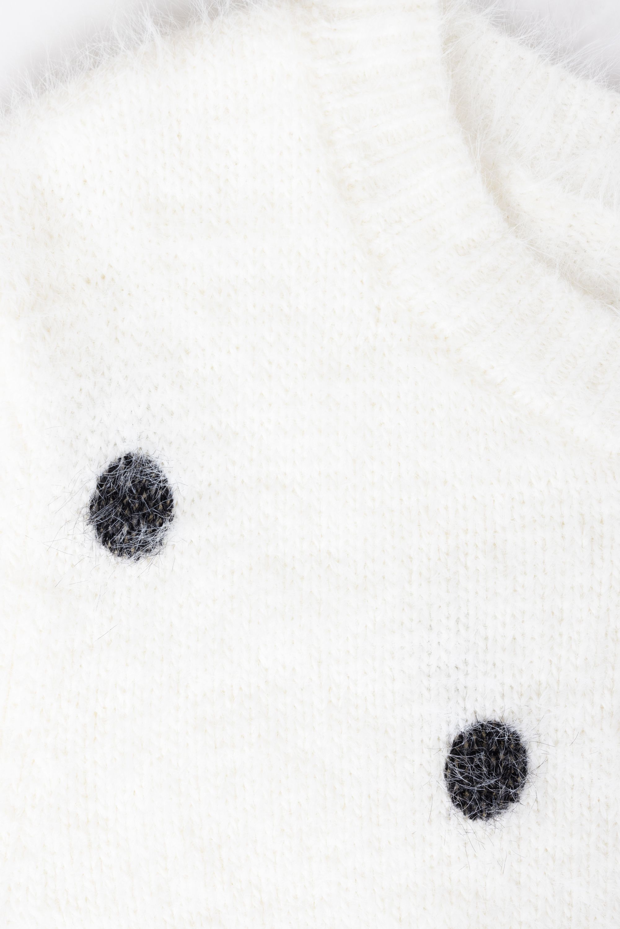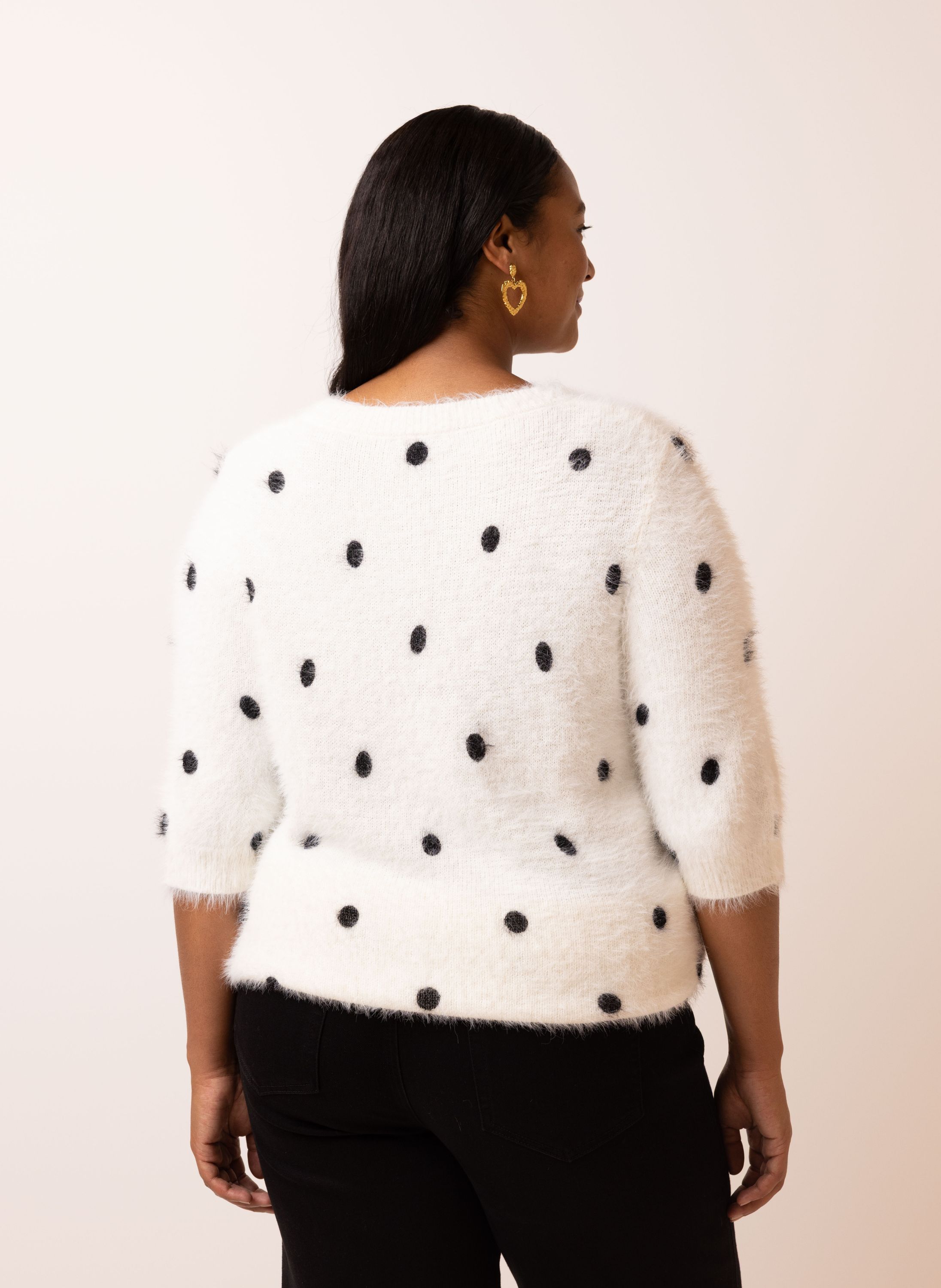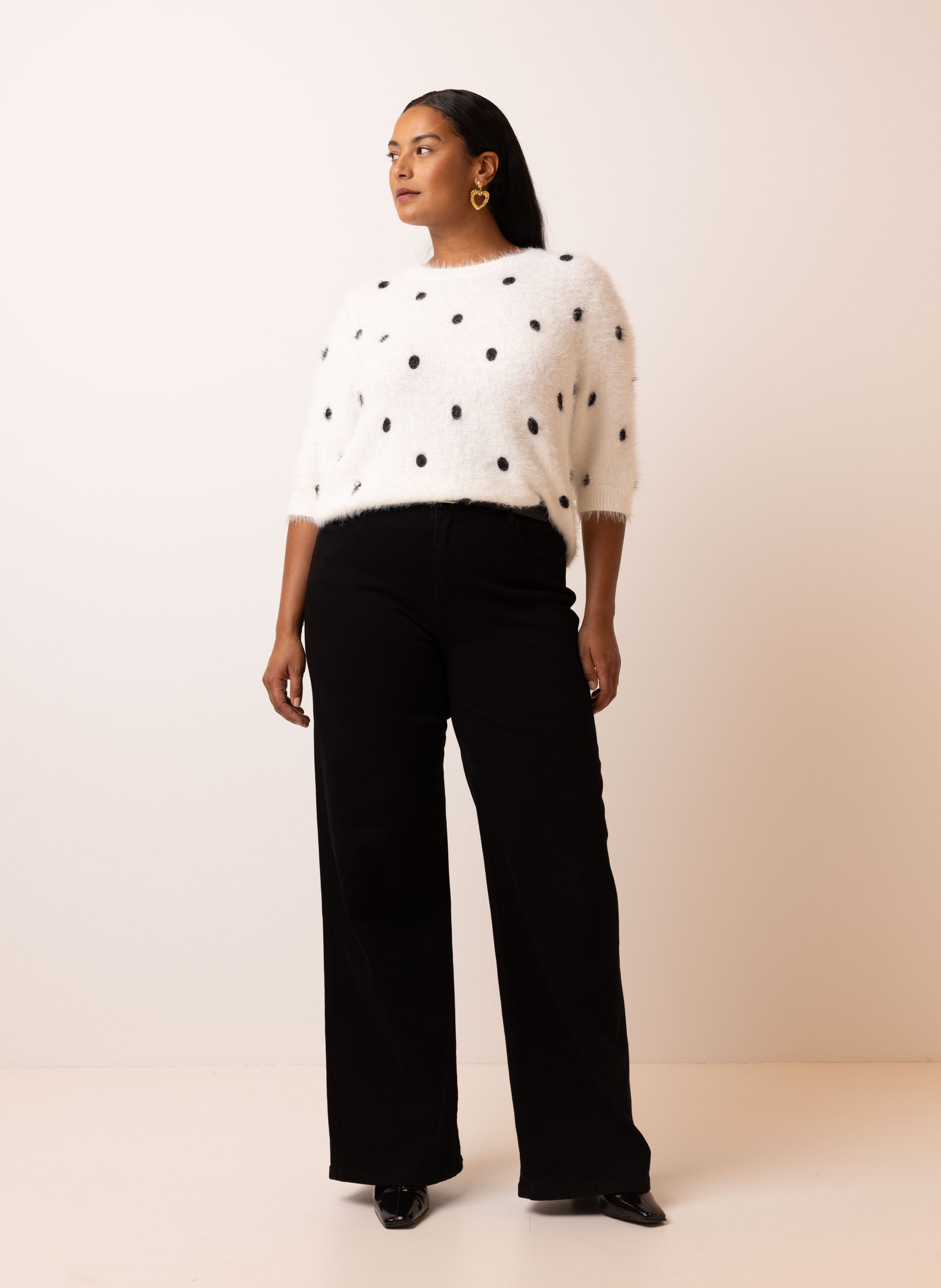 Deze gebreide trui met ronde hals en korte mouwen heeft veel stretch en is gemaakt van een zachte stof.