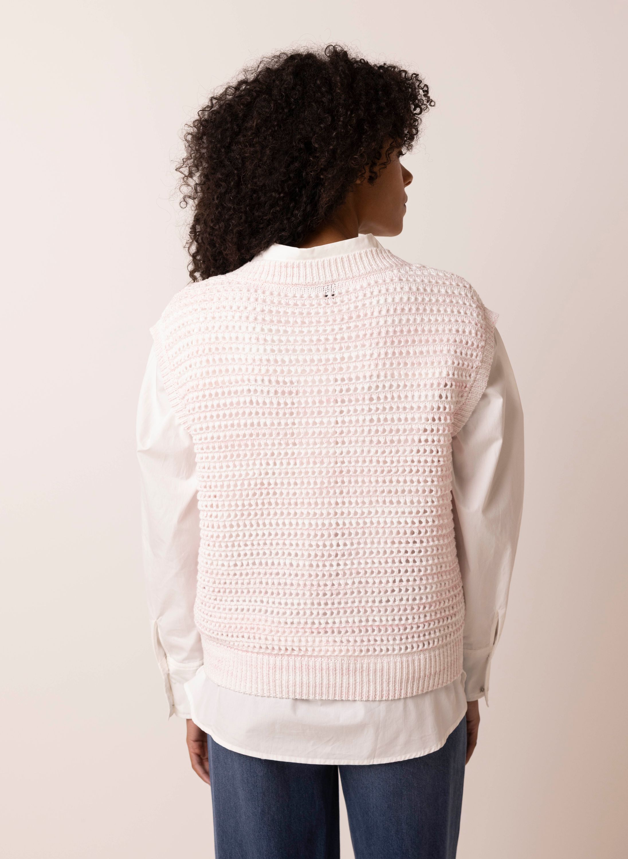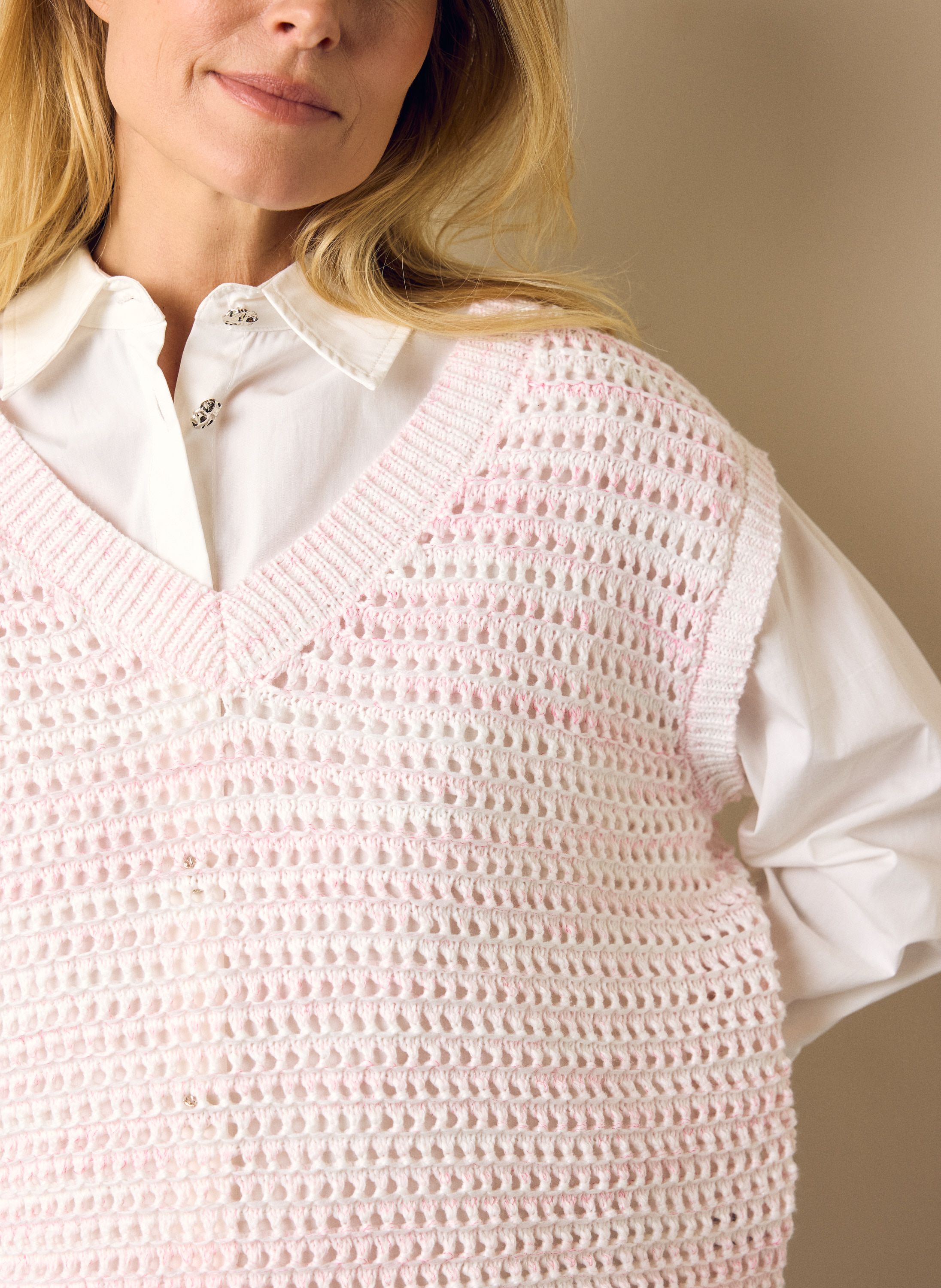 Opengebreide roze spencer