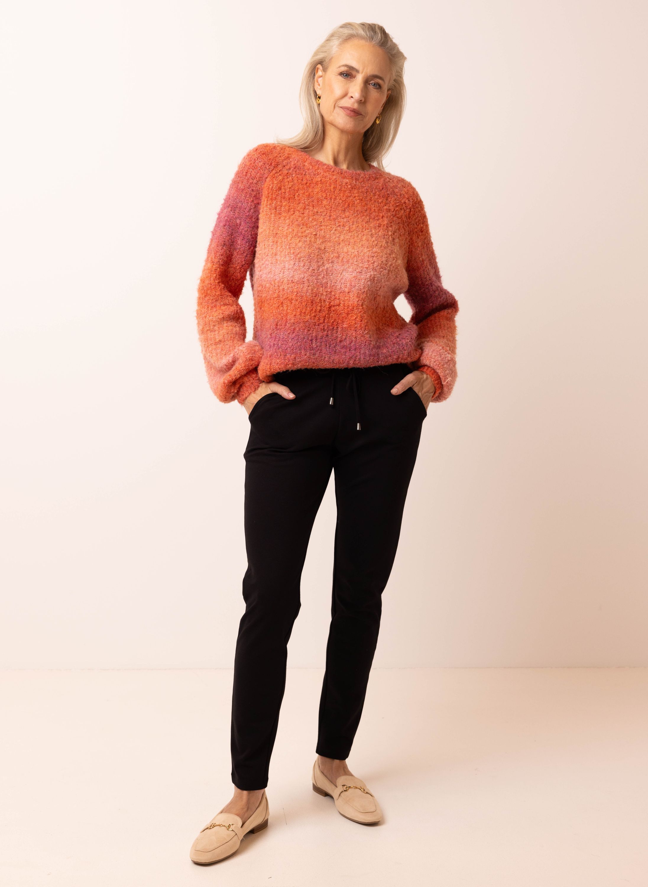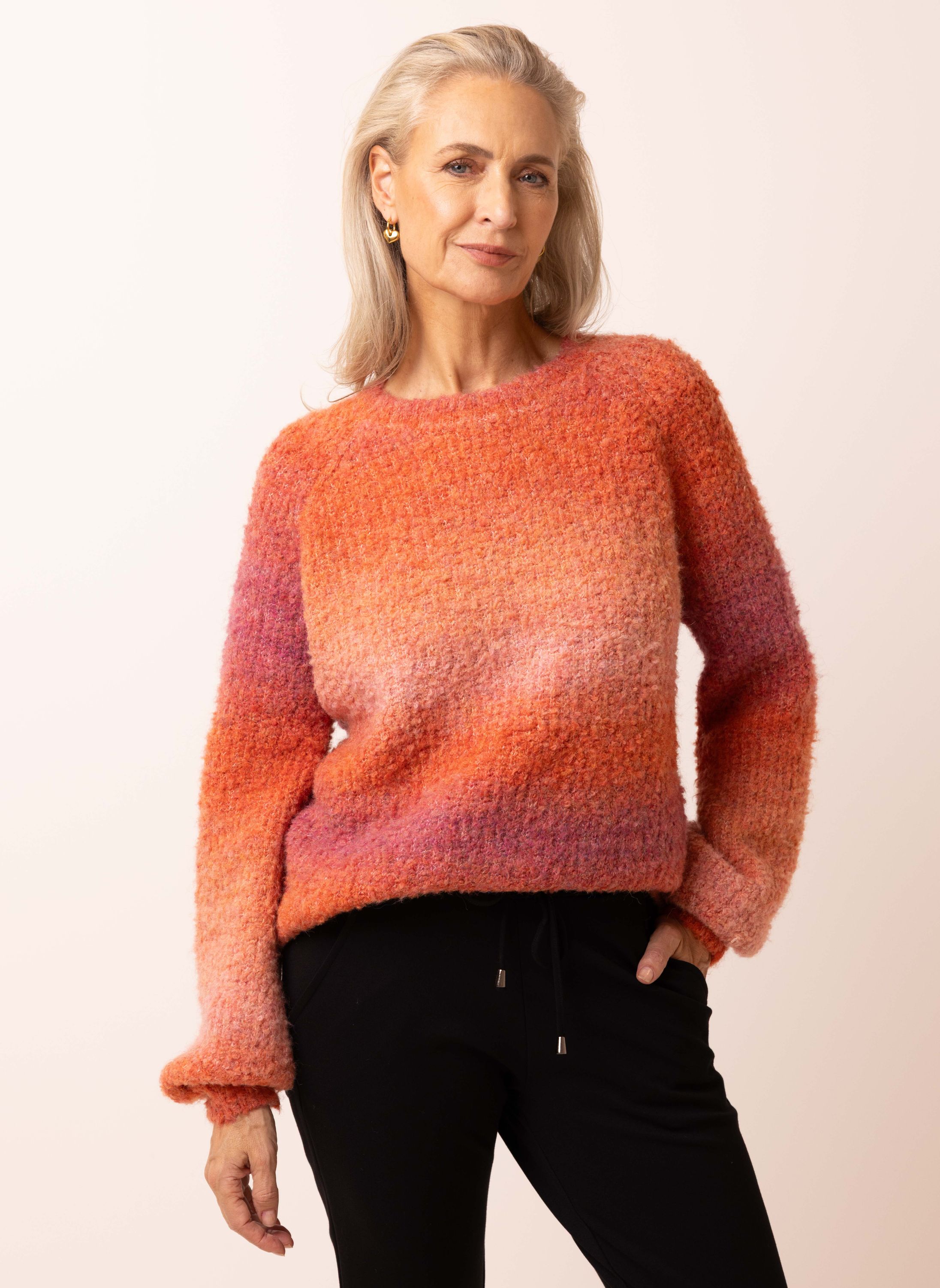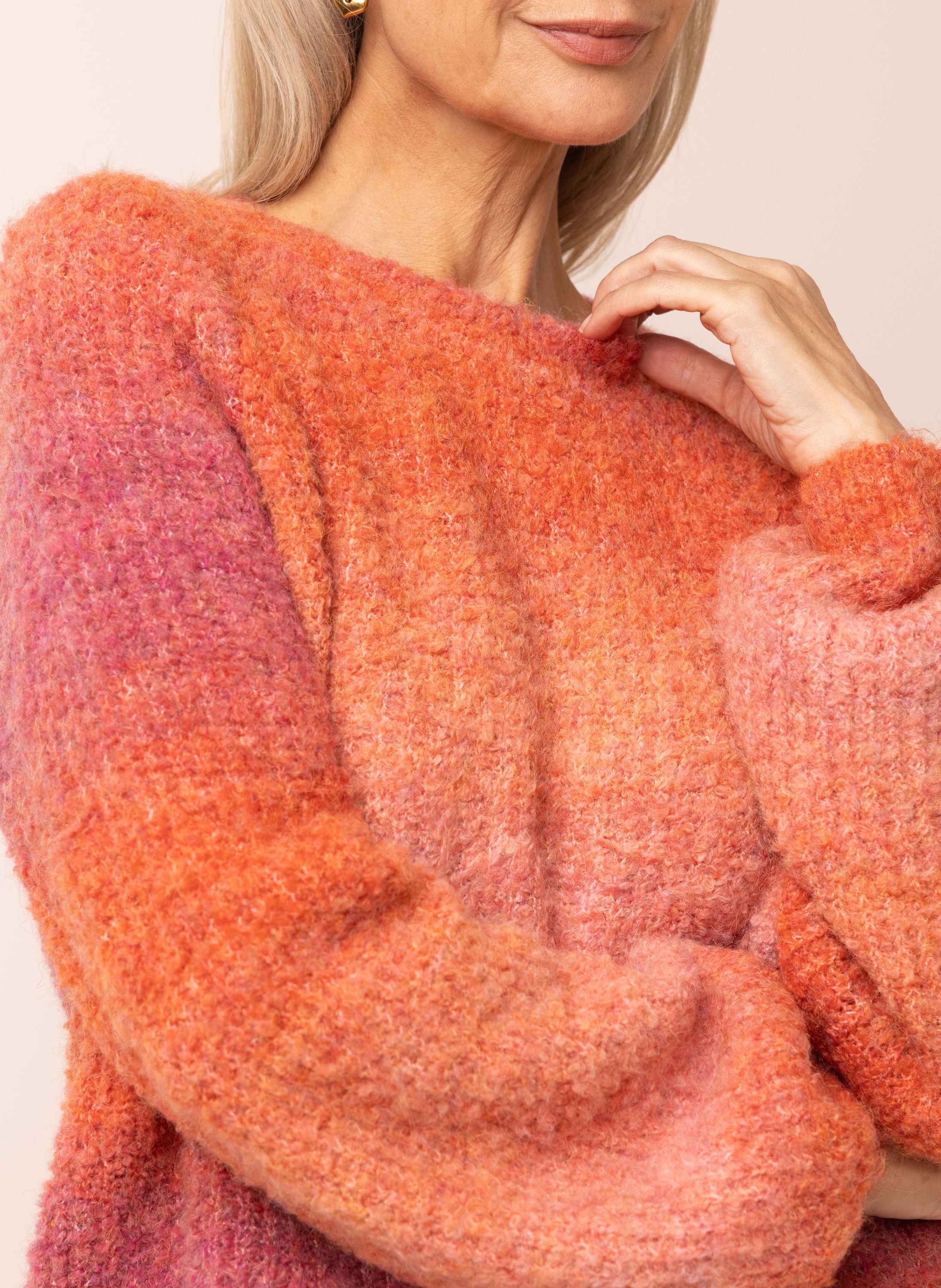Oranje gebreide trui met overlopende kleuren