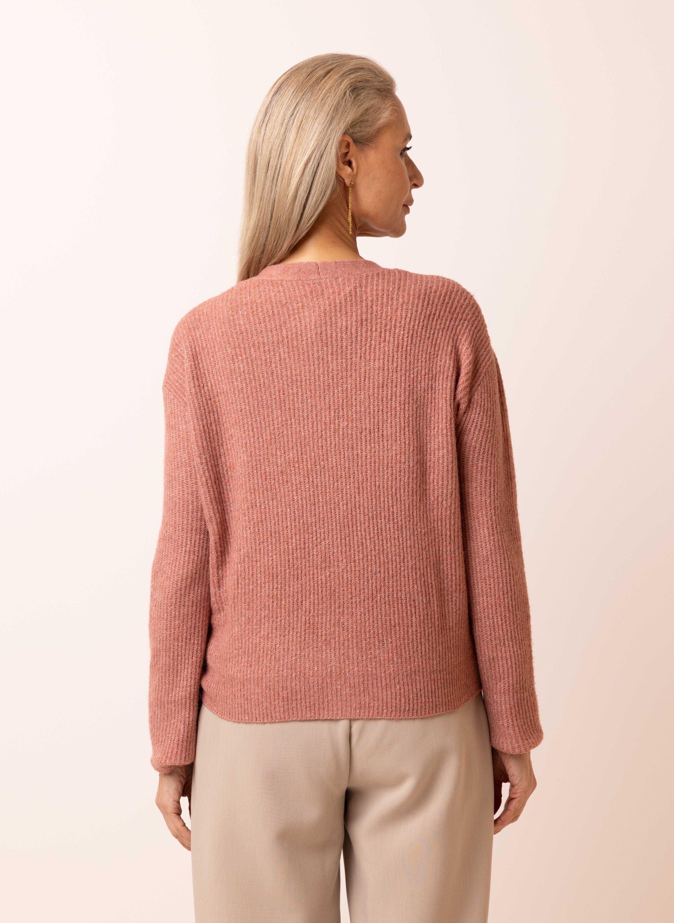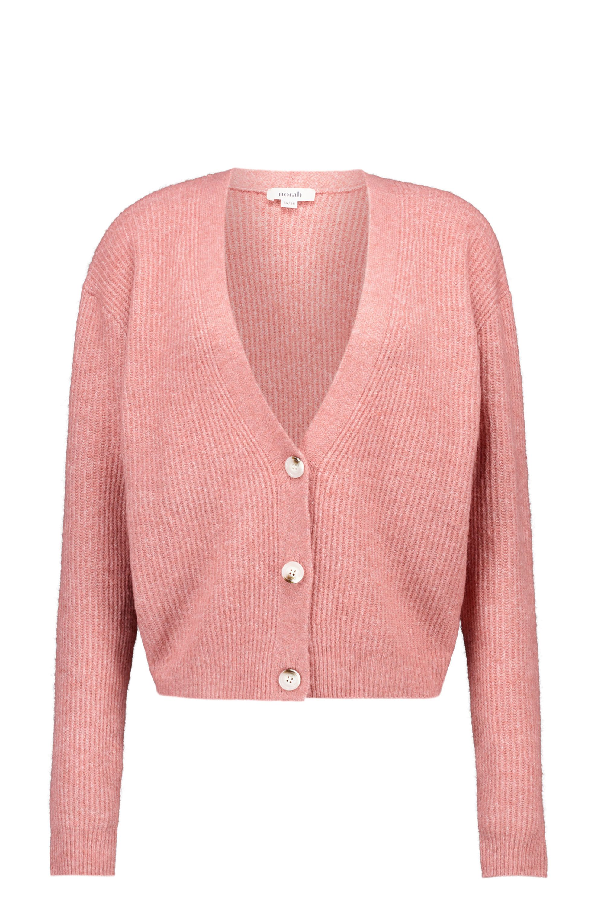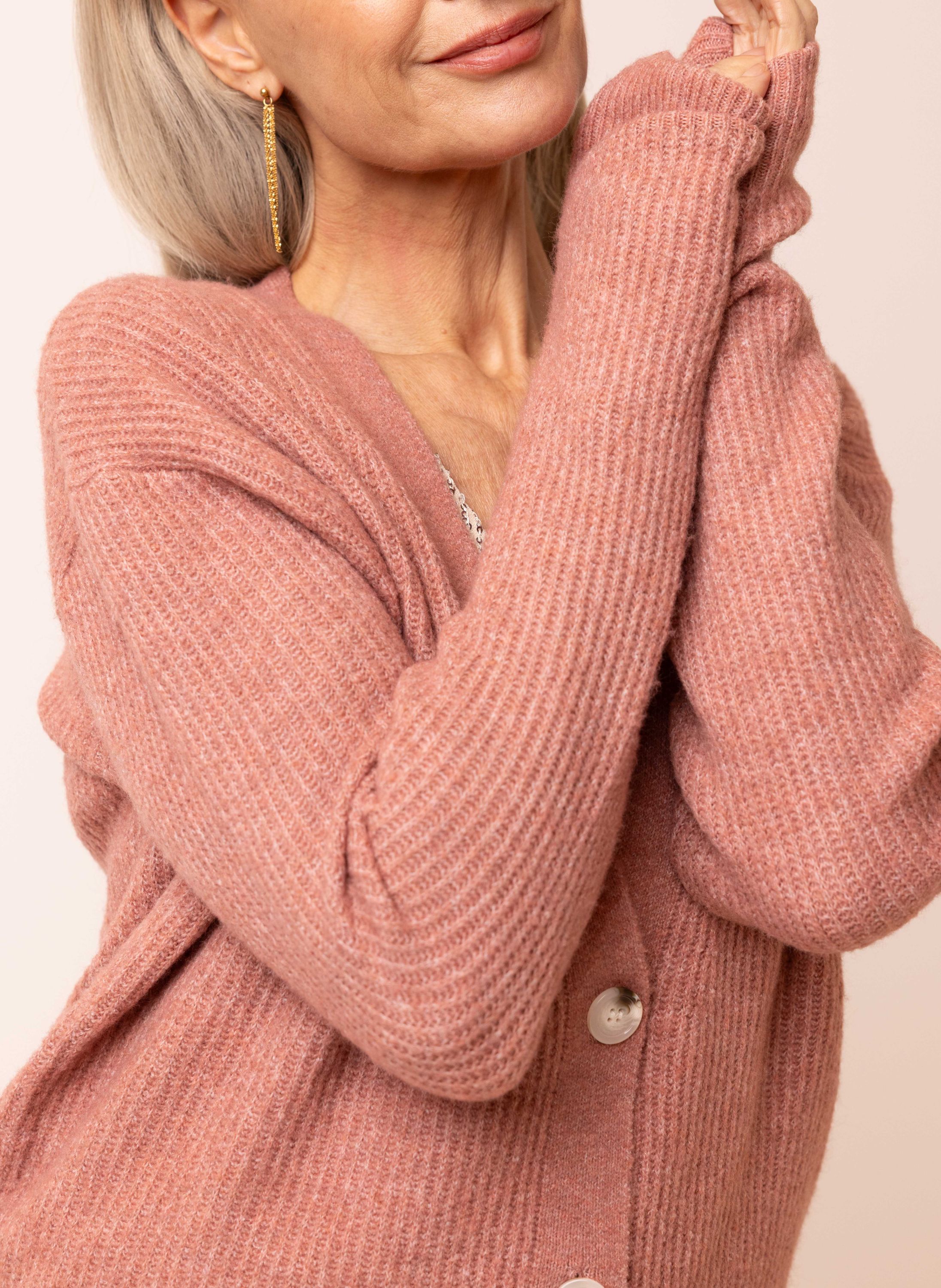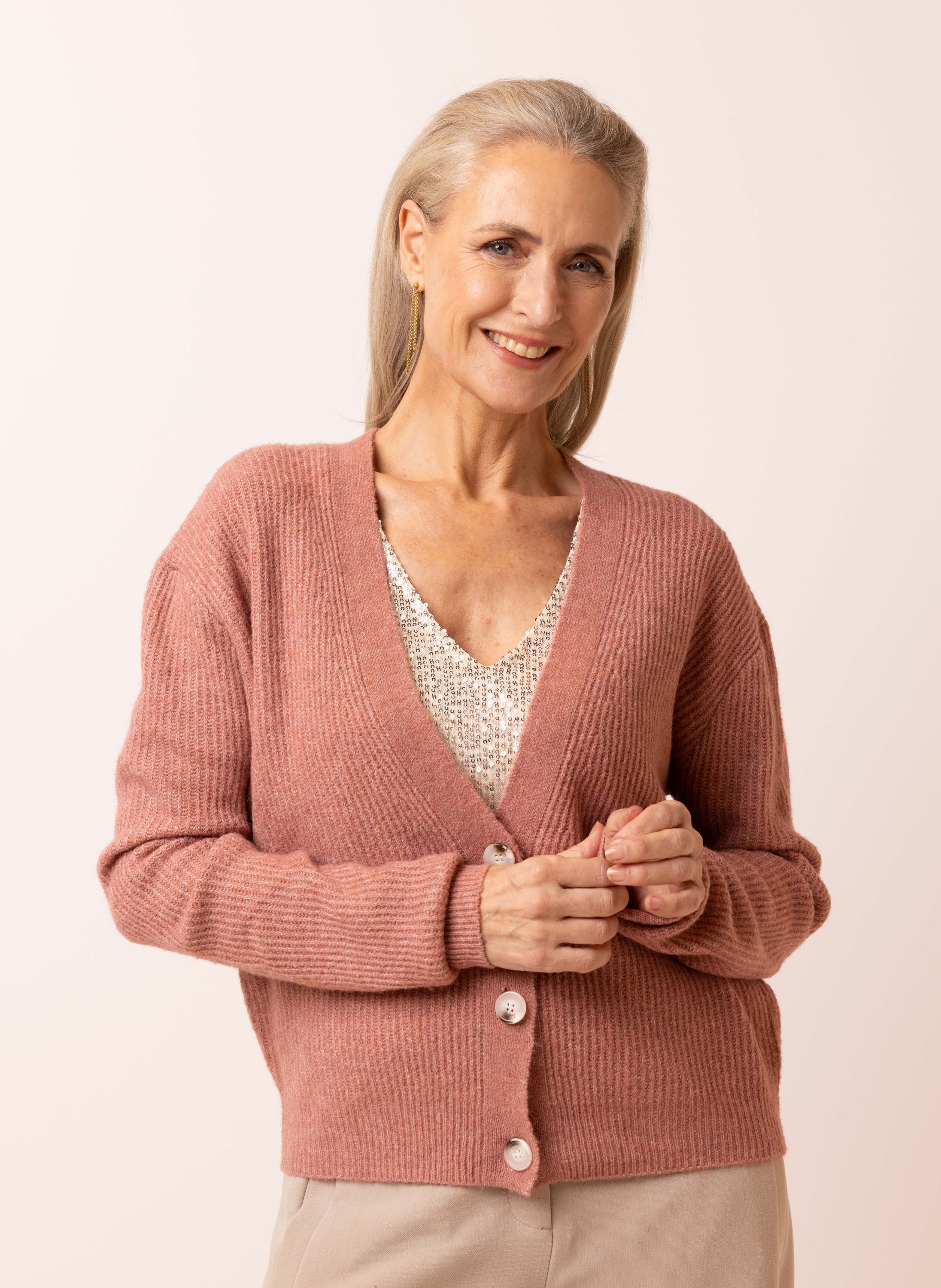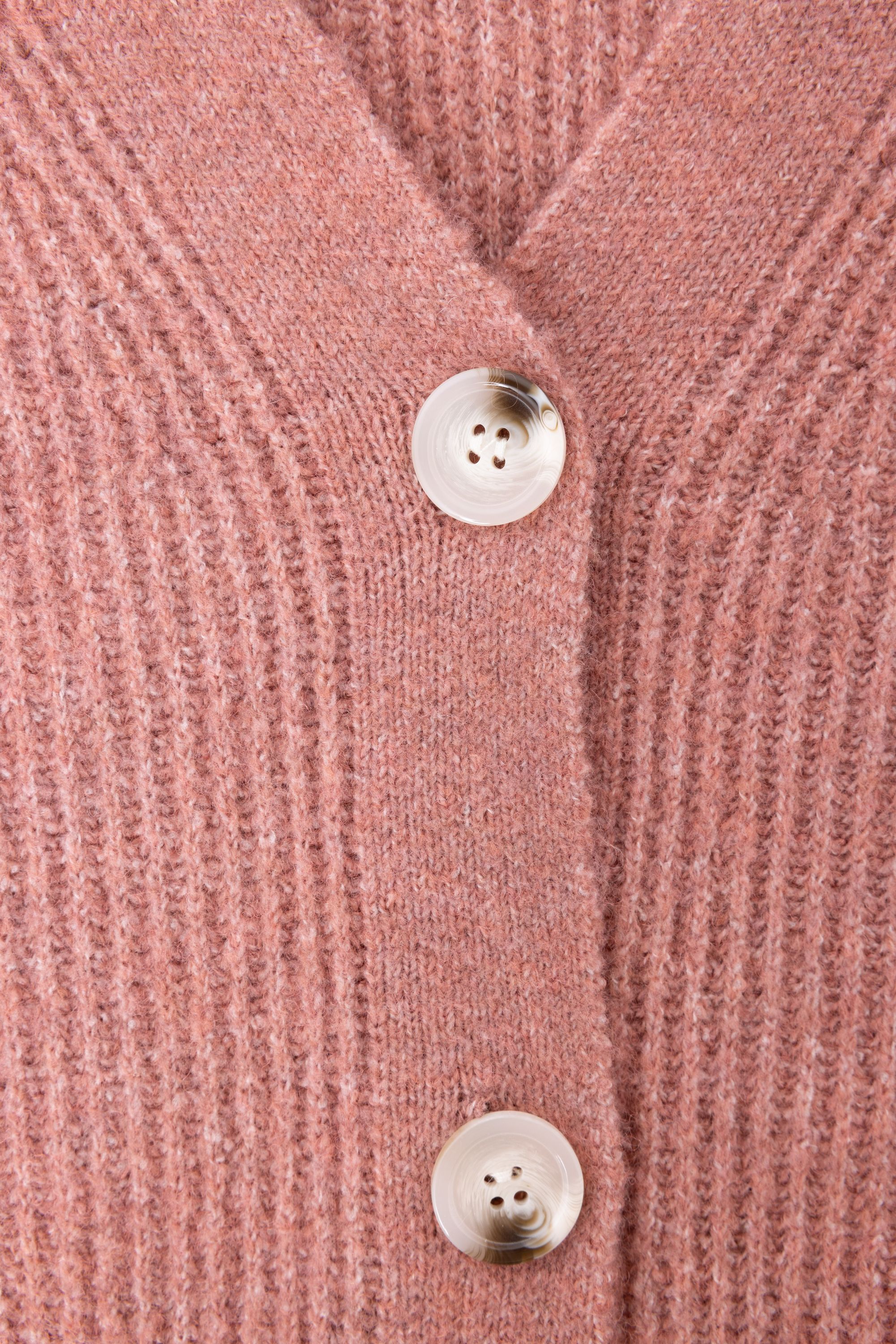 Dit gebreide vest met V-hals, knoopsluiting en lange mouwen is een veelzijdig item.