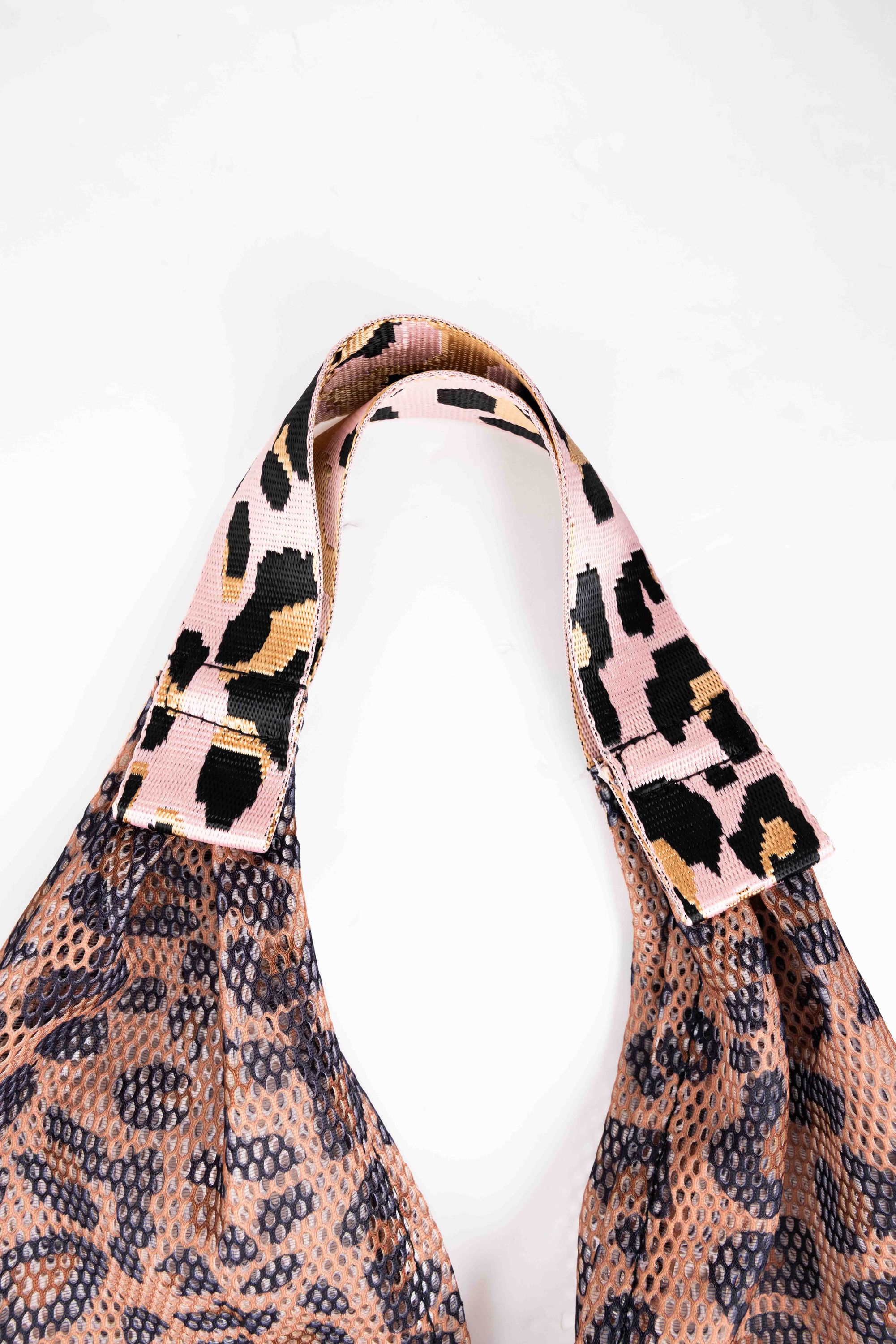 Deze shopper is uitgevoerd in een opvallende panterprint en heeft een ruim formaat is van een gaasachtige stof. Afmeting: Breedte: 50 cm, Hoogte: 56 cm, Diepte: 6 cm.