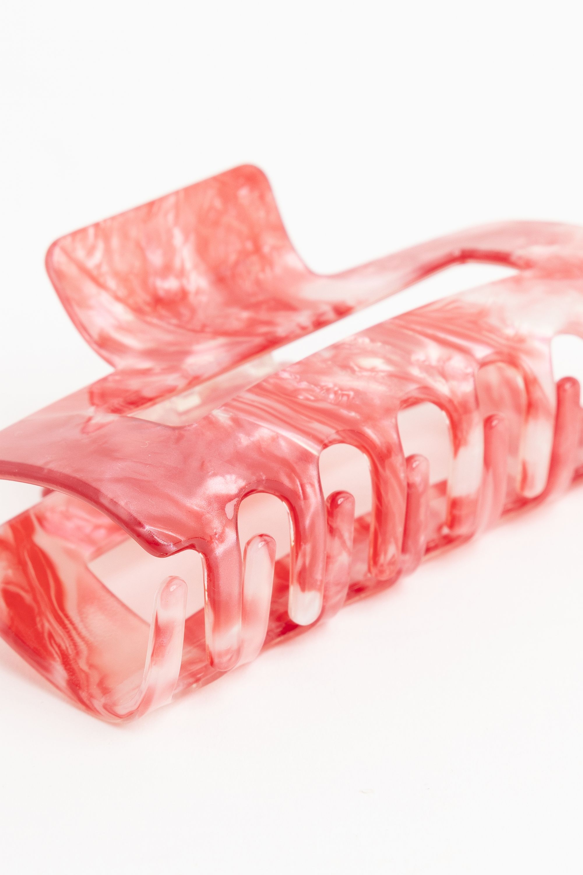 Deze rode haarclip met gemêleerd patroon heeft een stevige klem en een opvallend design. De speelse kleurmix geeft je kapsel een stijlvolle en vrouwelijke uitstraling. Afmeting: 10 cm.
