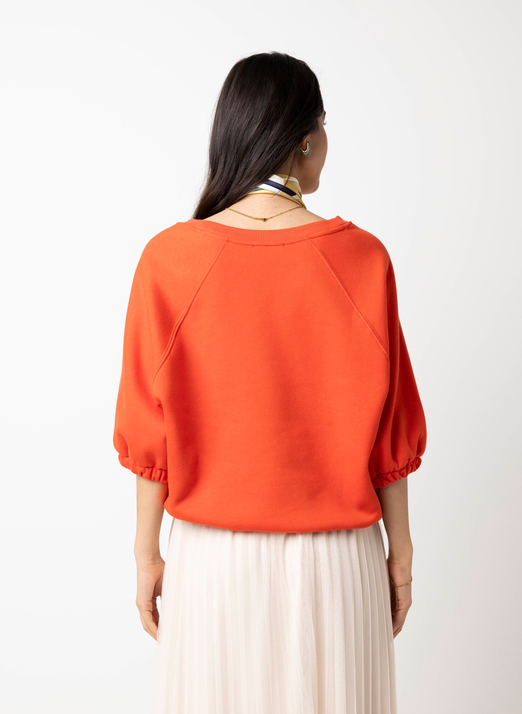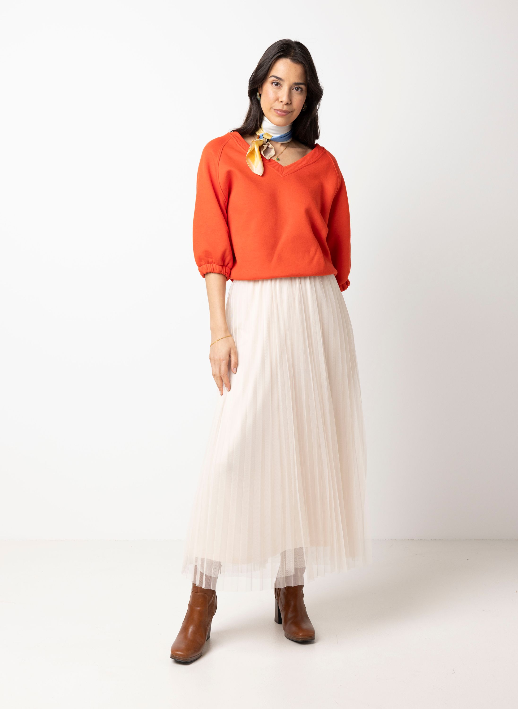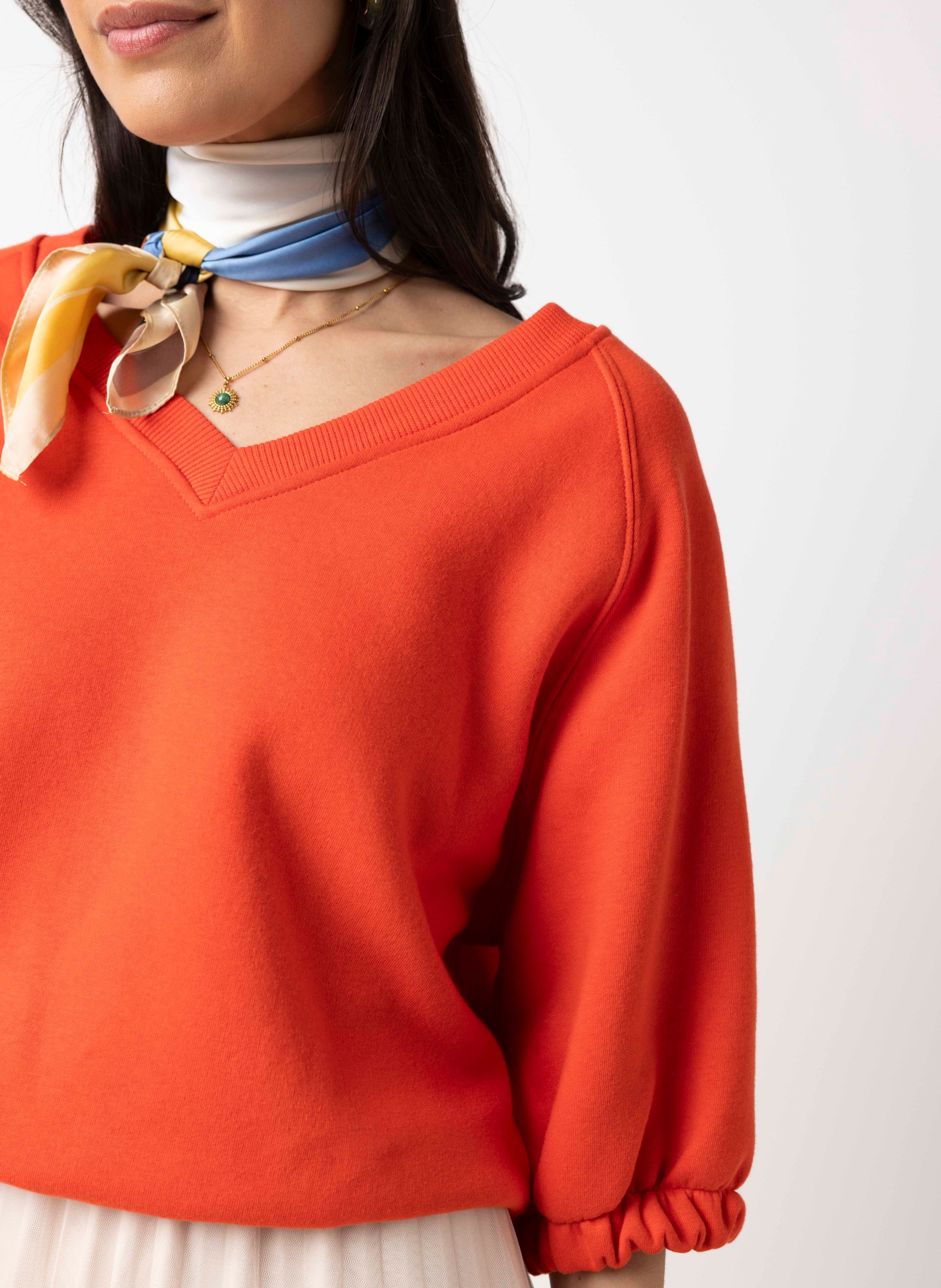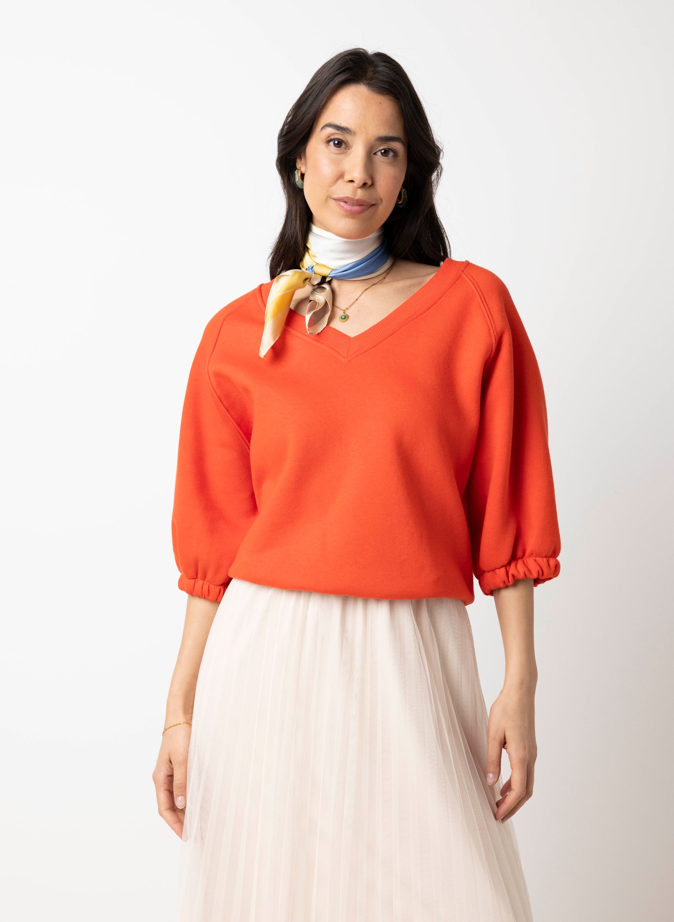 Deze sweater met V-hals en halflange mouwen heeft een comfortabele pasvorm.
