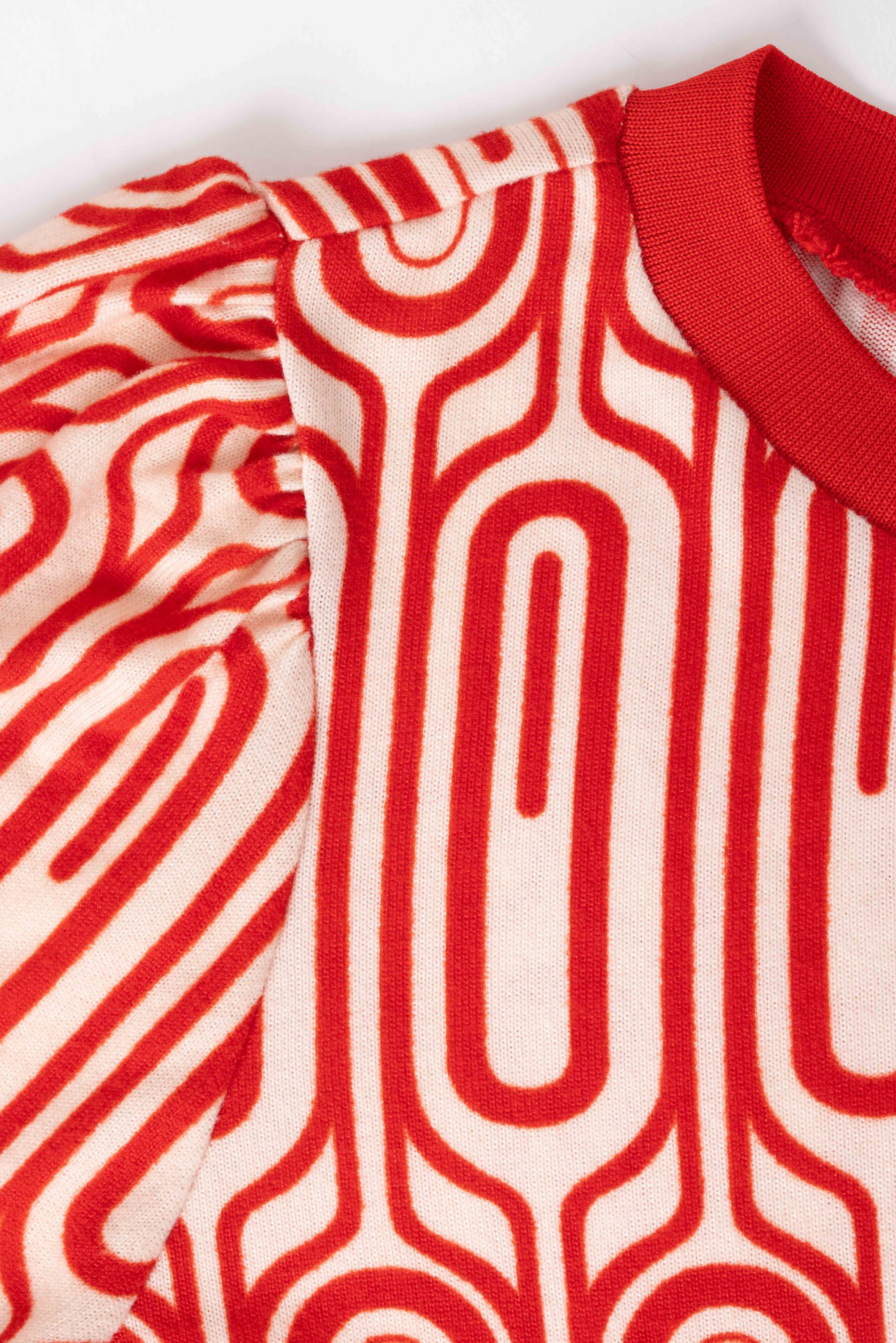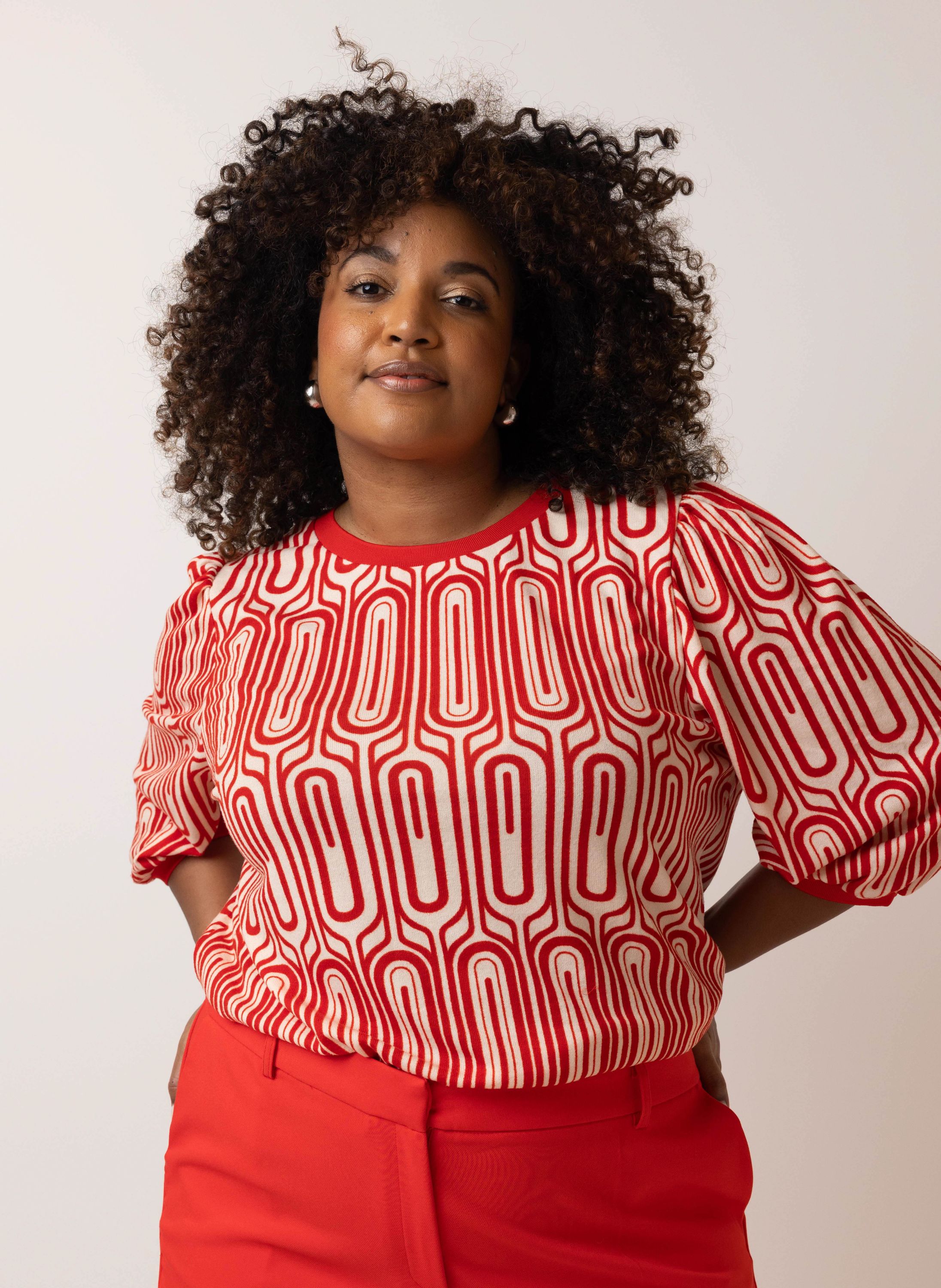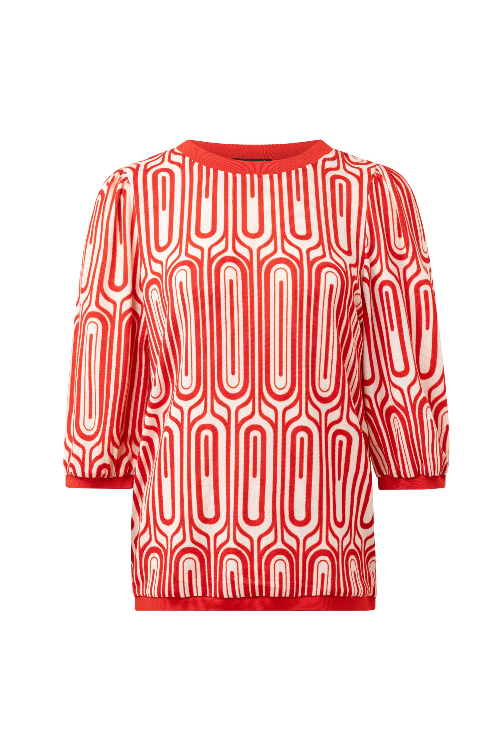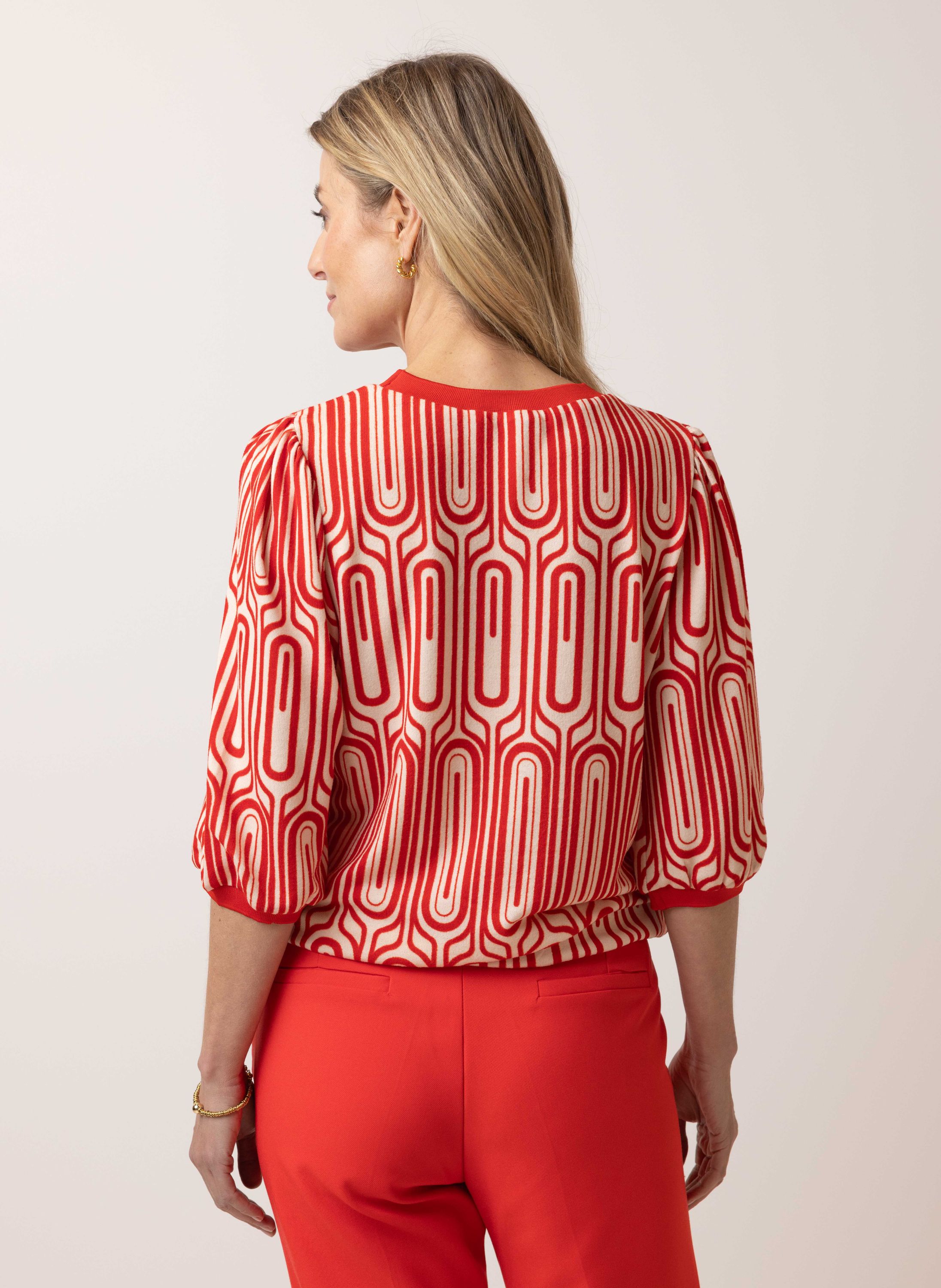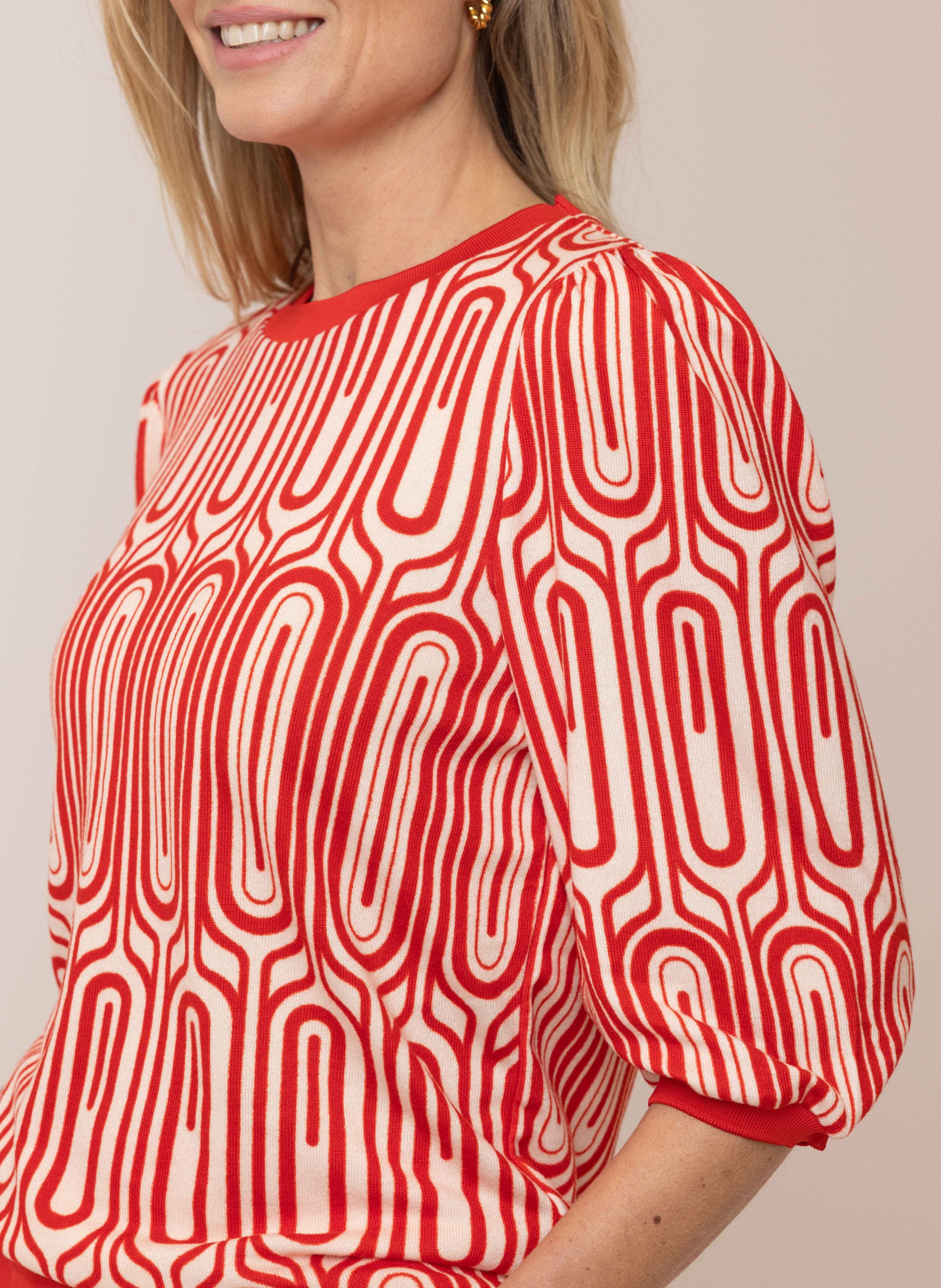 Fijngebreid shirt met ronde halslijn en halflange pofmouw.
