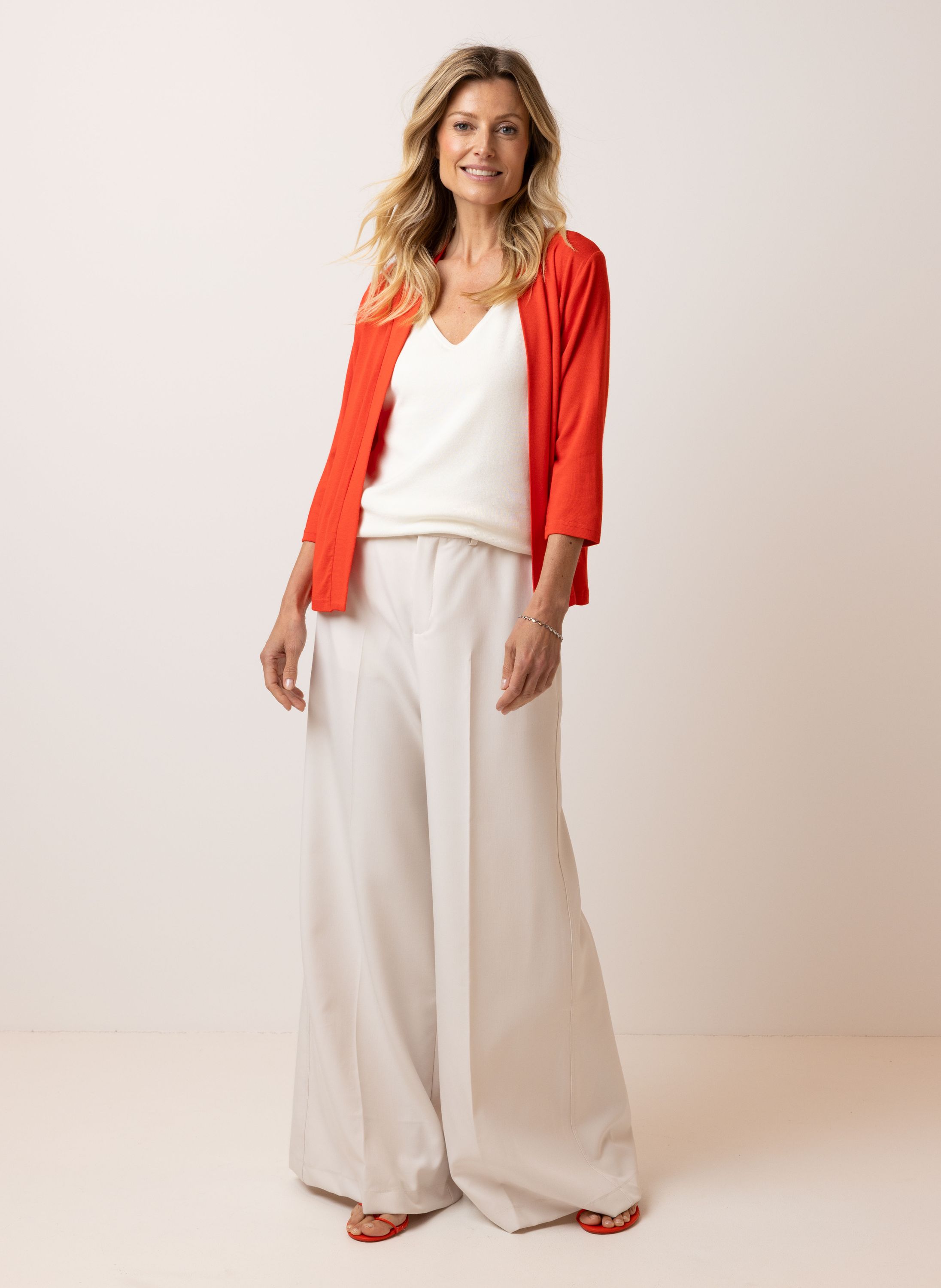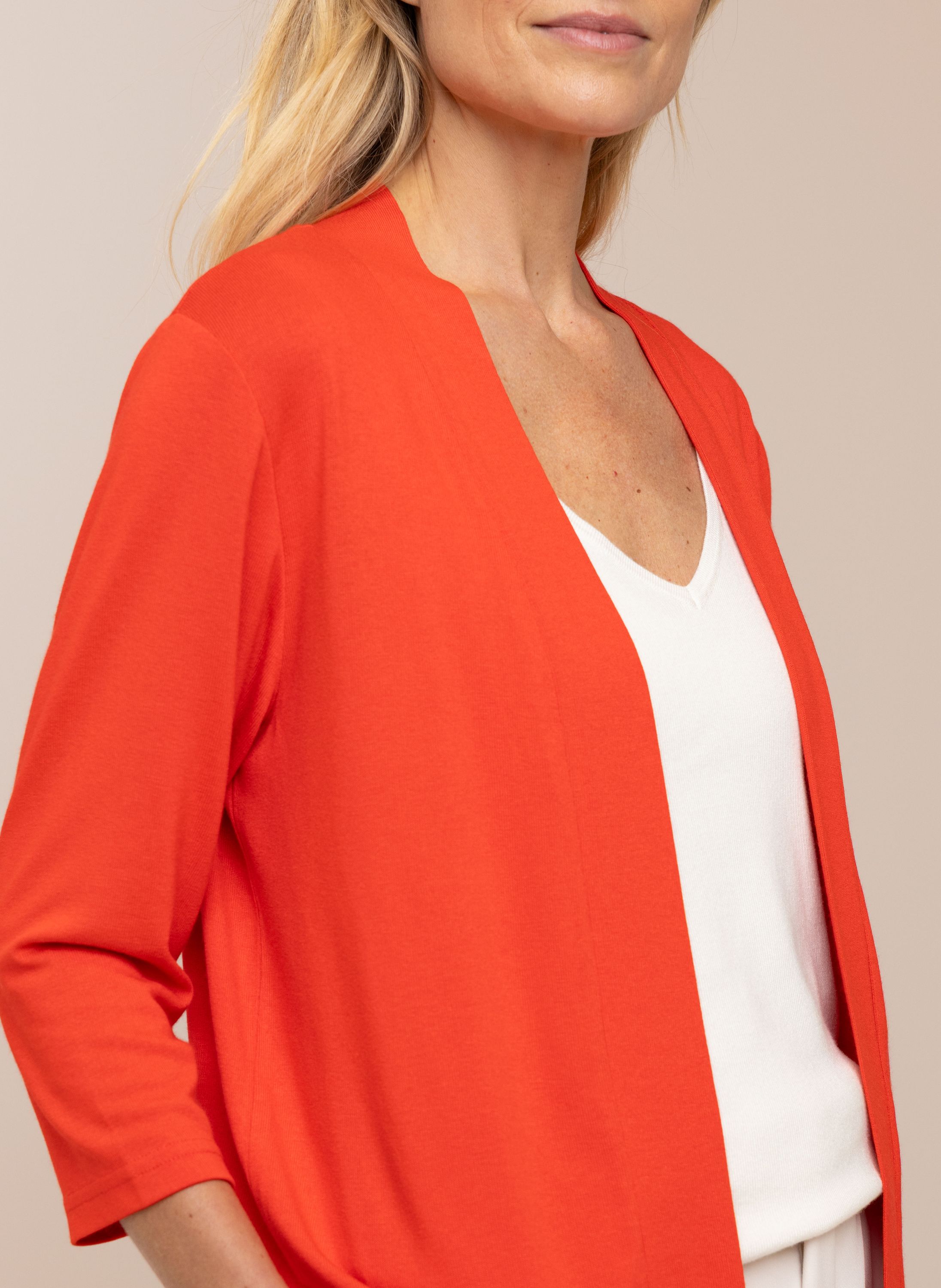 Dit open vest met driekwart mouwen is gemaakt van stretchy materiaal voor optimaal comfort.