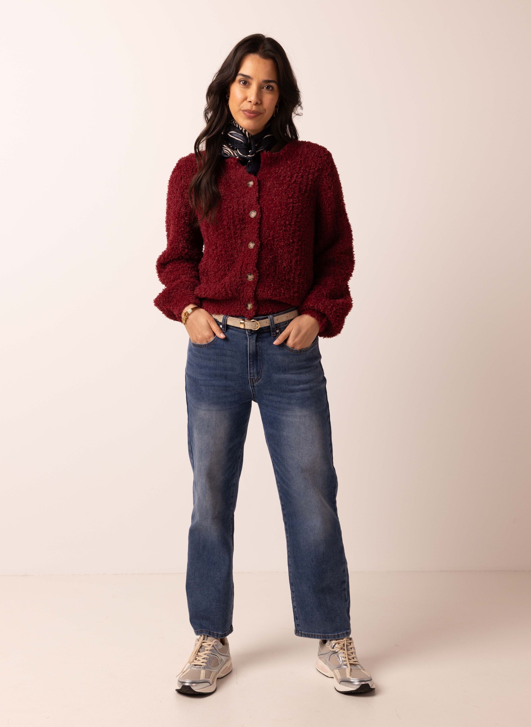 Dit zachte vest met V-hals en knoopsluiting is gemaakt van een stretchy stof en heeft lange ballonmouwen voor een vrouwelijke touch. Dit item is exclusief verkrijgbaar in geselecteerde winkels en online. Controleer de winkelvoorraad om de beschikbaarheid in een winkel bij jou in de buurt te bekijken.