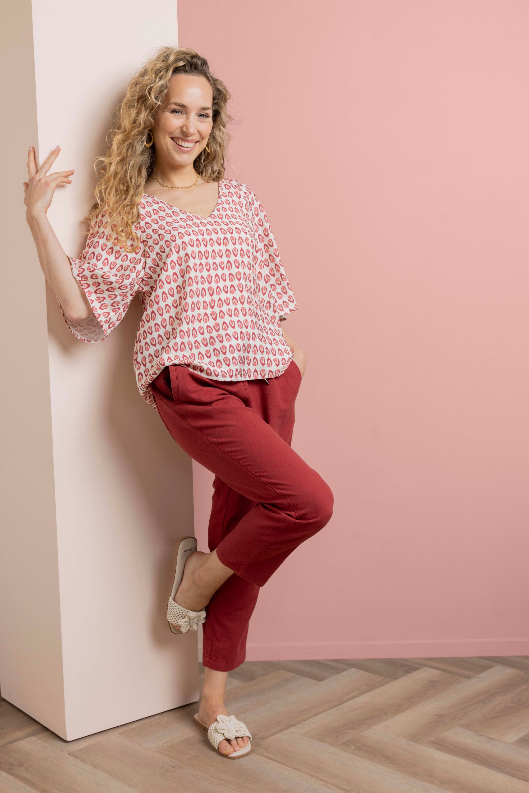 Roze blouse met grafische print