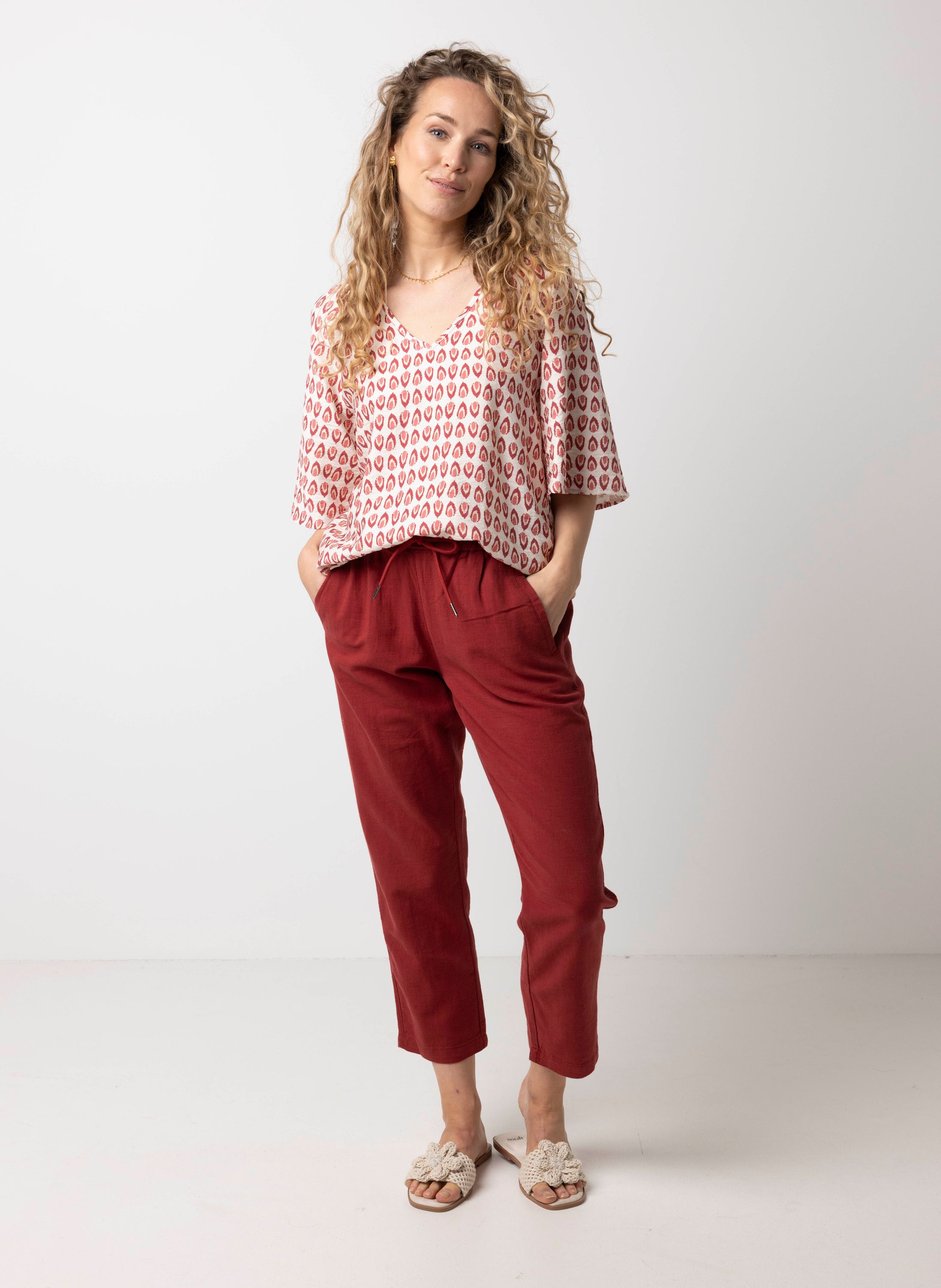 Deze blouse met V-hals en halflange mouwen heeft een elegante uitstraling.