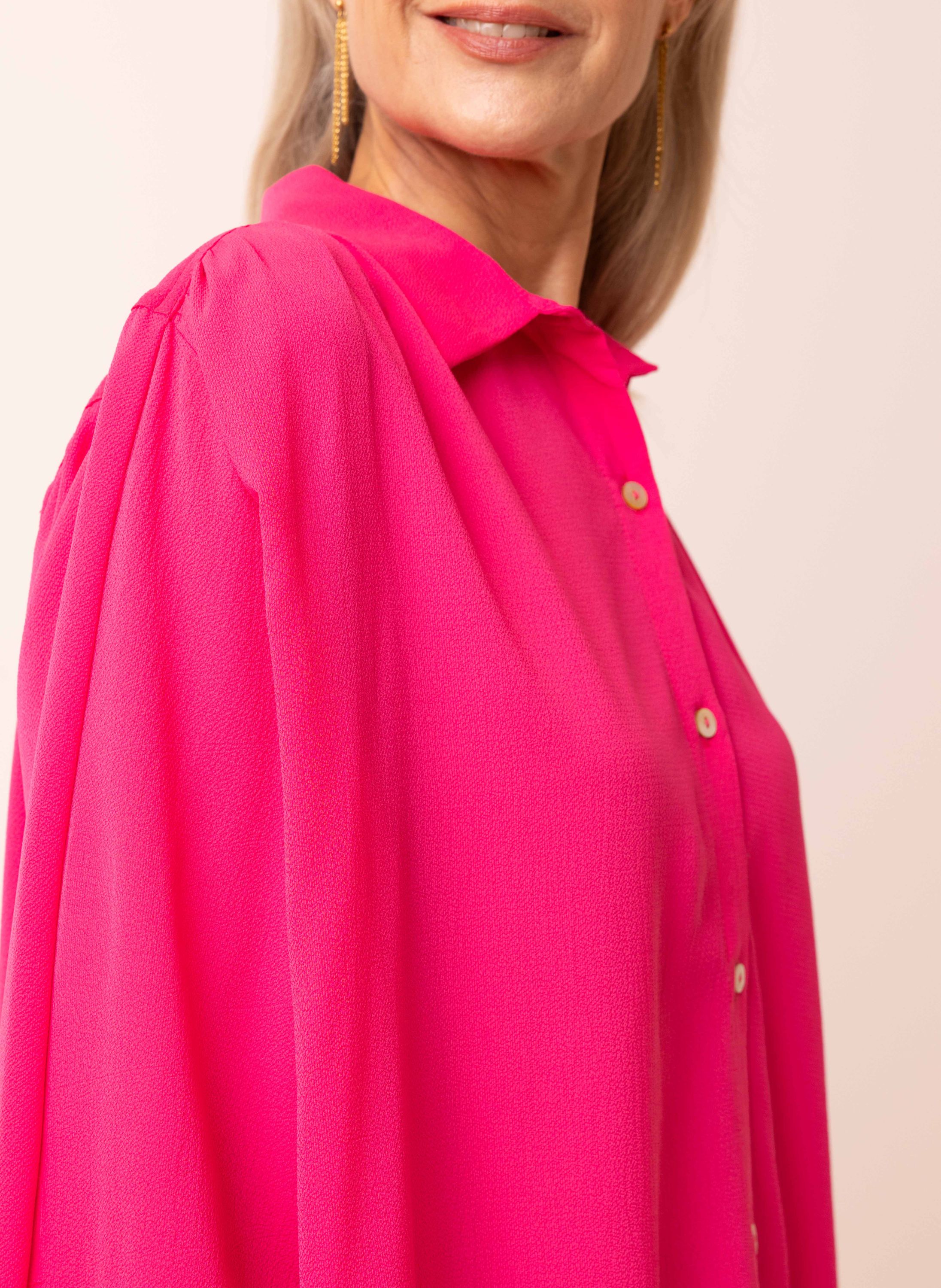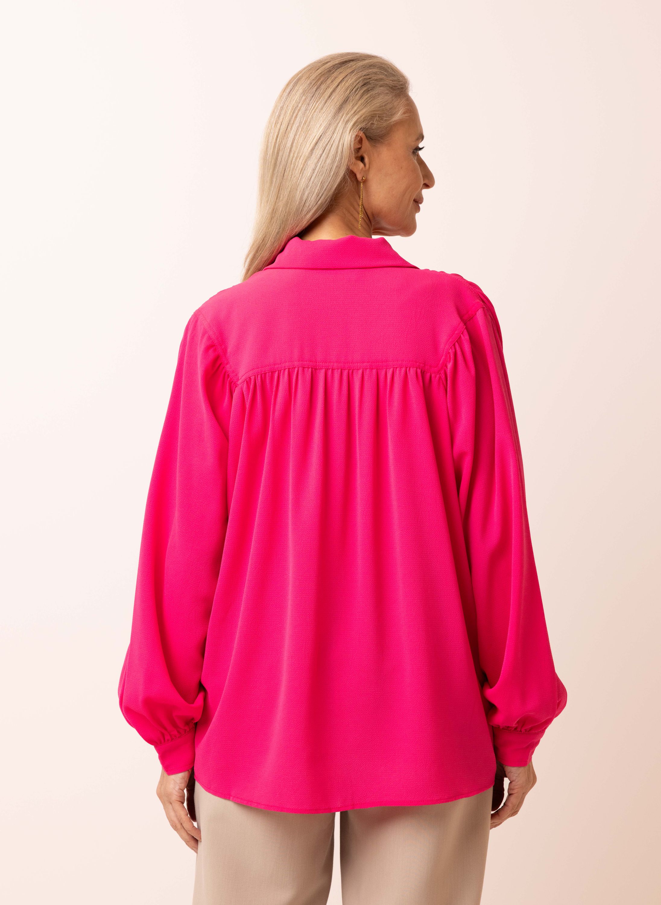 Deze blouse met klassieke kraag, knoopsluiting, plooirand aan de achterzijde en lange mouwen is een tijdloos item voor een vrouwelijke look.
