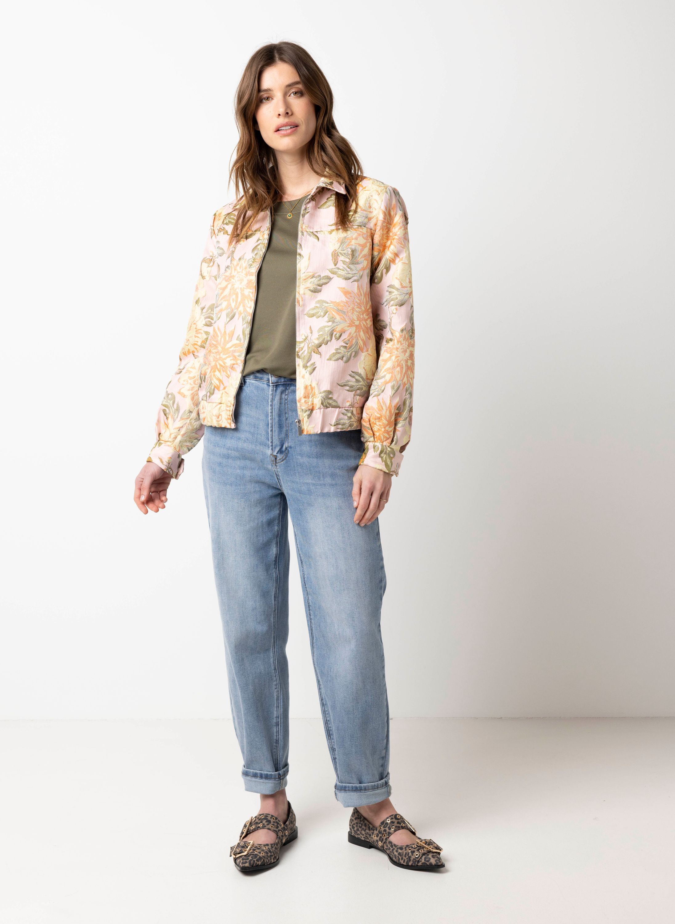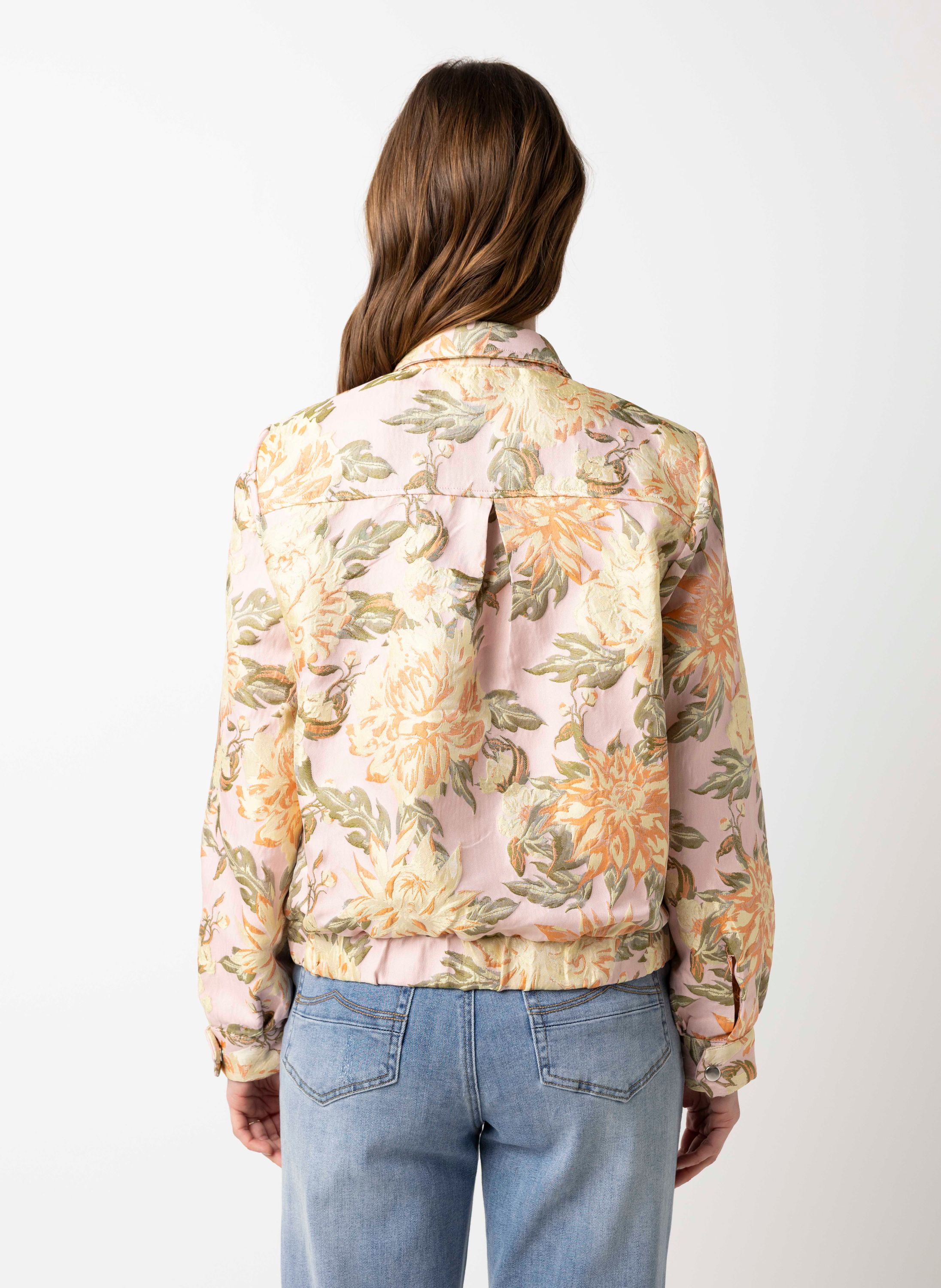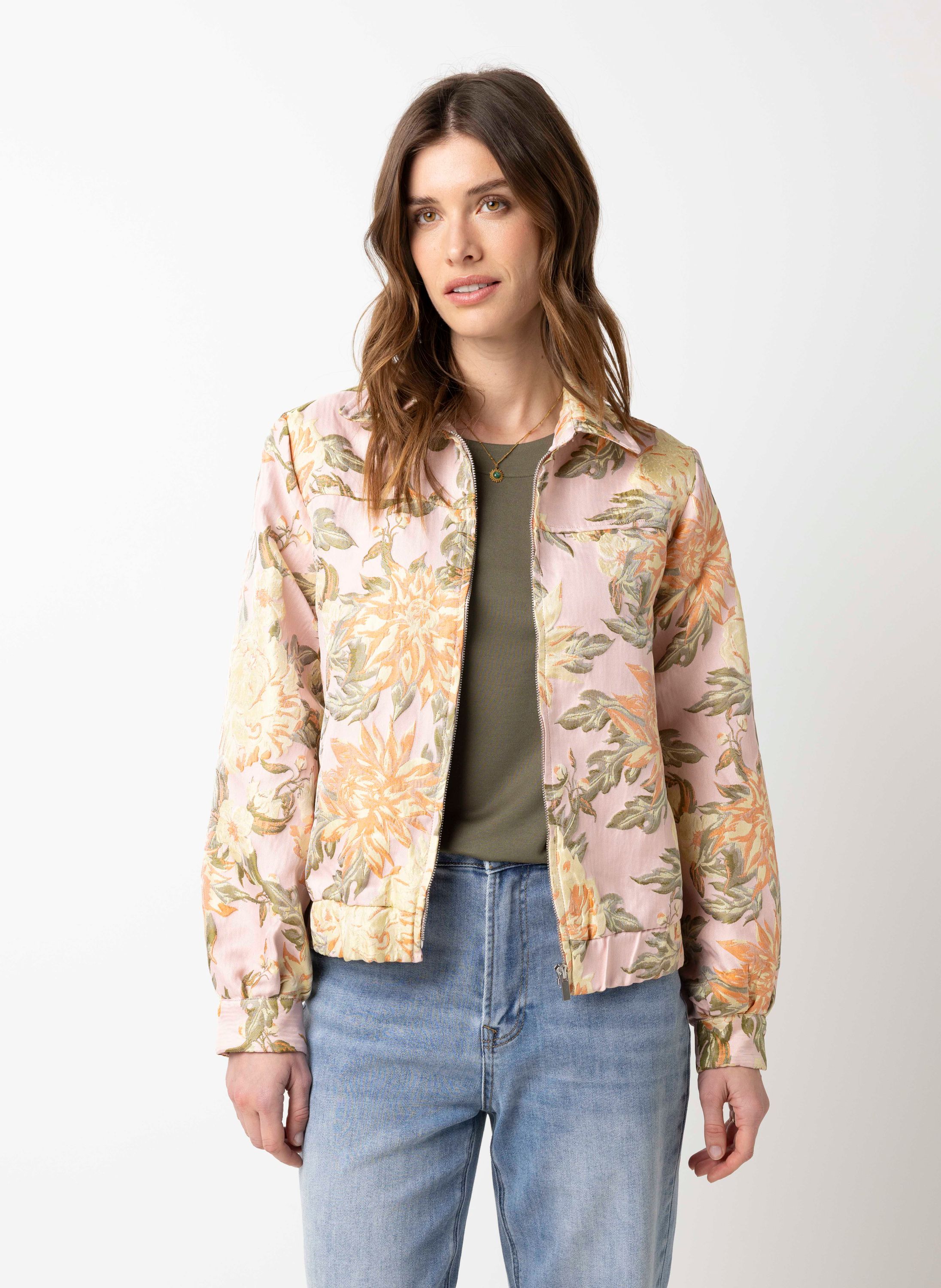 Roze bomberjas met bloemen