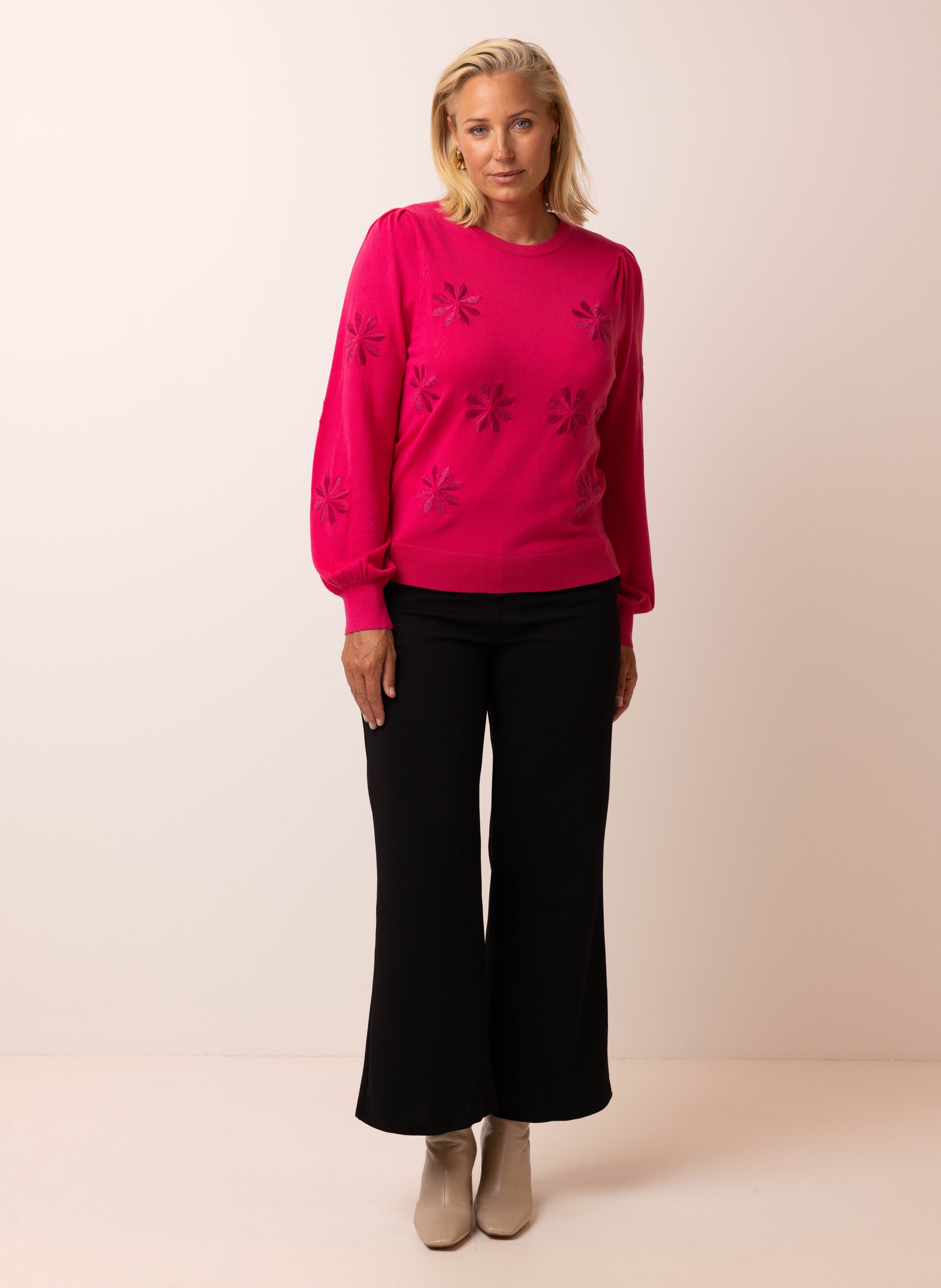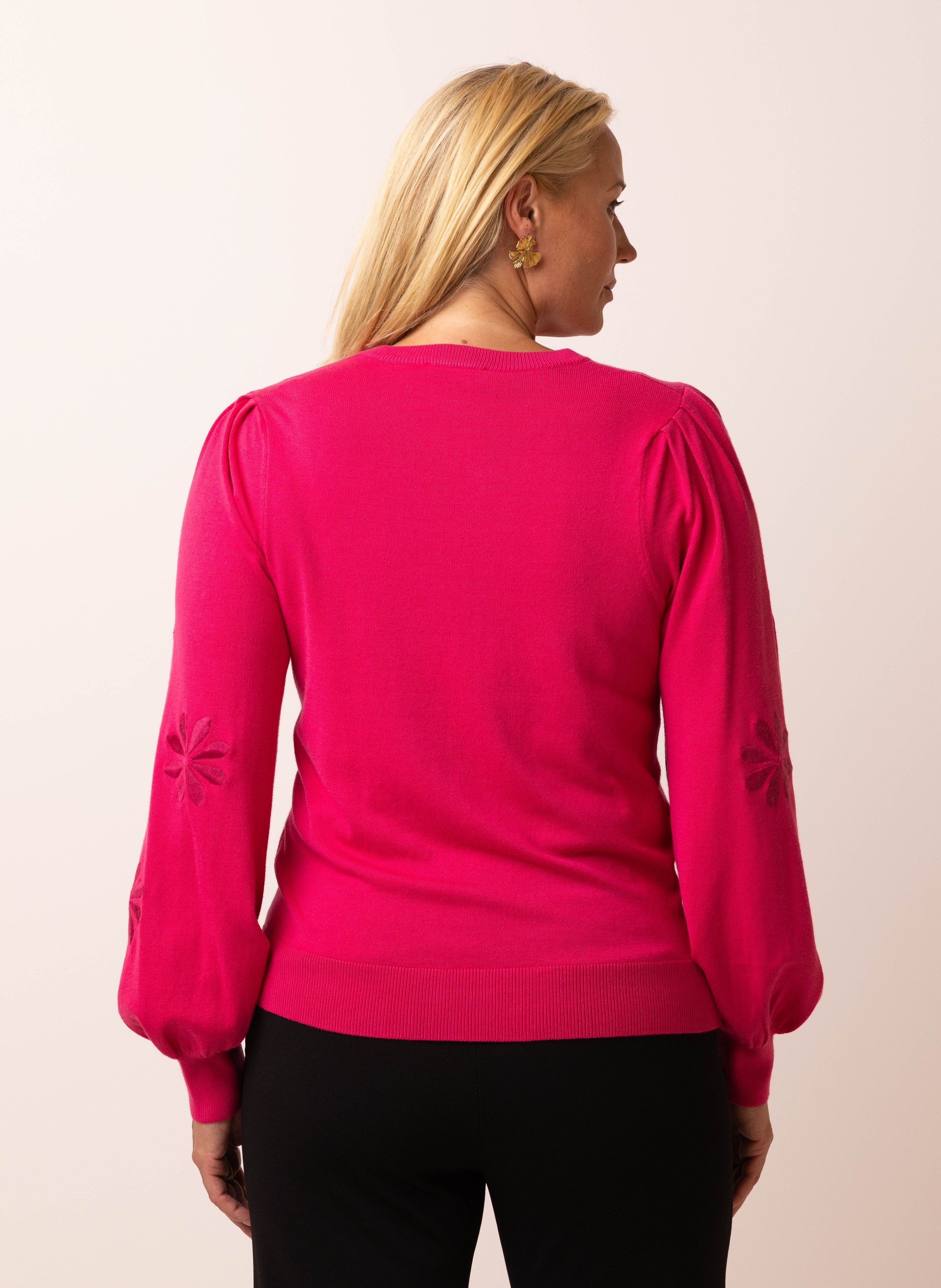 Roze gebreide trui met borduursels
